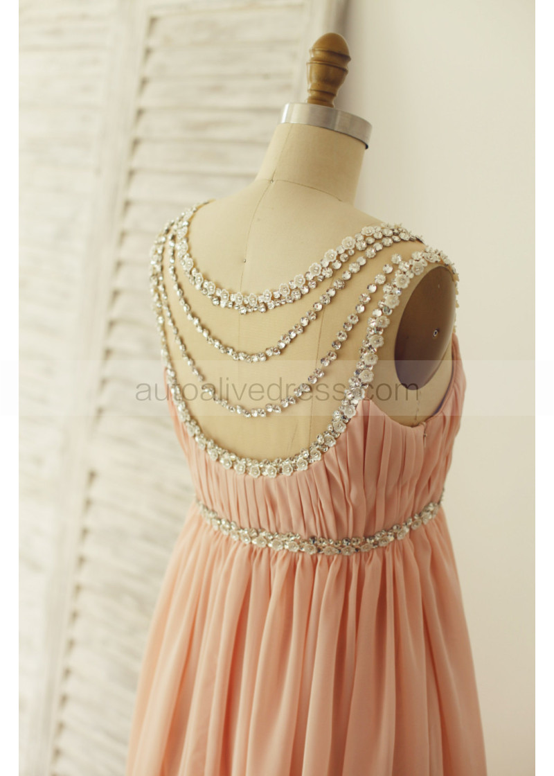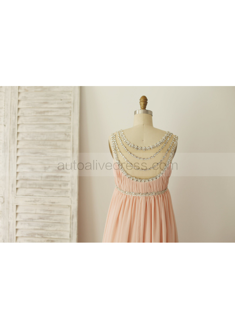 Crystal Beaded Peach Pink Chiffon Timeless Maternity Bridesmaid Dress