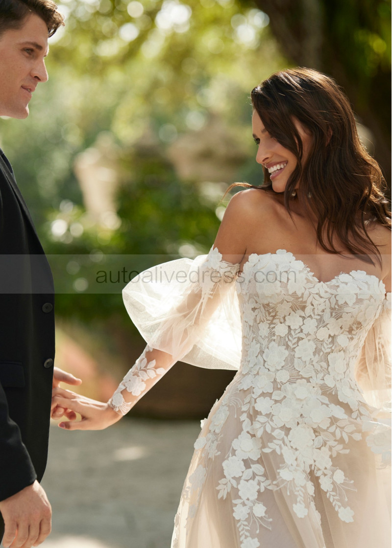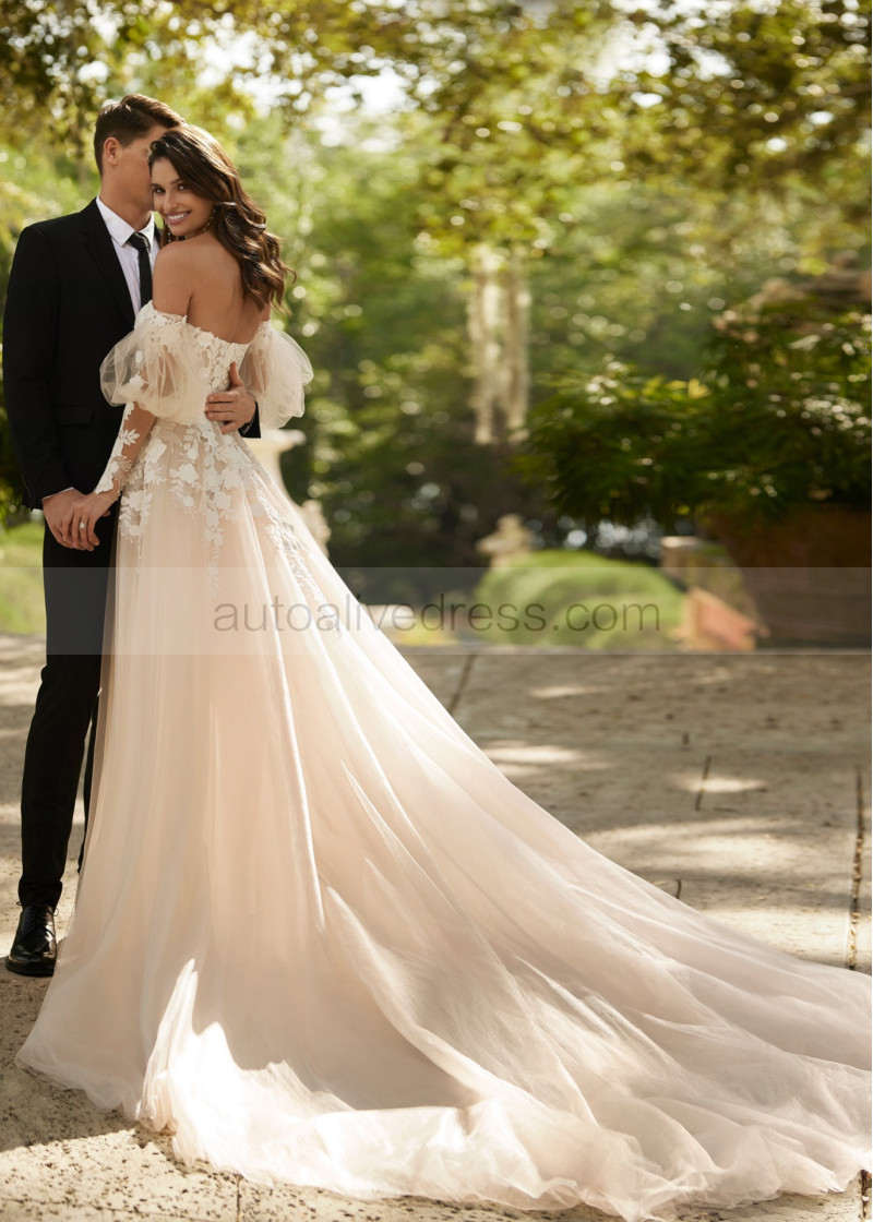 Delicate Lace Tulle Floral Fairytale Wedding Dress