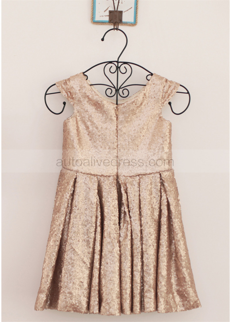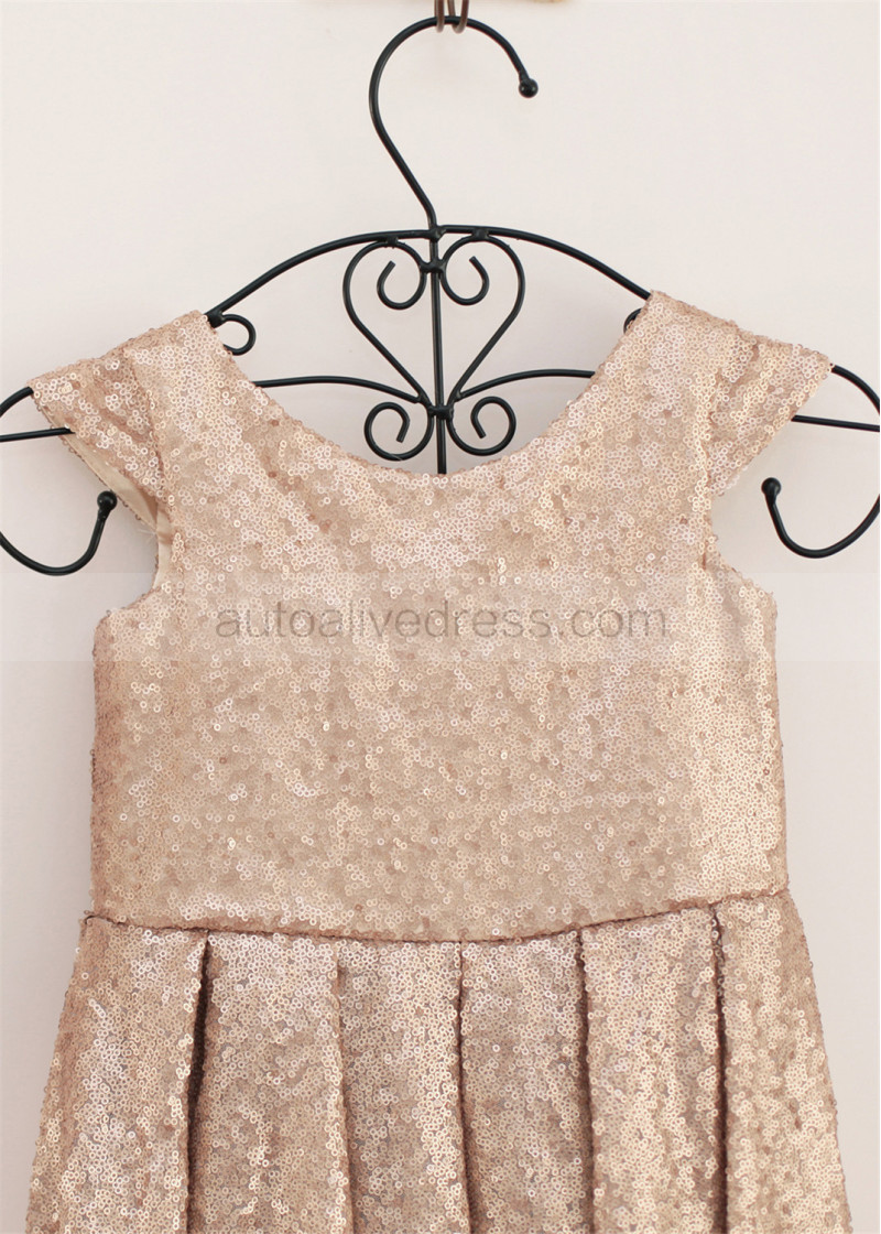 Champagne Sequin Box Pleated Simple Flower Girl Dress