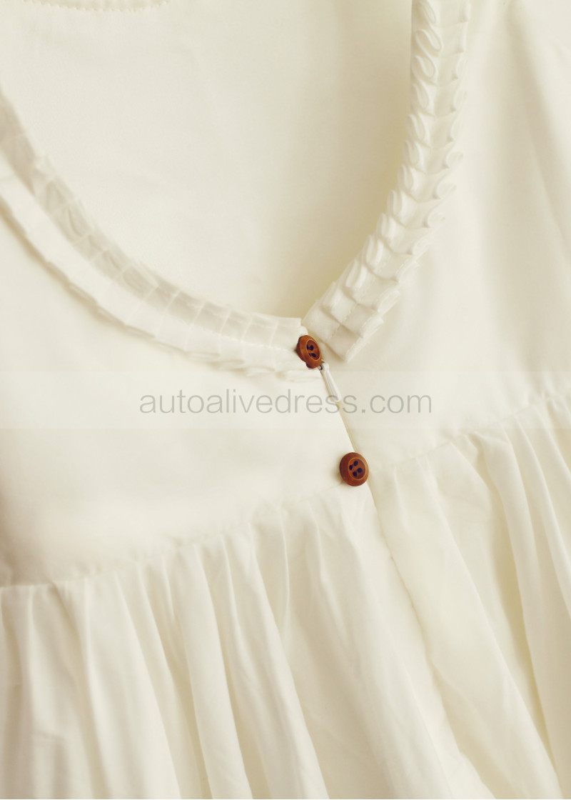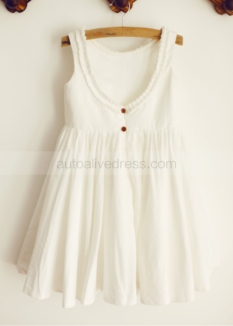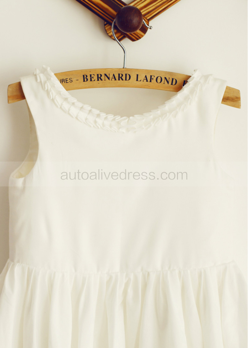 Ruffled Neck Ivory Cotton Knee Length Flower Girl Dress