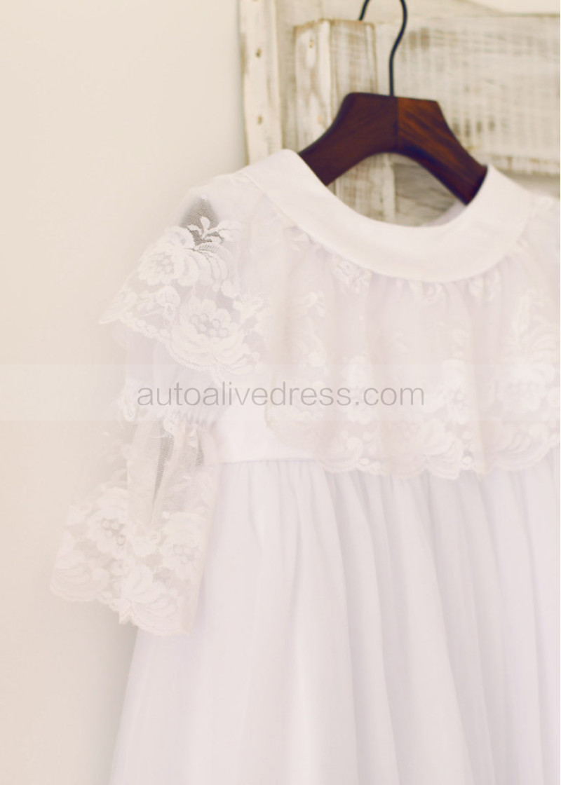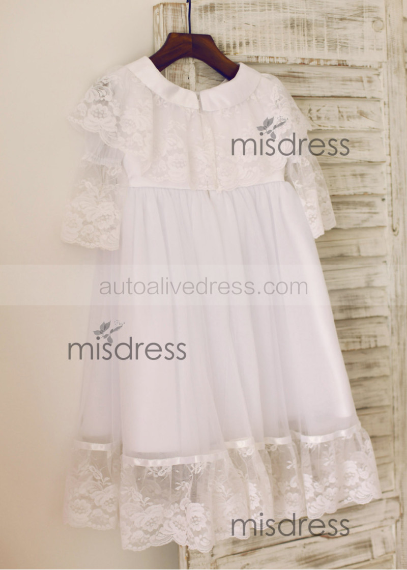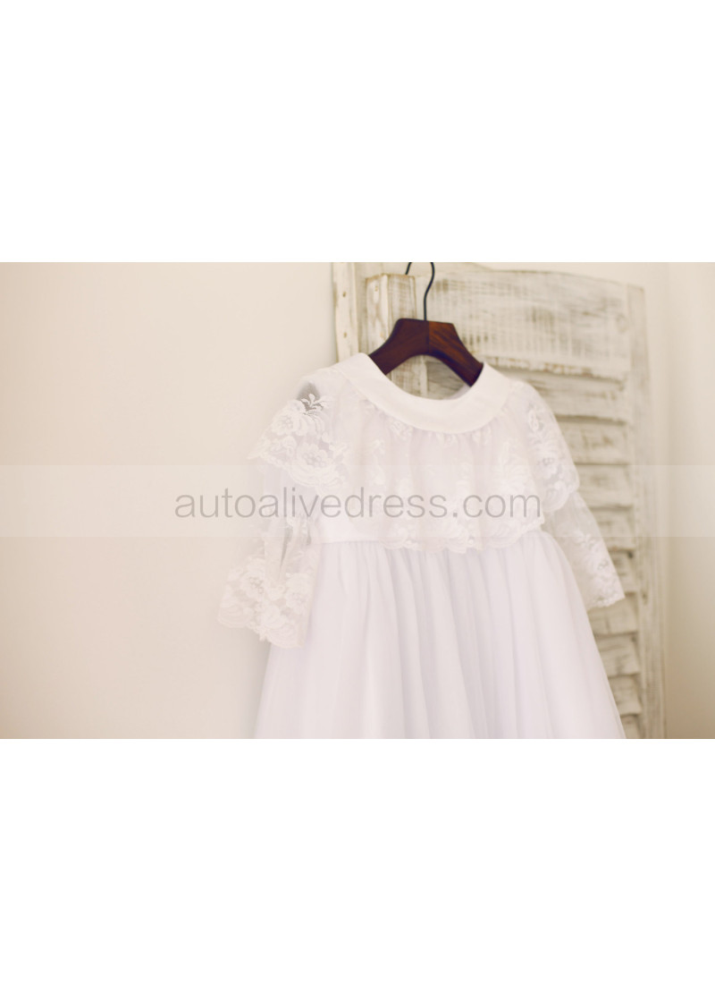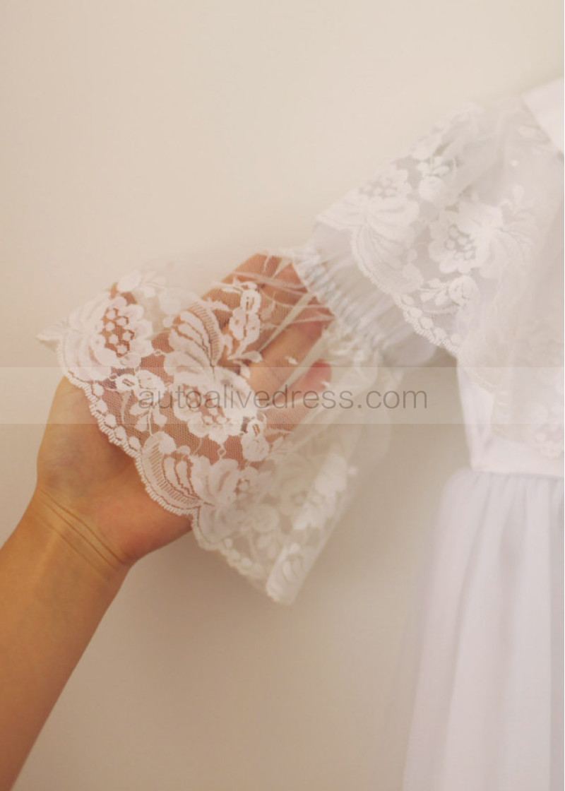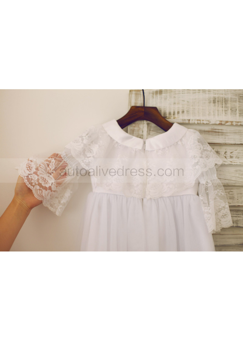 Long Sleeves White Lace Tulle Flower Girl Dress With Attached Cape