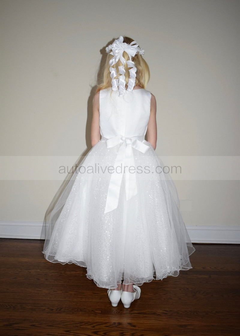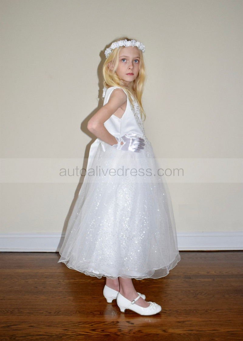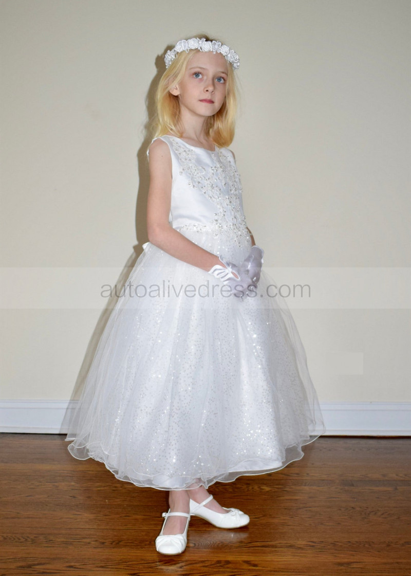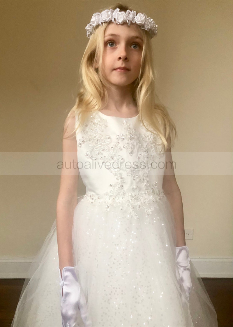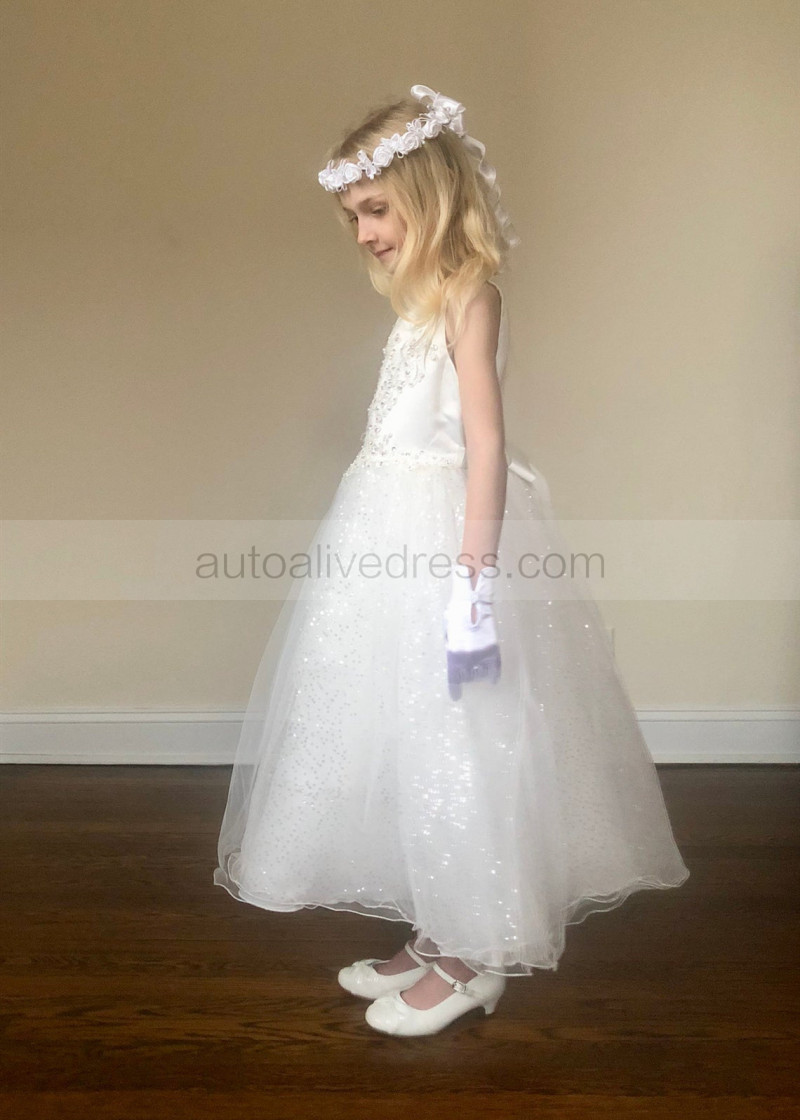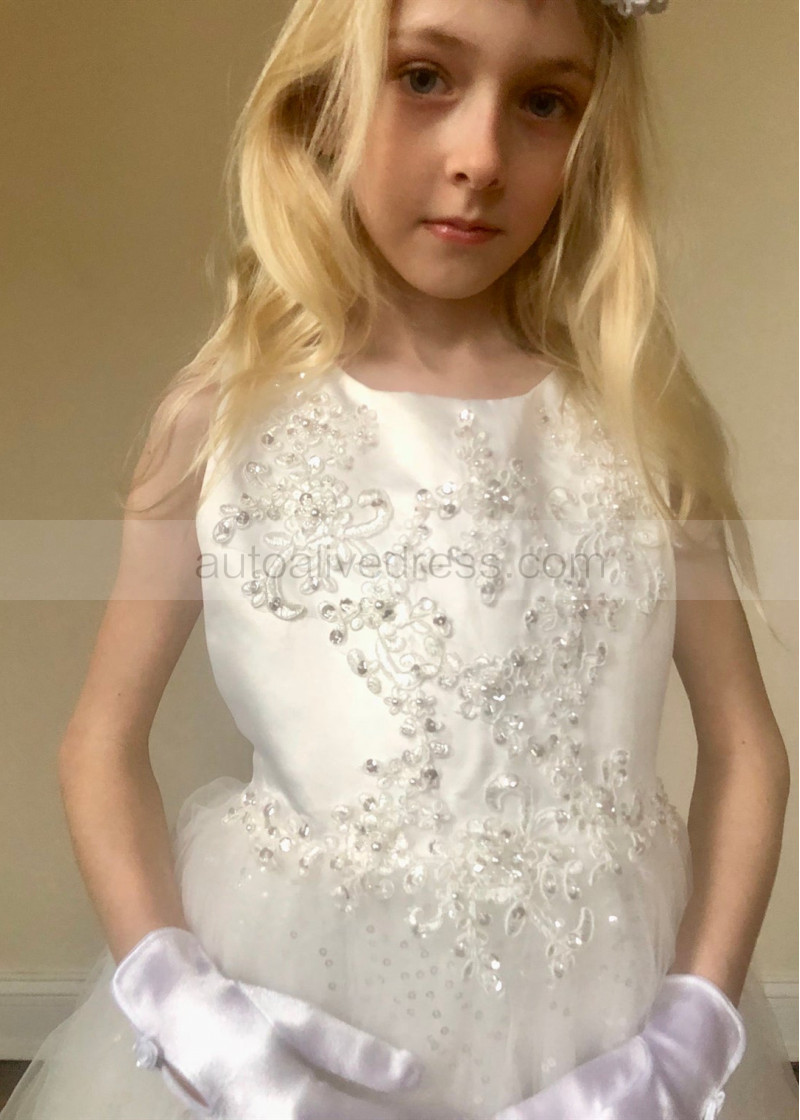 Beaded Ivory Lace Tulle Ankle Length Flower Girl Dress