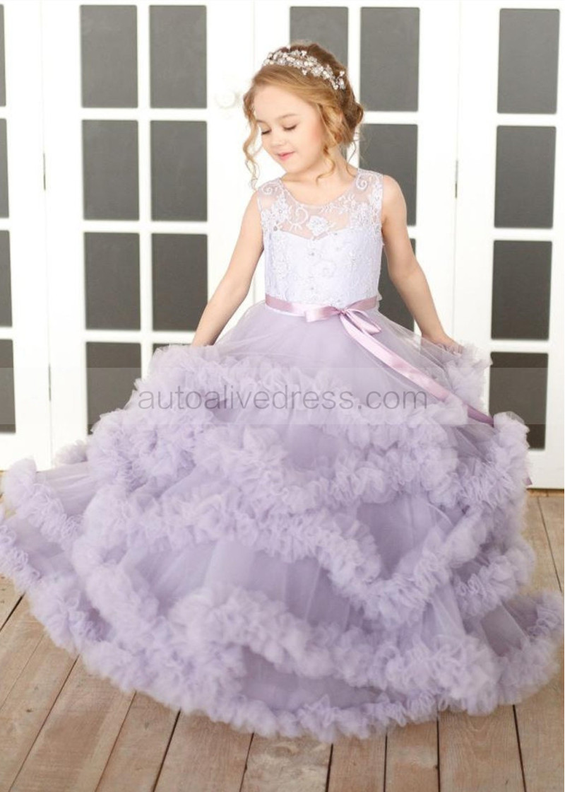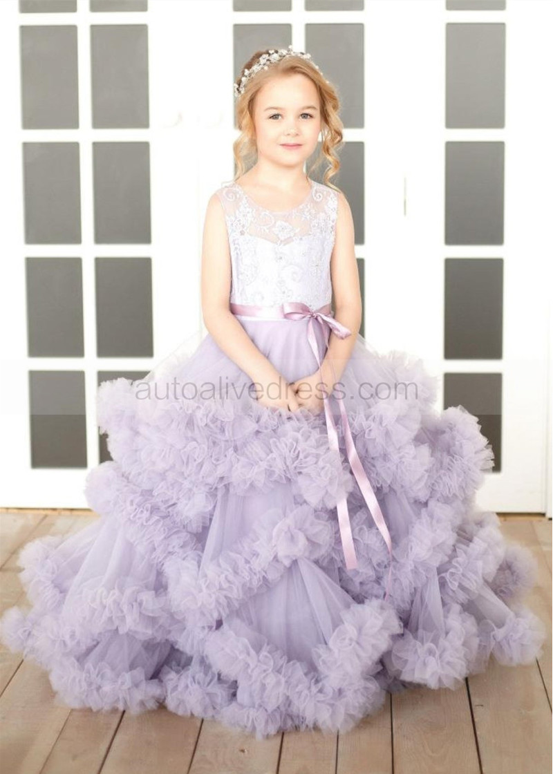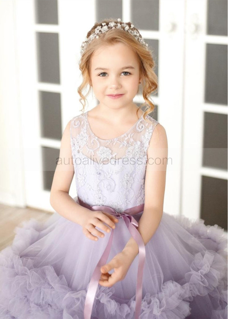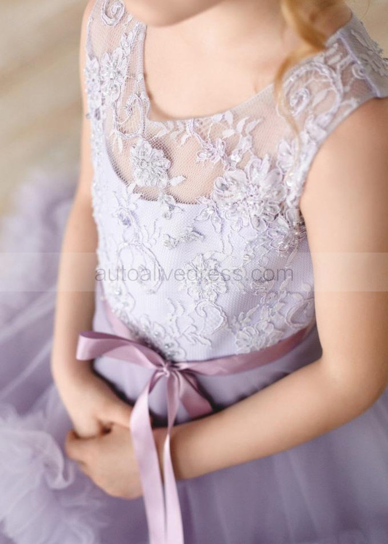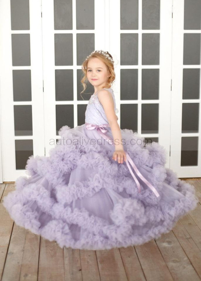 Beaded Lavender Lace Tulle Cloud Flower Girl Dress