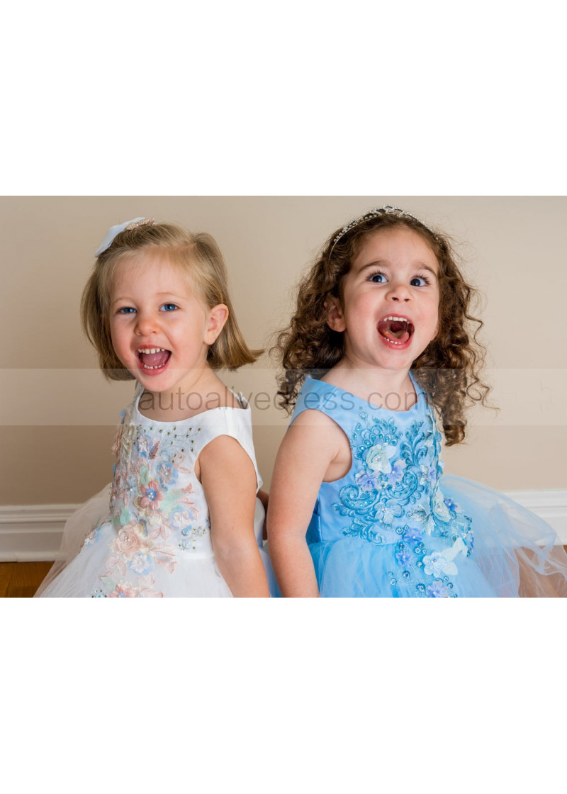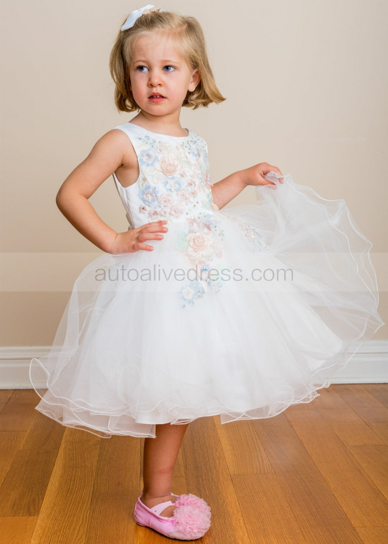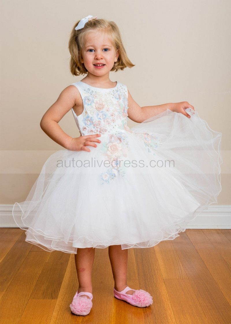 Beaded Multi Pink Lace Tulle Embroidery Flower Girl Dress