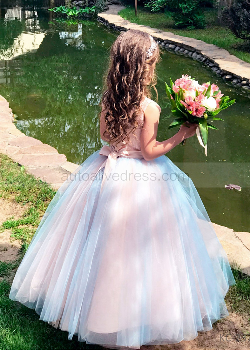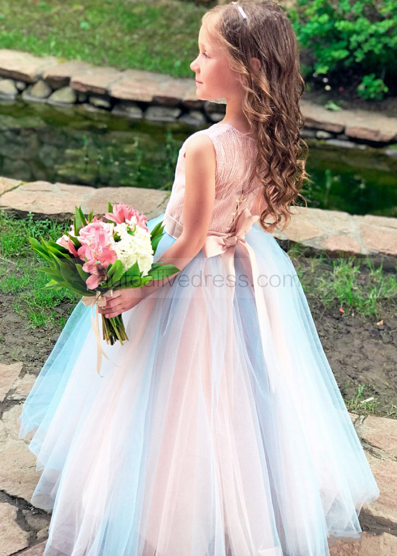 Blush And Soft Blue Glitter Tulle Flower Girl Dress