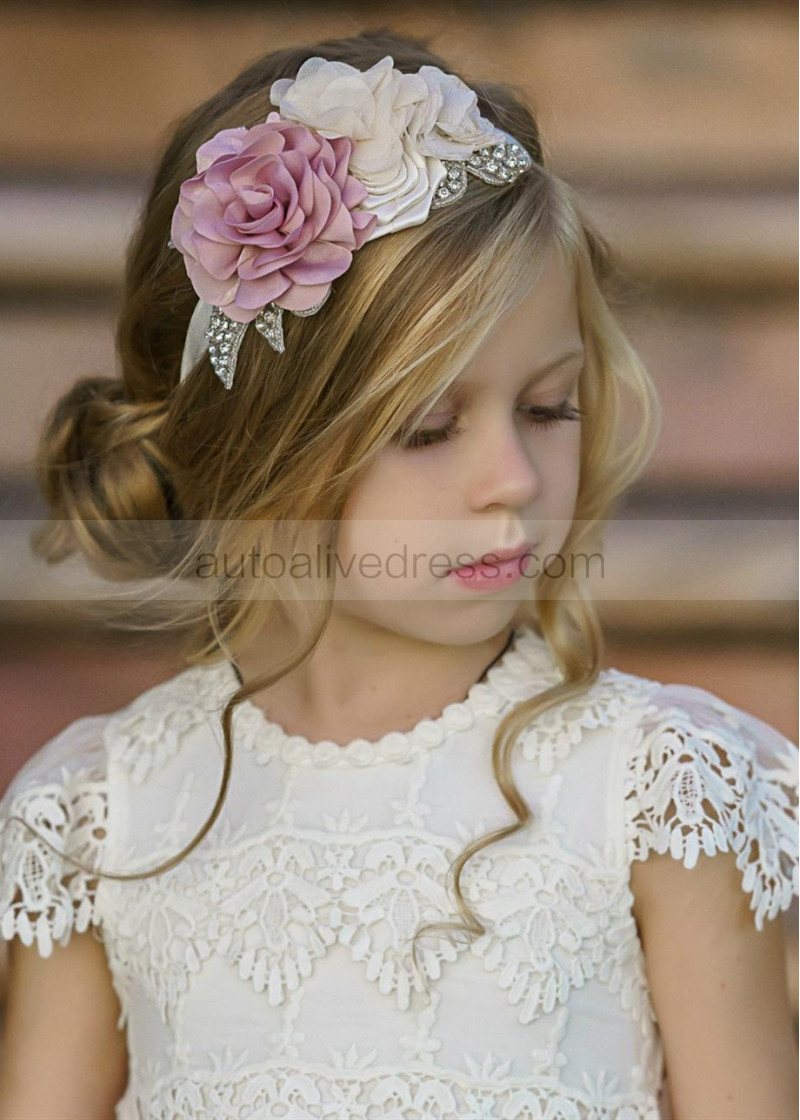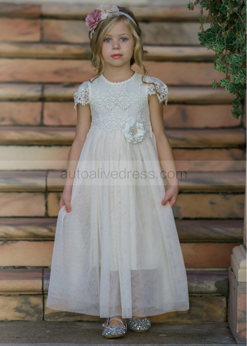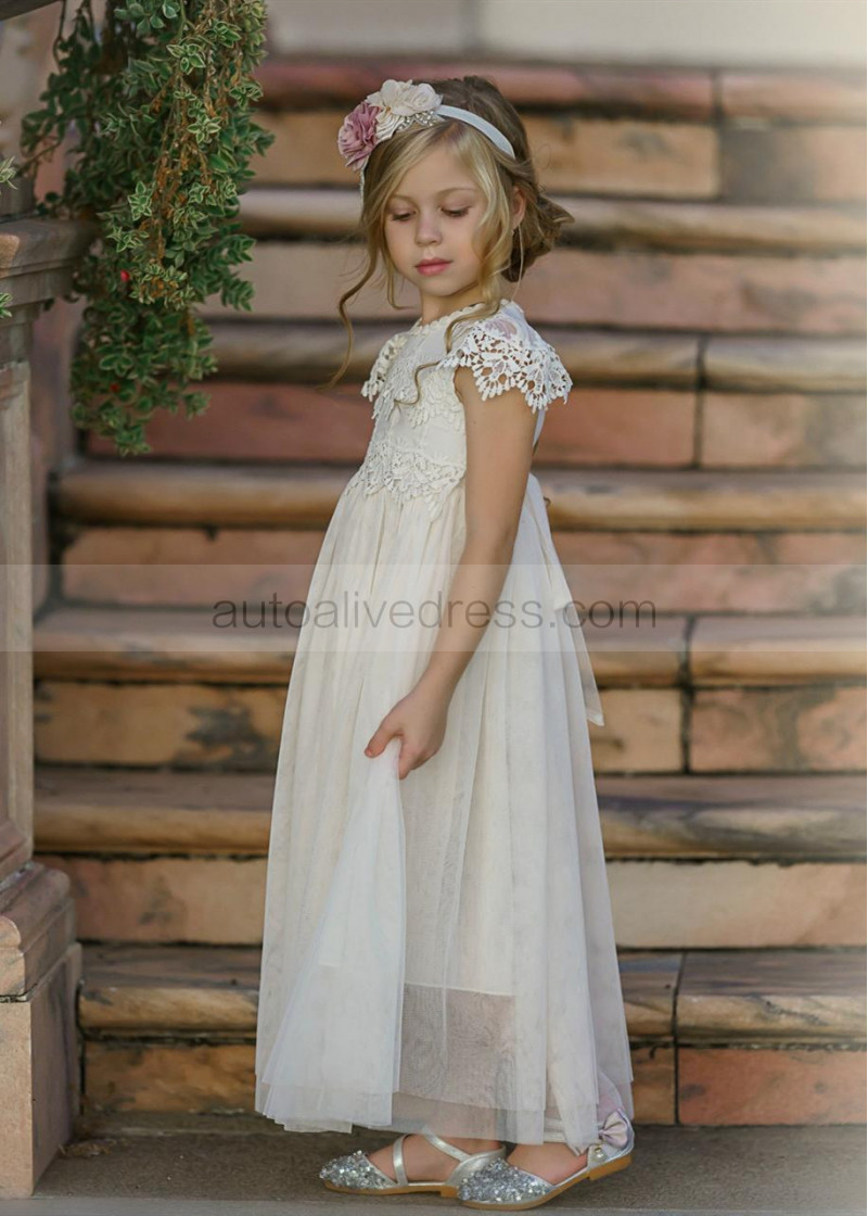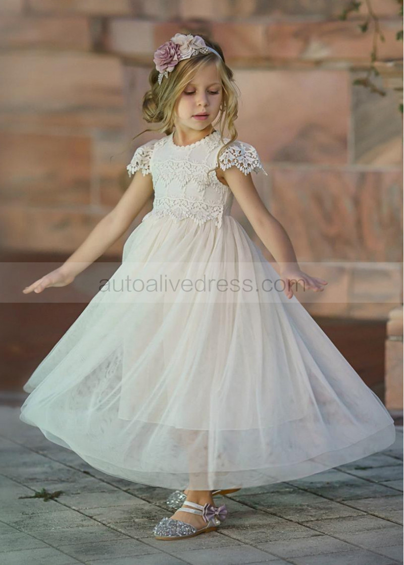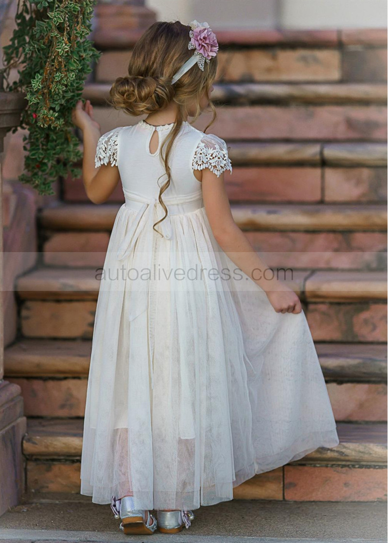 Cap Sleeve Ivory Lace Tulle Keyhole Back Flower Girl Dress