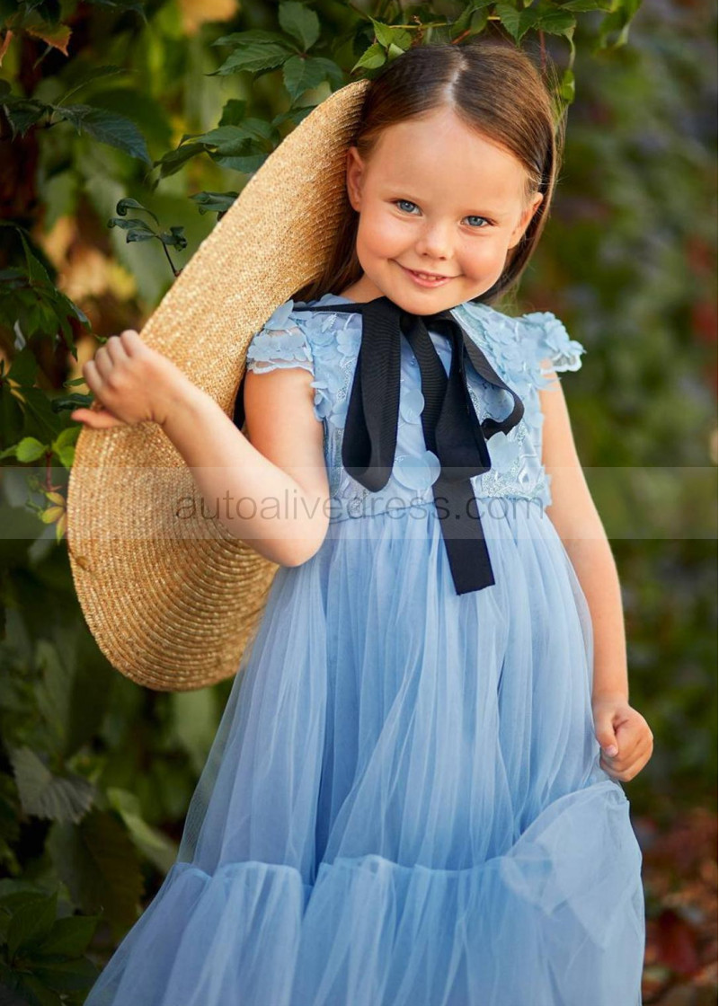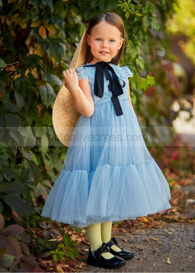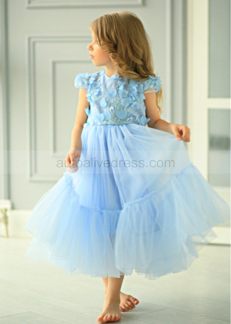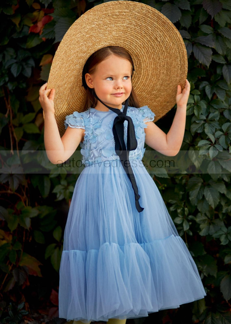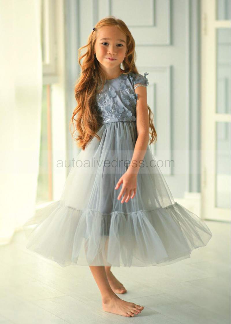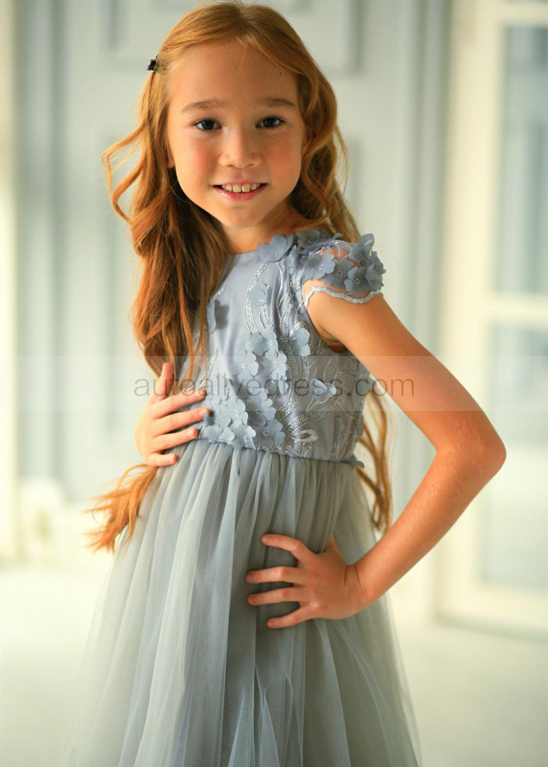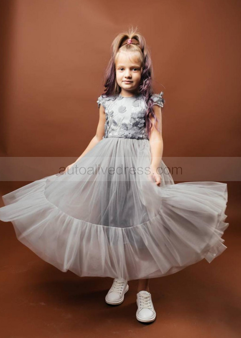 Cap Sleeves Floral Lace Tulle Flower Girl Dress