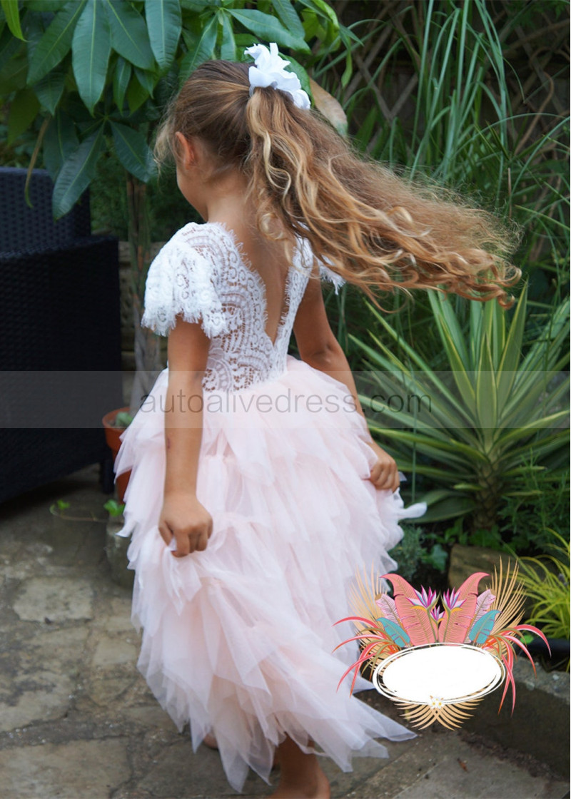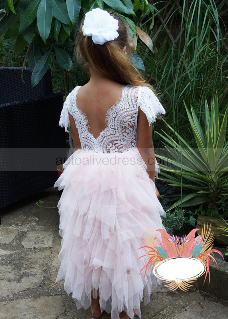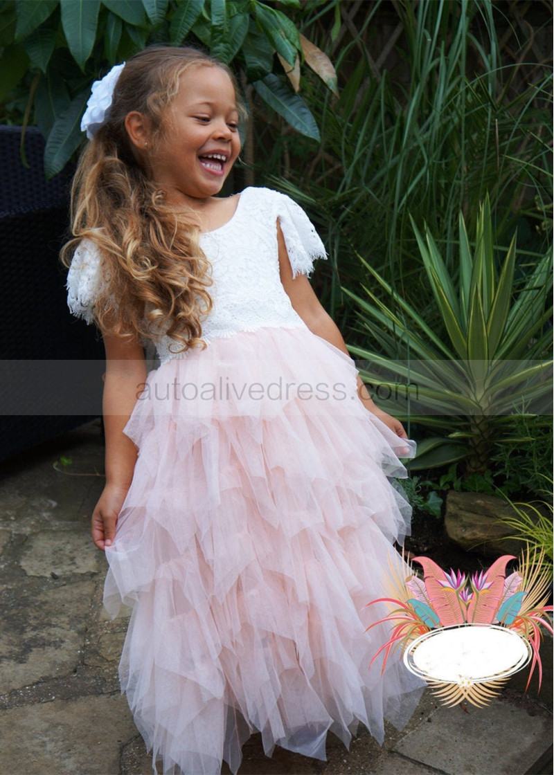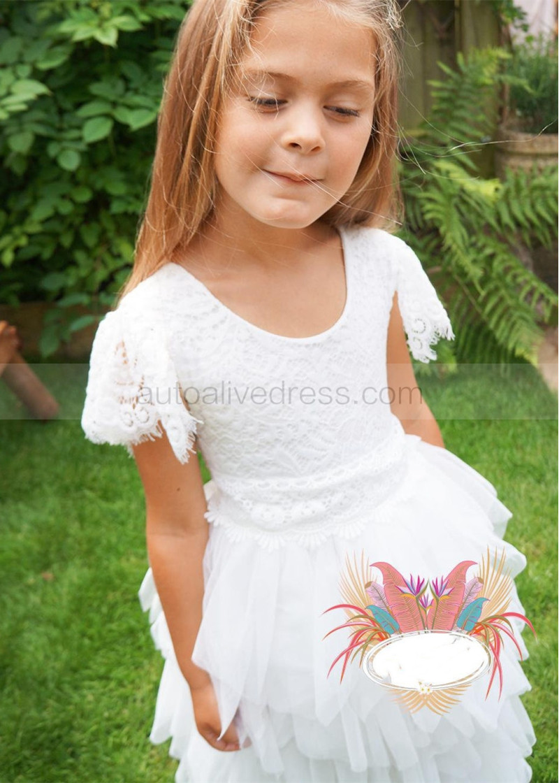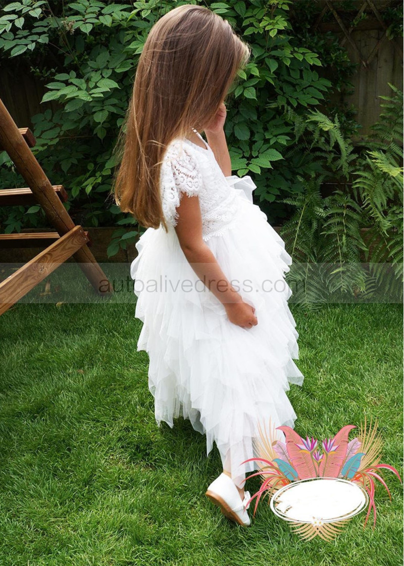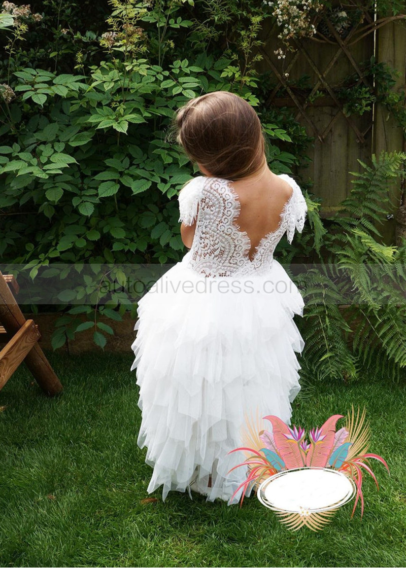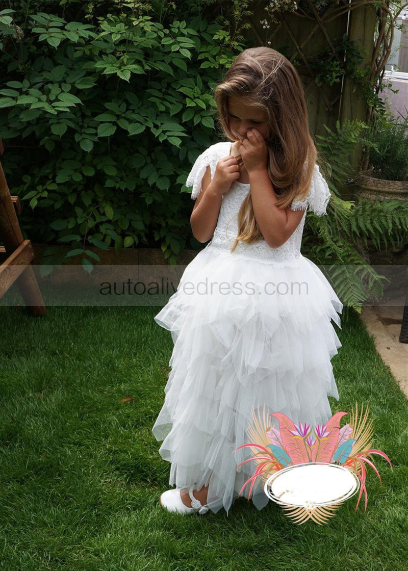 Cap Sleeves Ivory Ruffled Flower Girl Dress