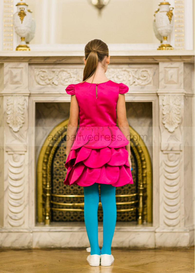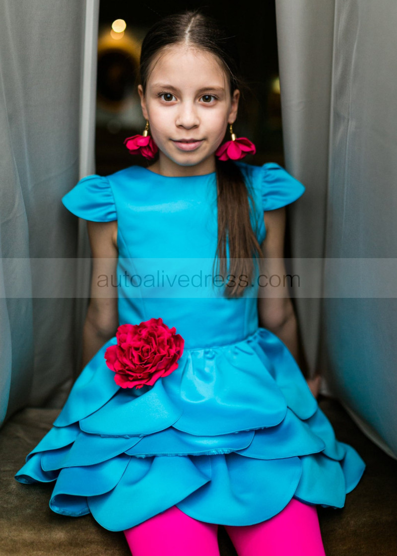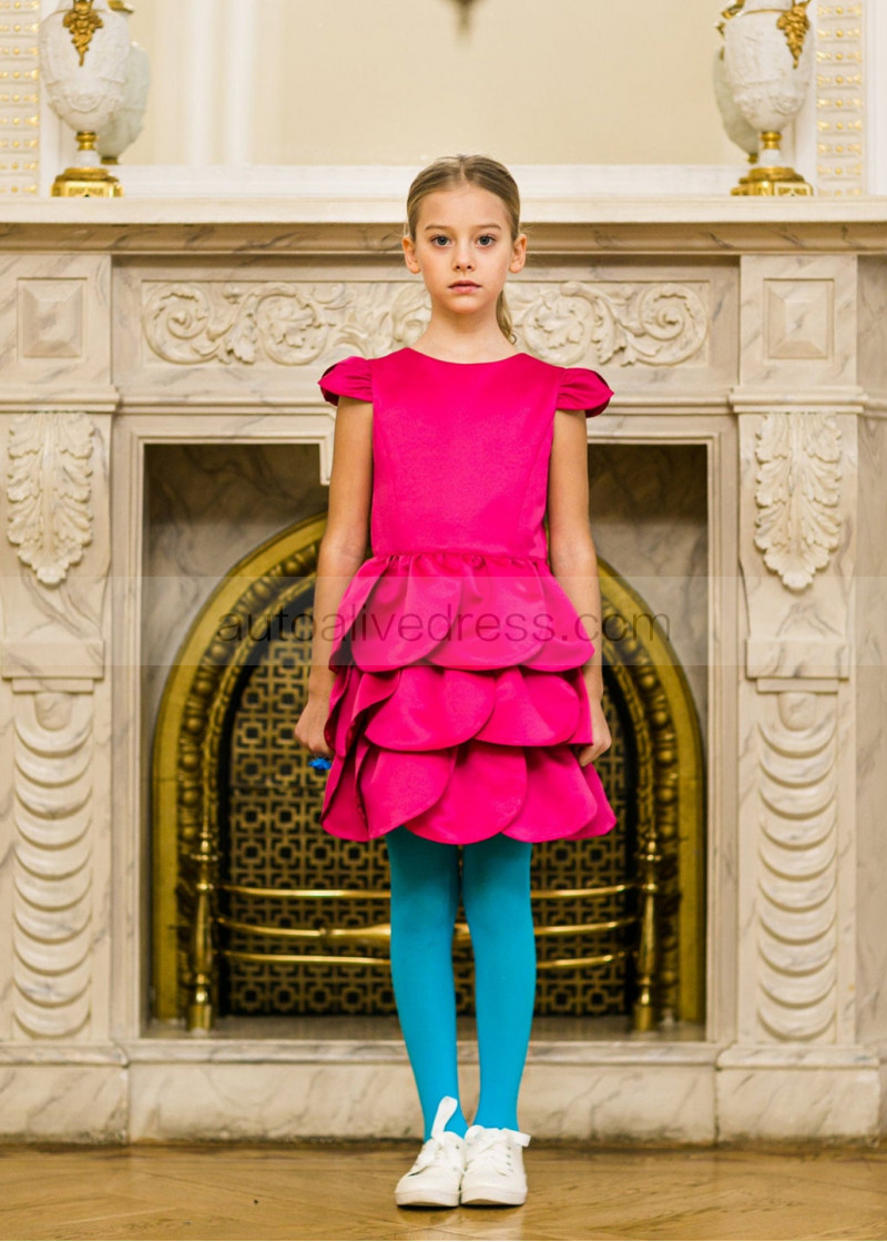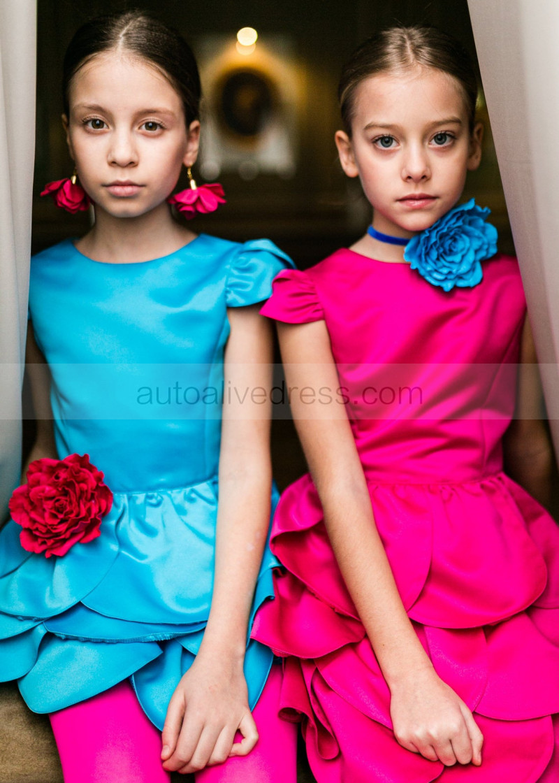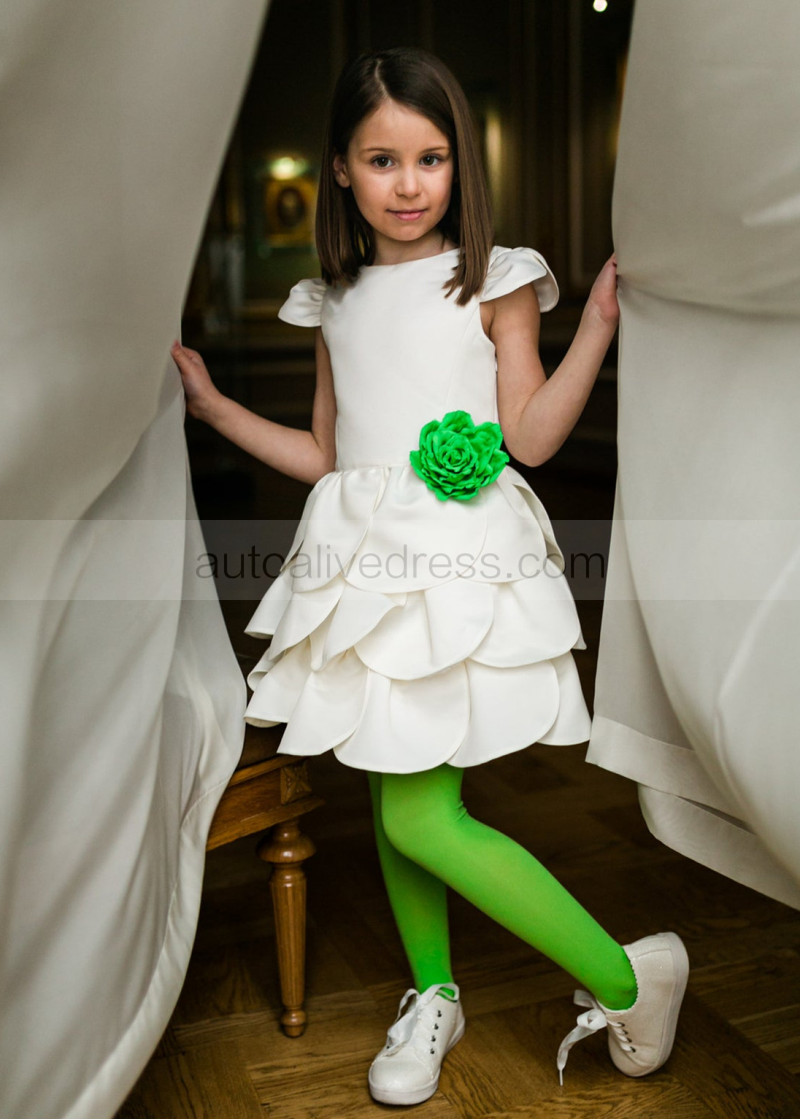 Cap Sleeves Satin Petals Flower Girl Dress