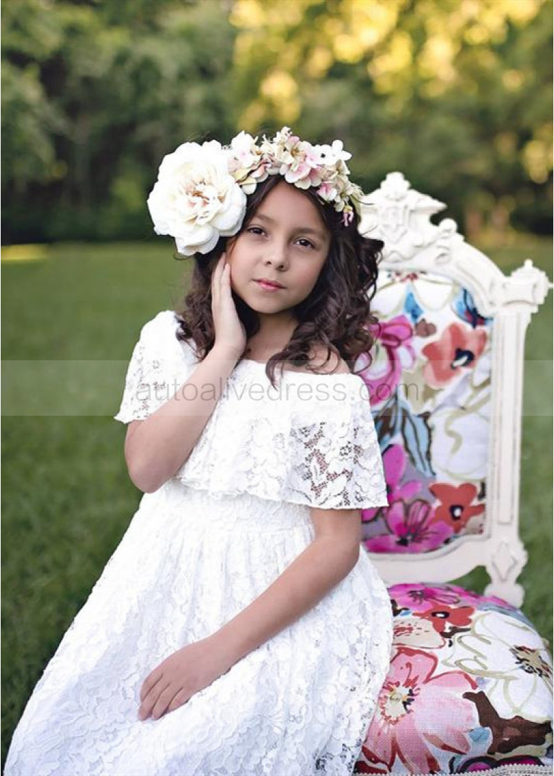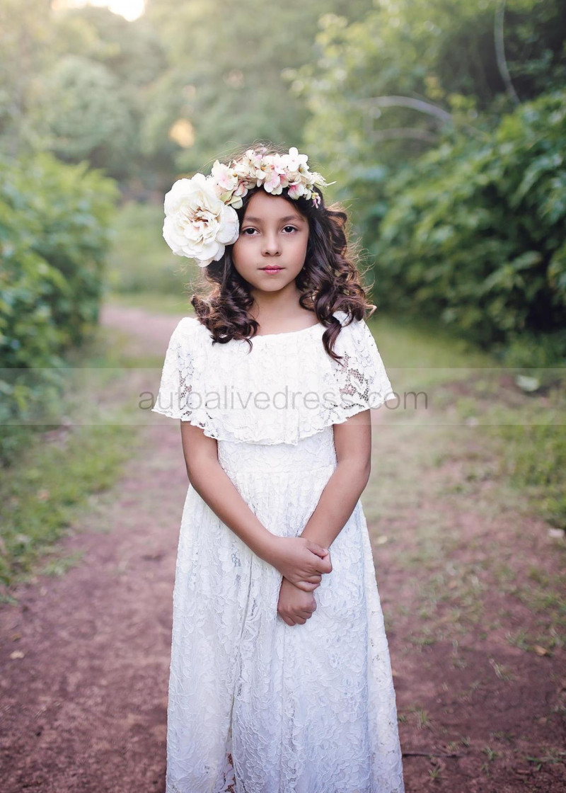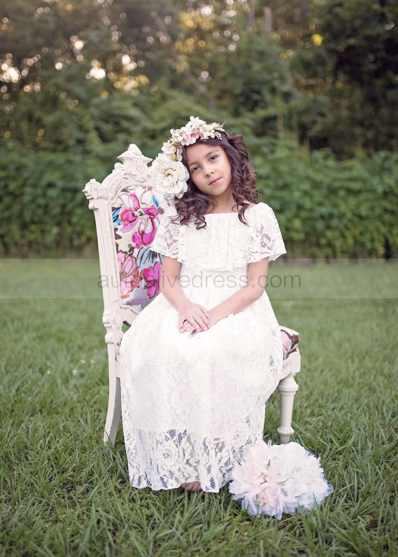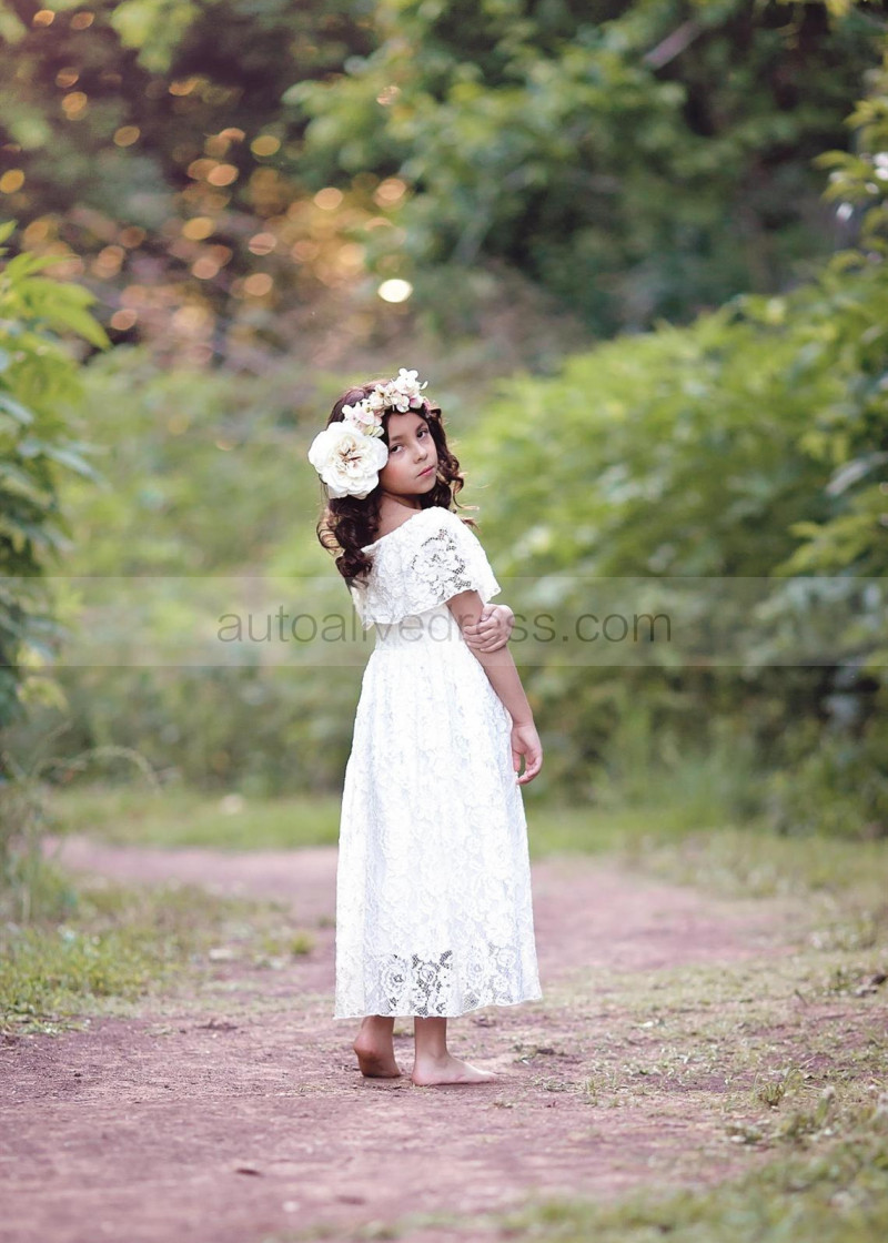 Cape Sleeves Ivory Lace Ankle Length Flower Girl Dress