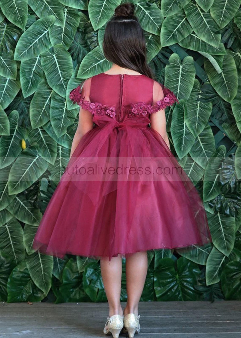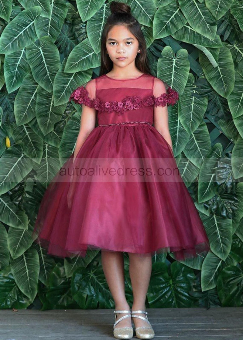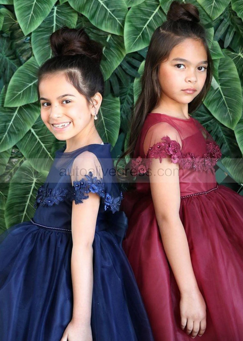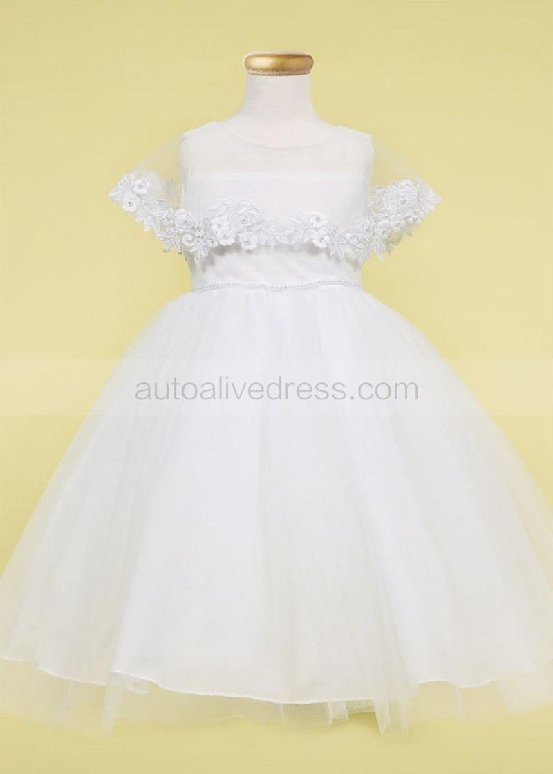 Cape Sleeves Pearls 3D Floral Lace Tulle Flower Girl Dress