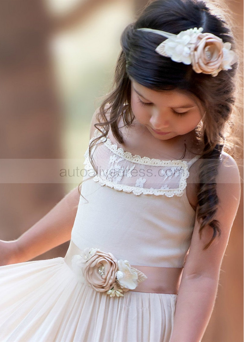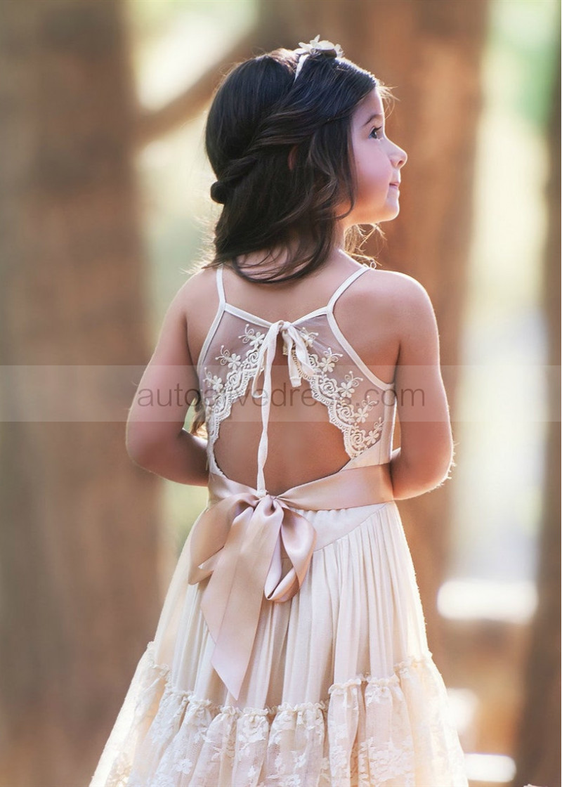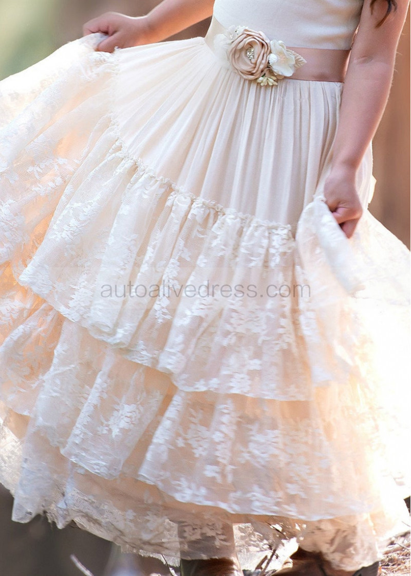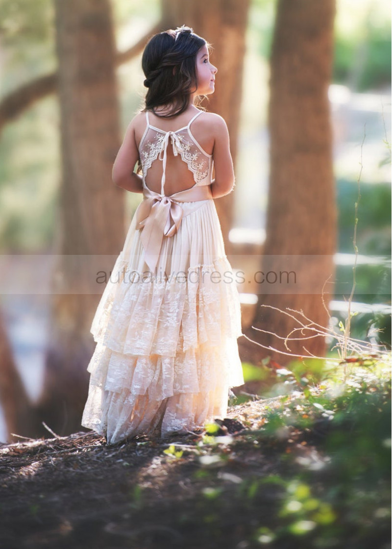 Champagne Lace Tulle Tiered Boho Flower Girl Dress