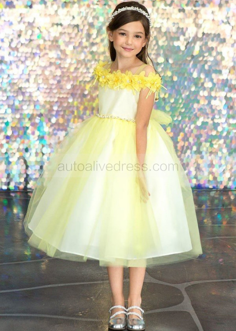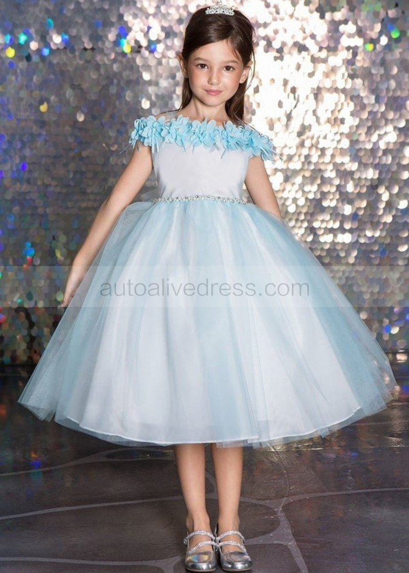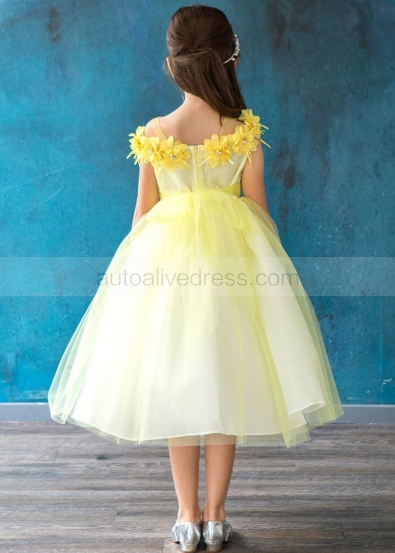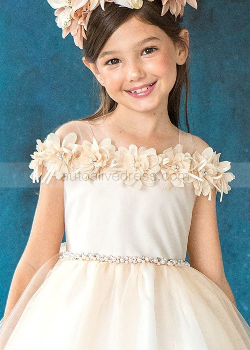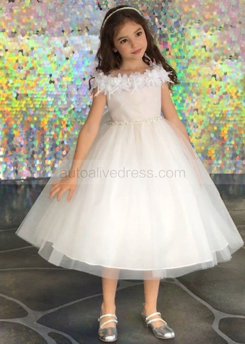 Cold Shoulder 3D Floral Tulle Flower Girl Dress