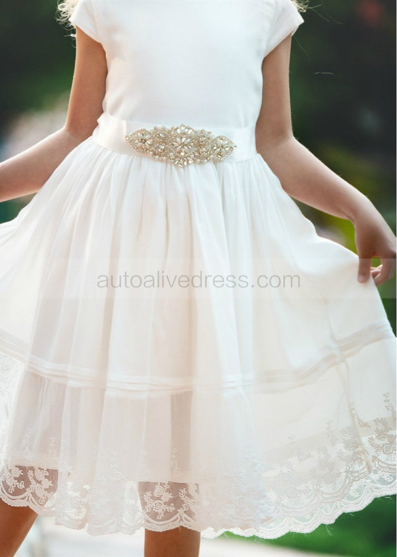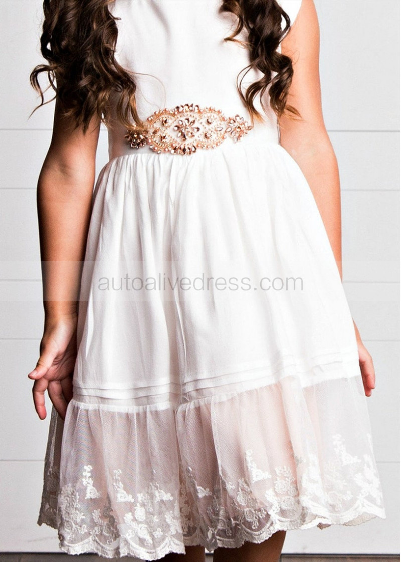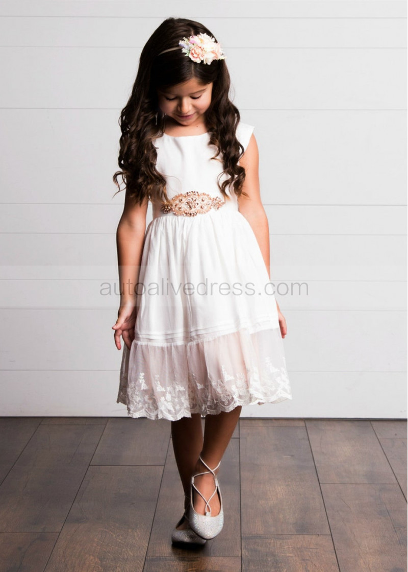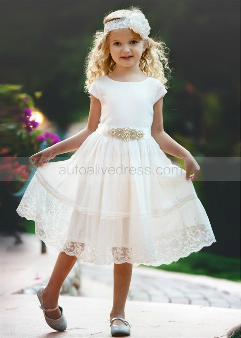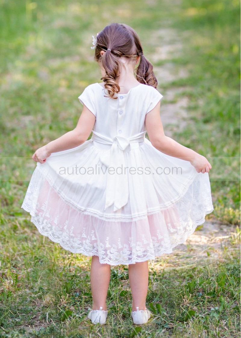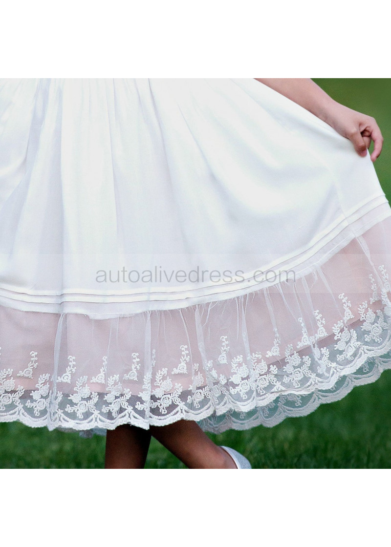 Cotton Lace Trim Tea Length Chic Flower Girl Dress