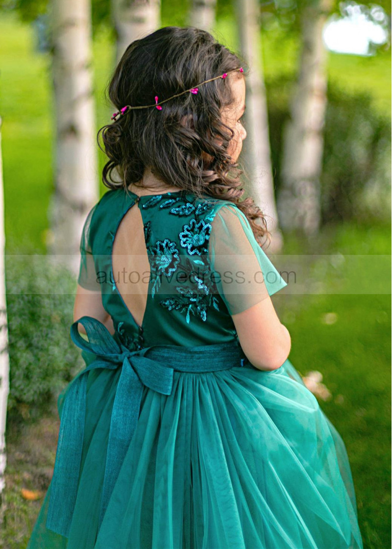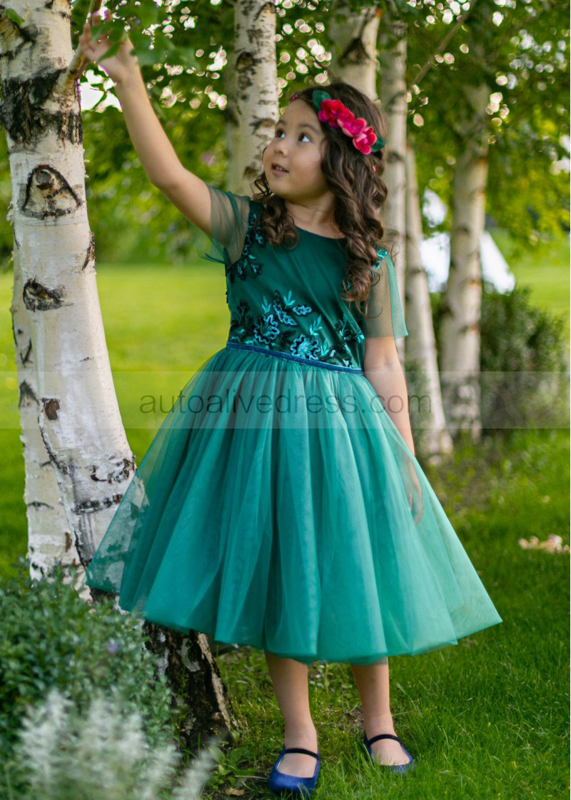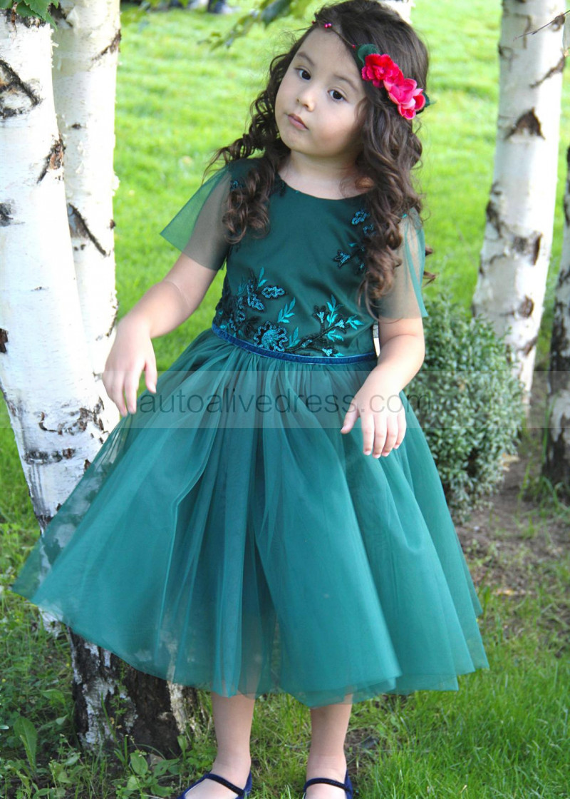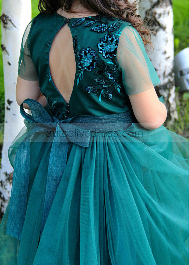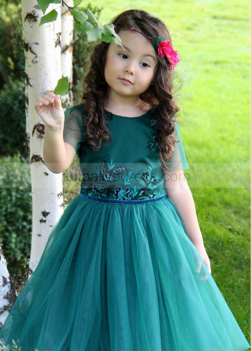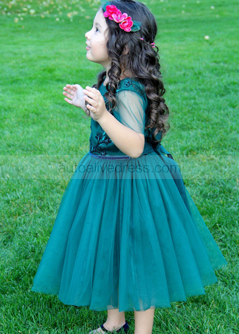 Dark Teal Lace Tulle Flower Girl Dress