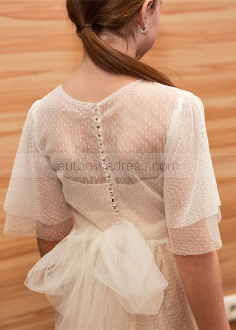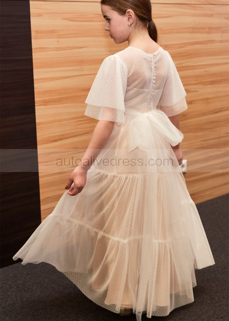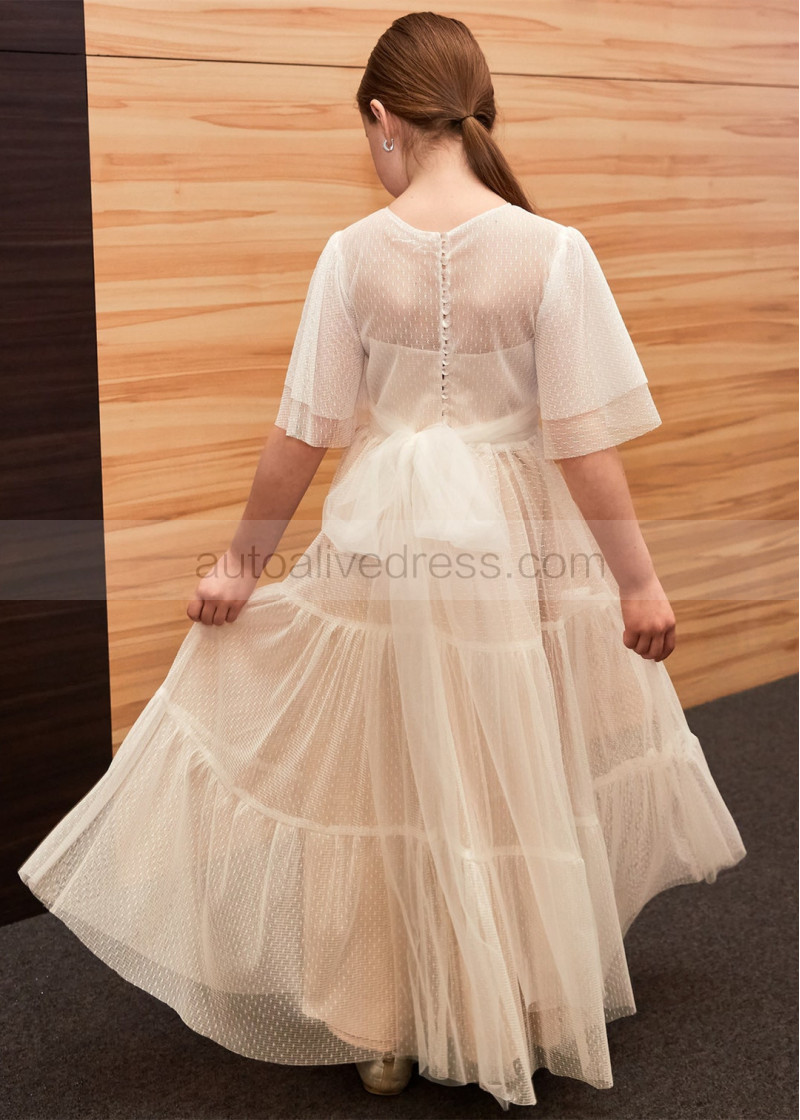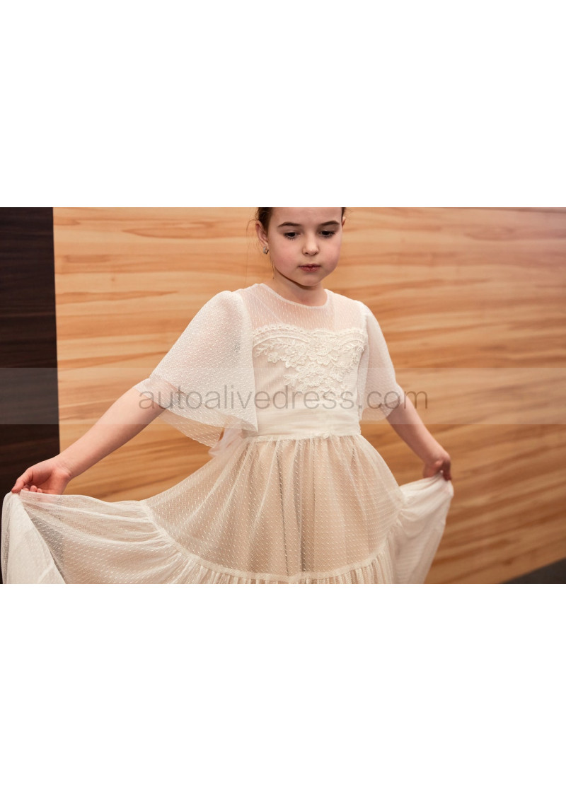 Dotted Lace Tulle Lovely Country Flower Girl Dress