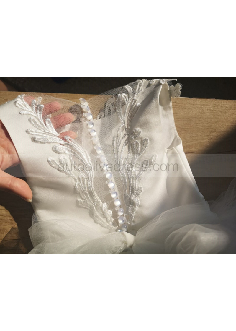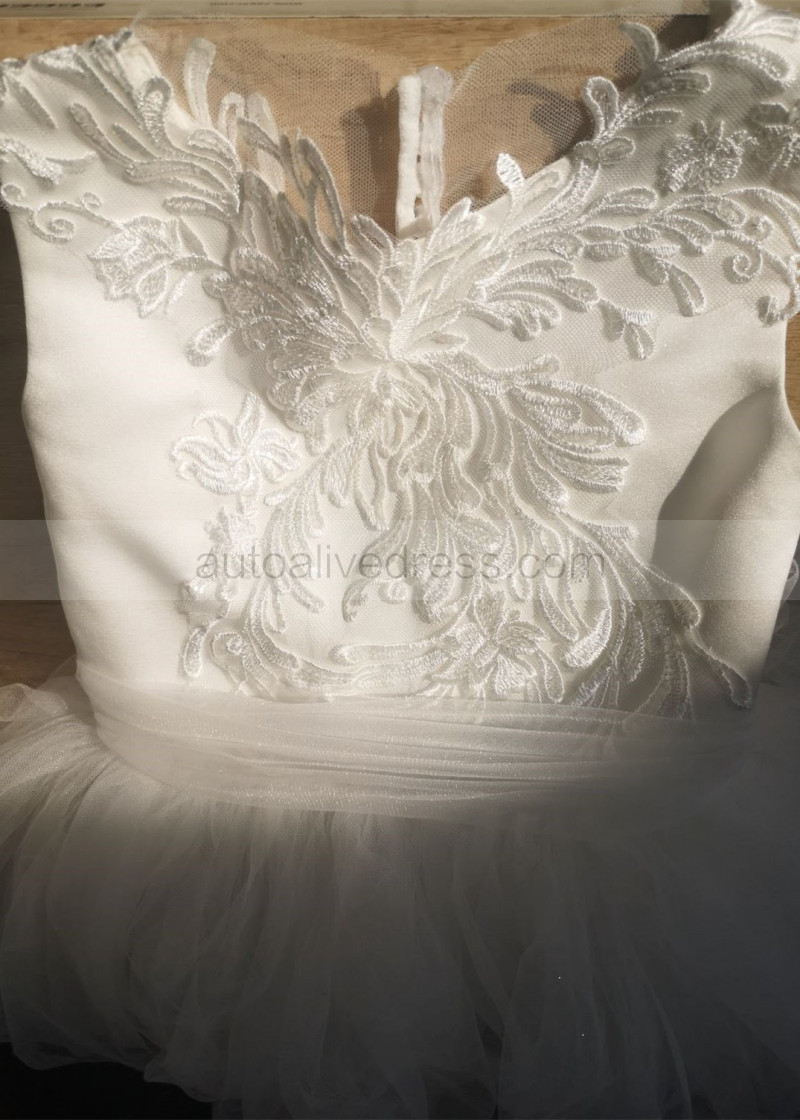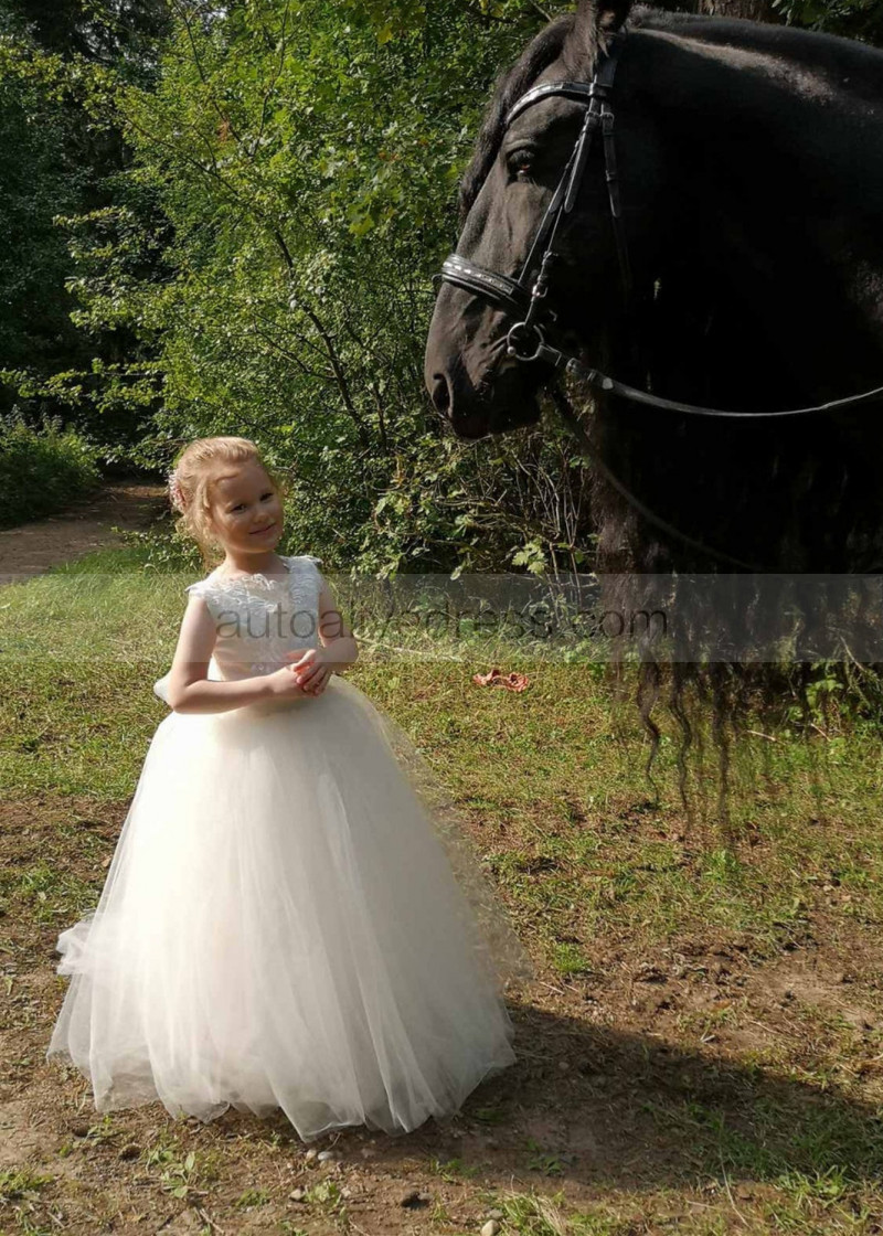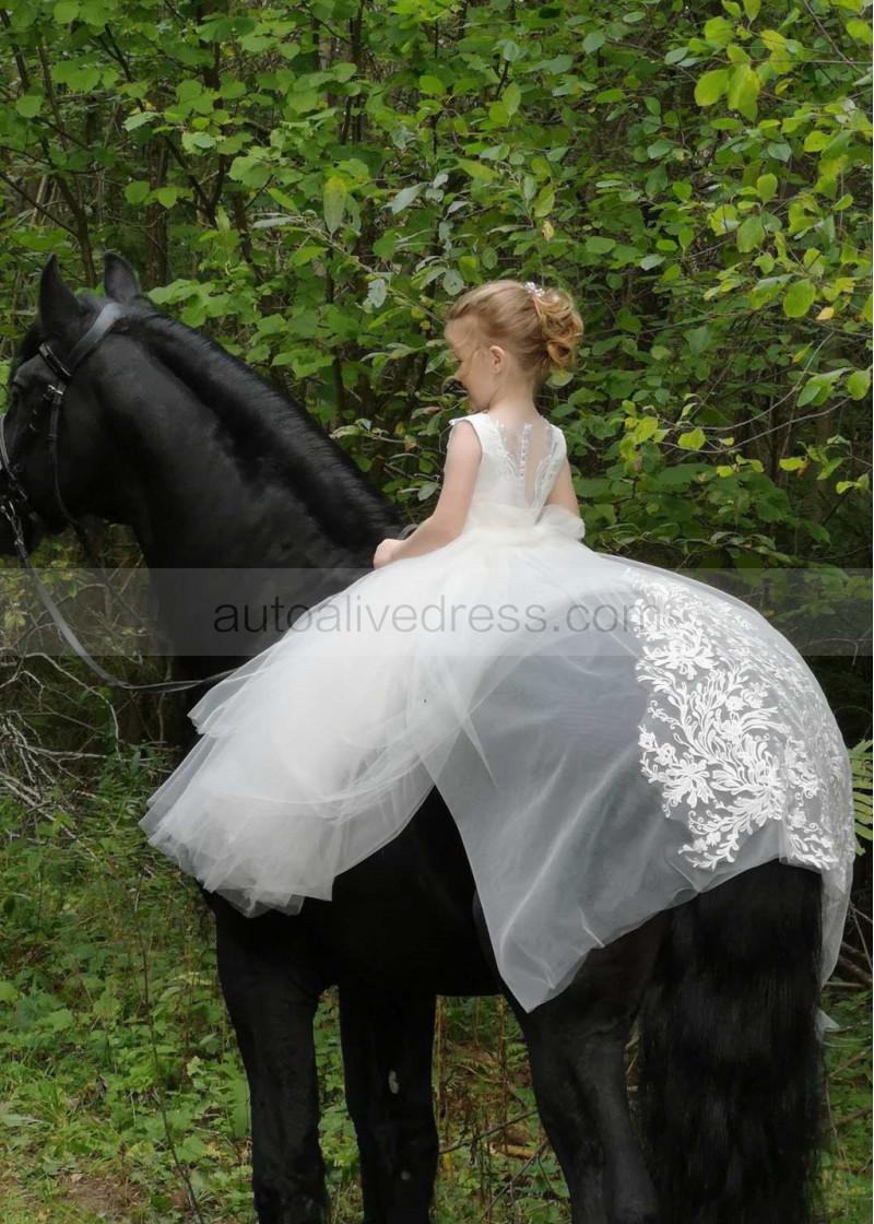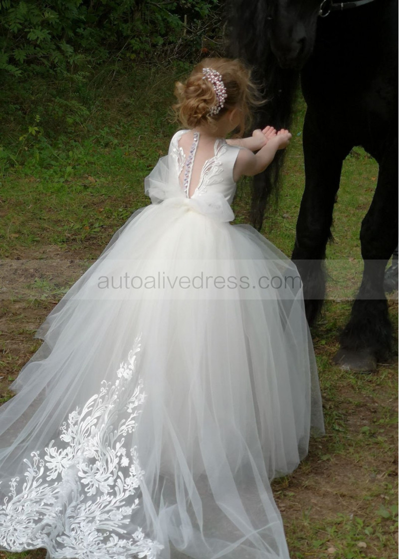 Elegant Ivory Lace Tulle Flower Girl Dress With Train