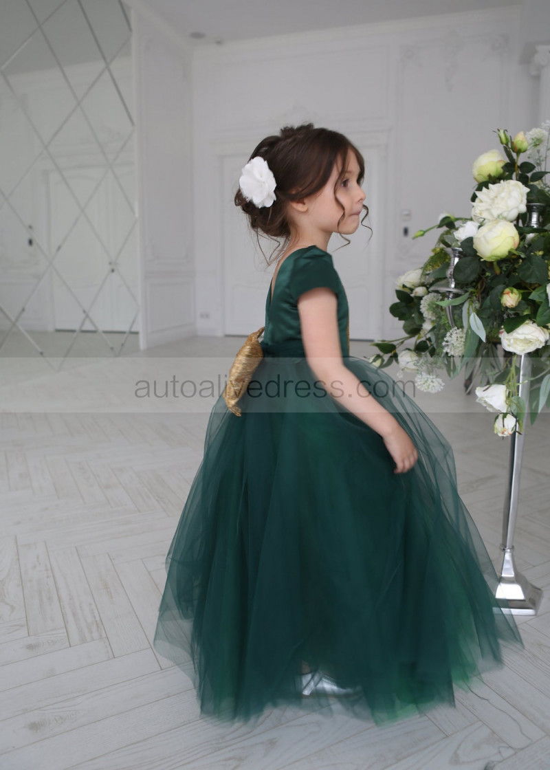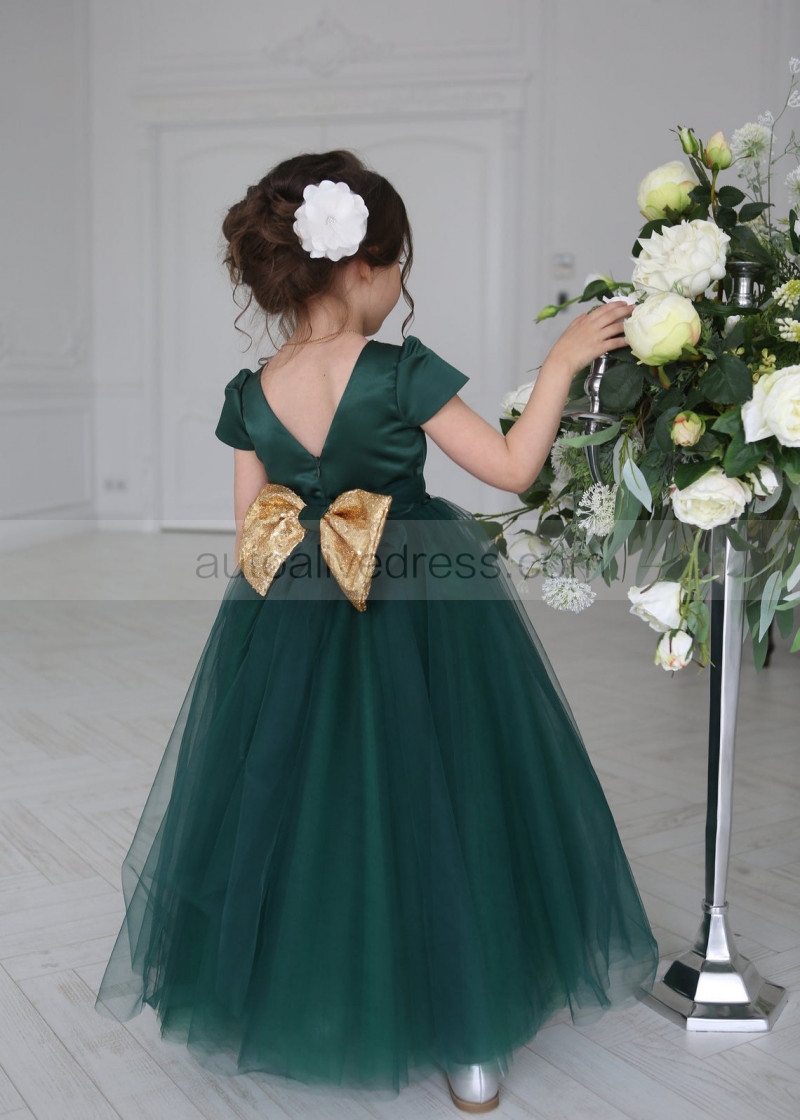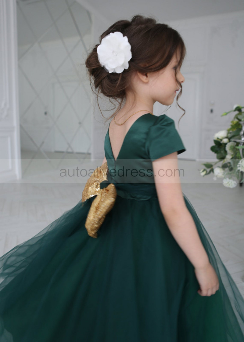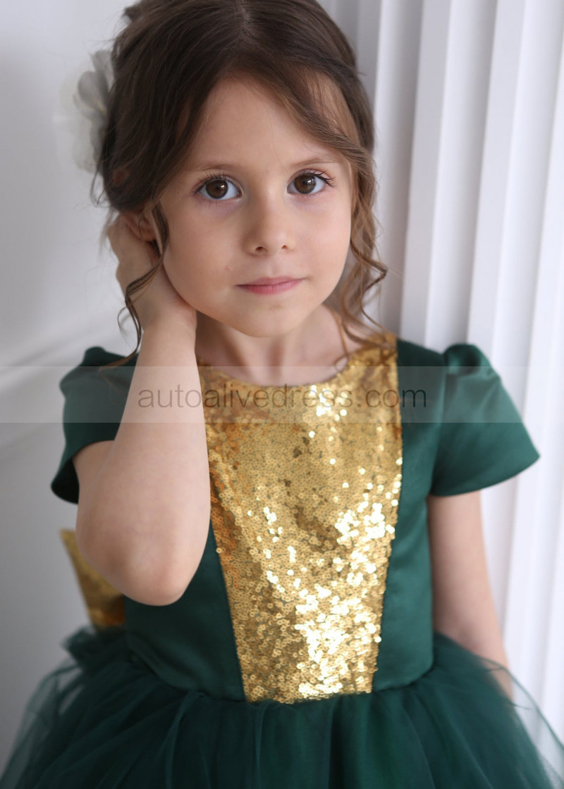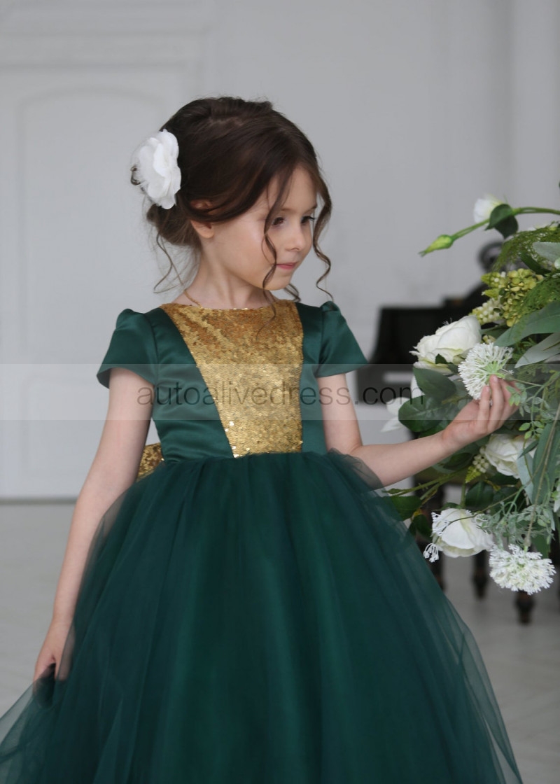 Emerald Tulle Gold Sequin V Back Flower Girl Dress Party Dress