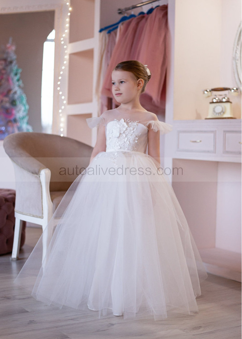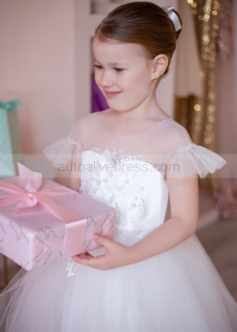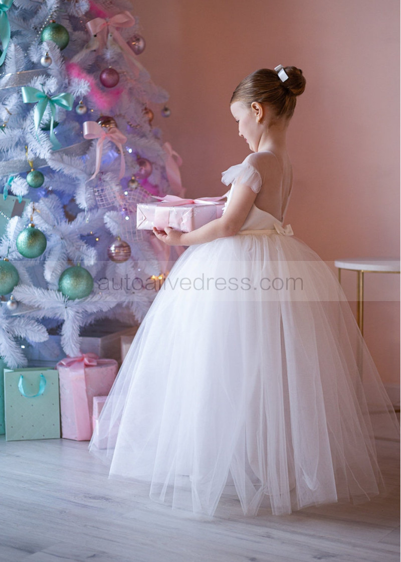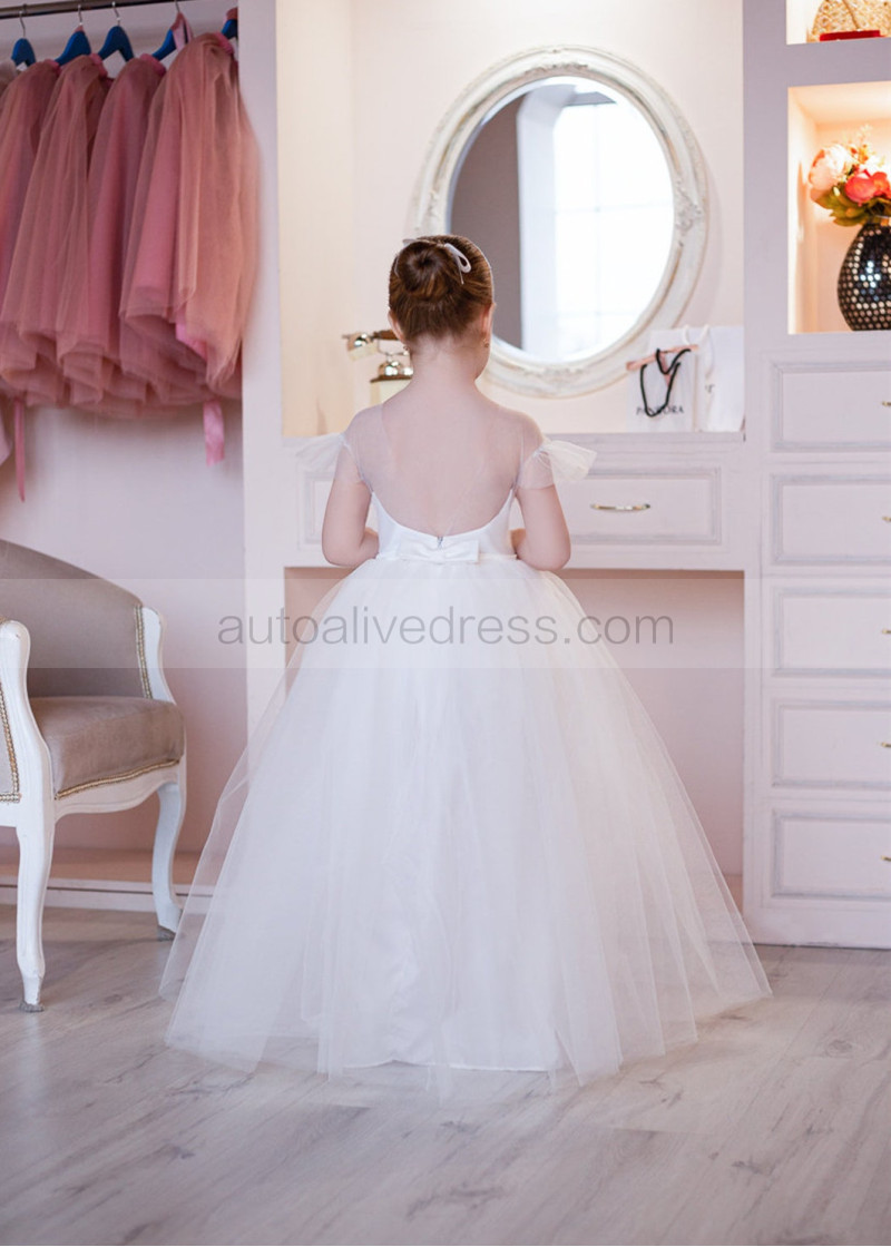 Feifei Sleeves Ivory Lace Tulle Flower Girl Dress