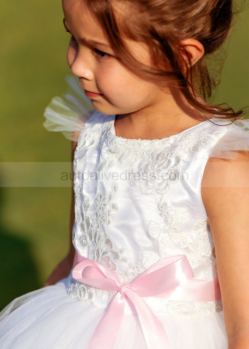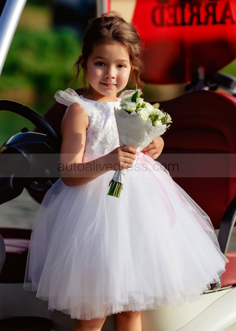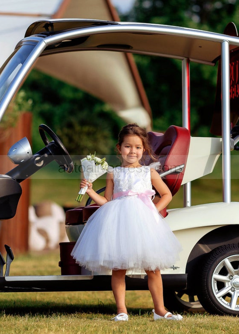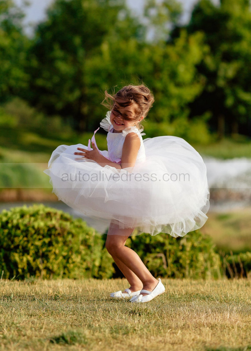 Feifei Sleeves White Lace Tulle Tutu Flower Girl Dress
