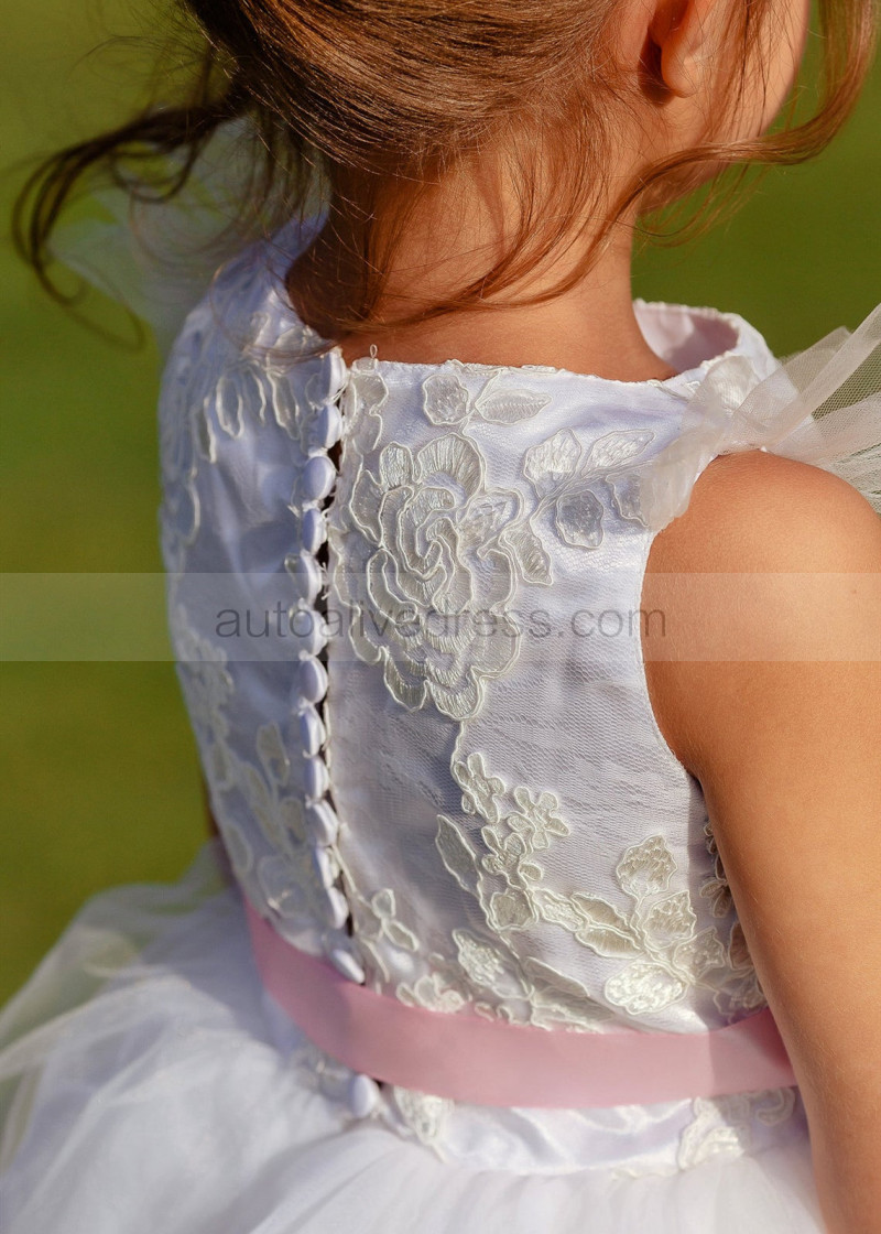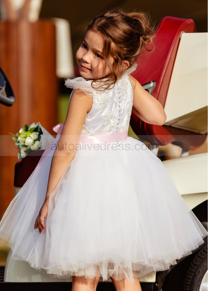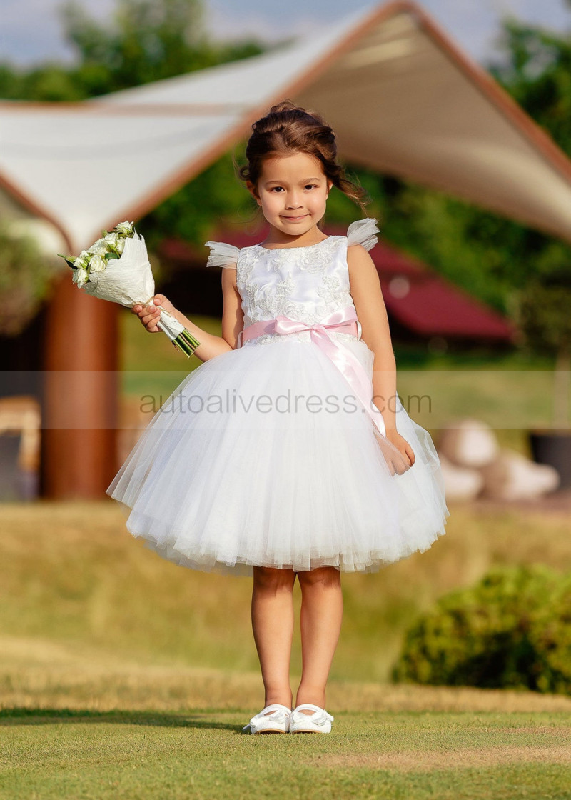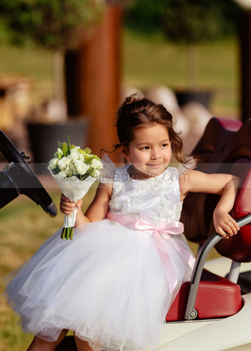 Feifei Sleeves White Lace Tulle Tutu Flower Girl Dress