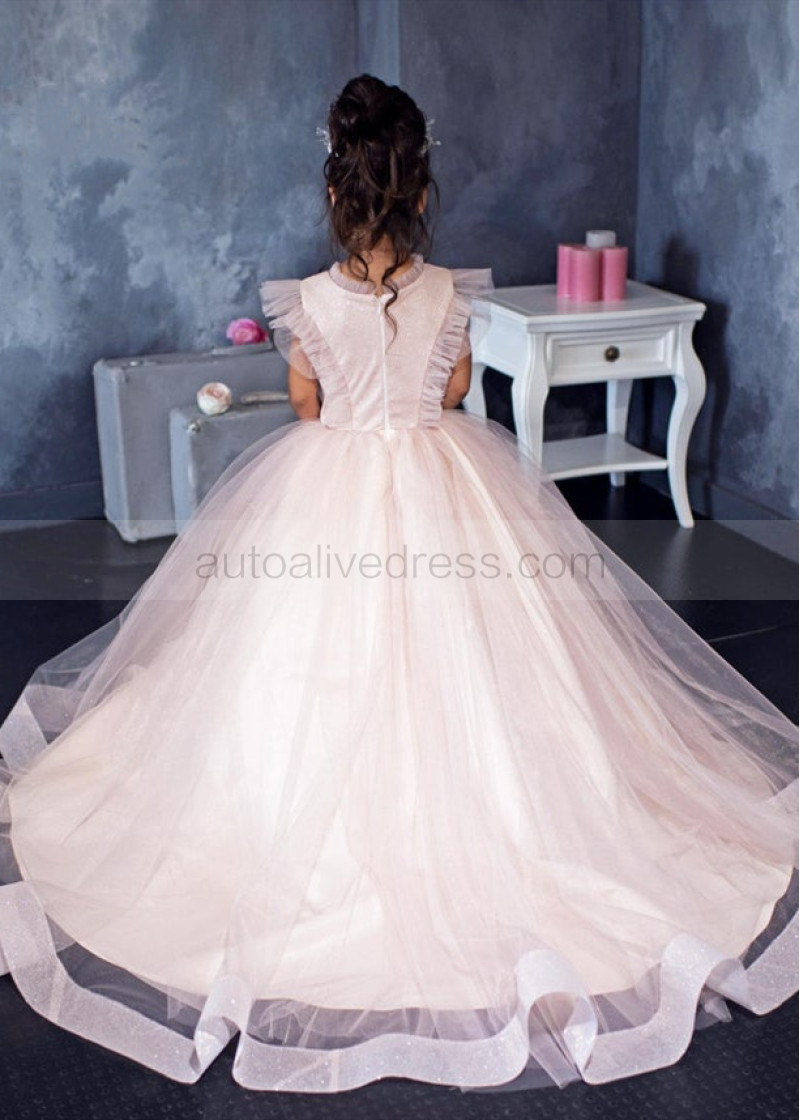 Flutter Sleeves Blush Pink Sparkly Flower Girl Dress