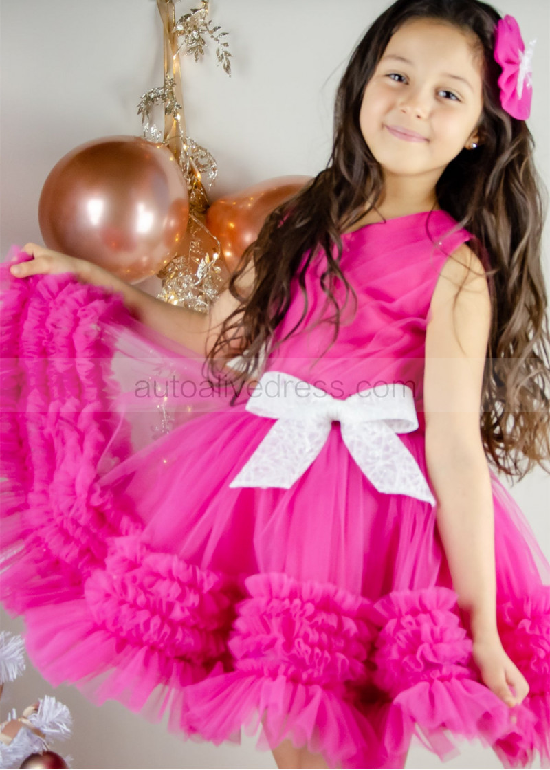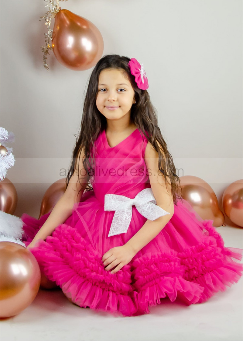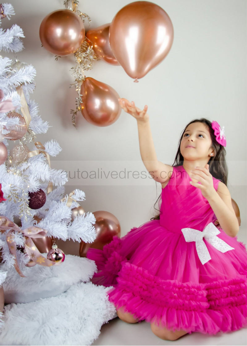 Fuchsia Tulle Pleated Ruffle Flower Girl Dress