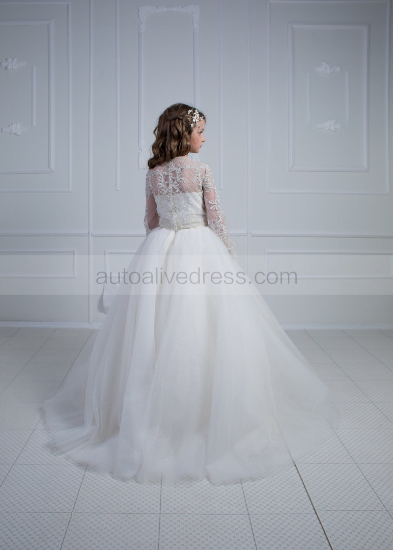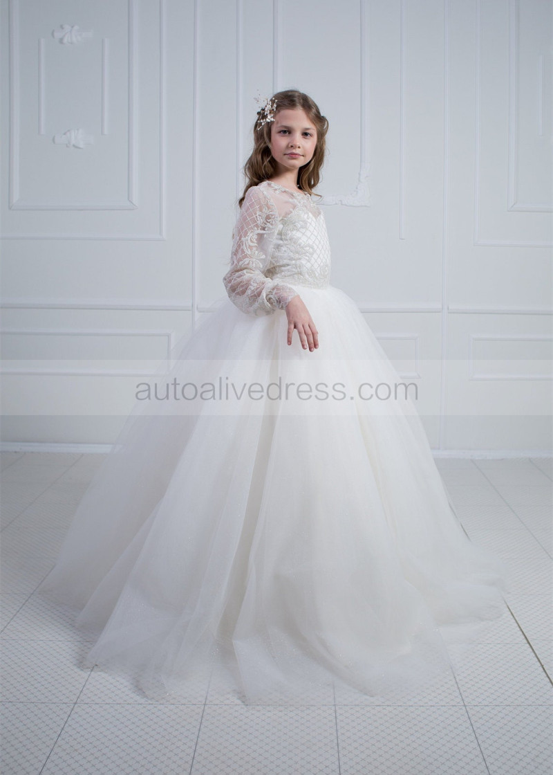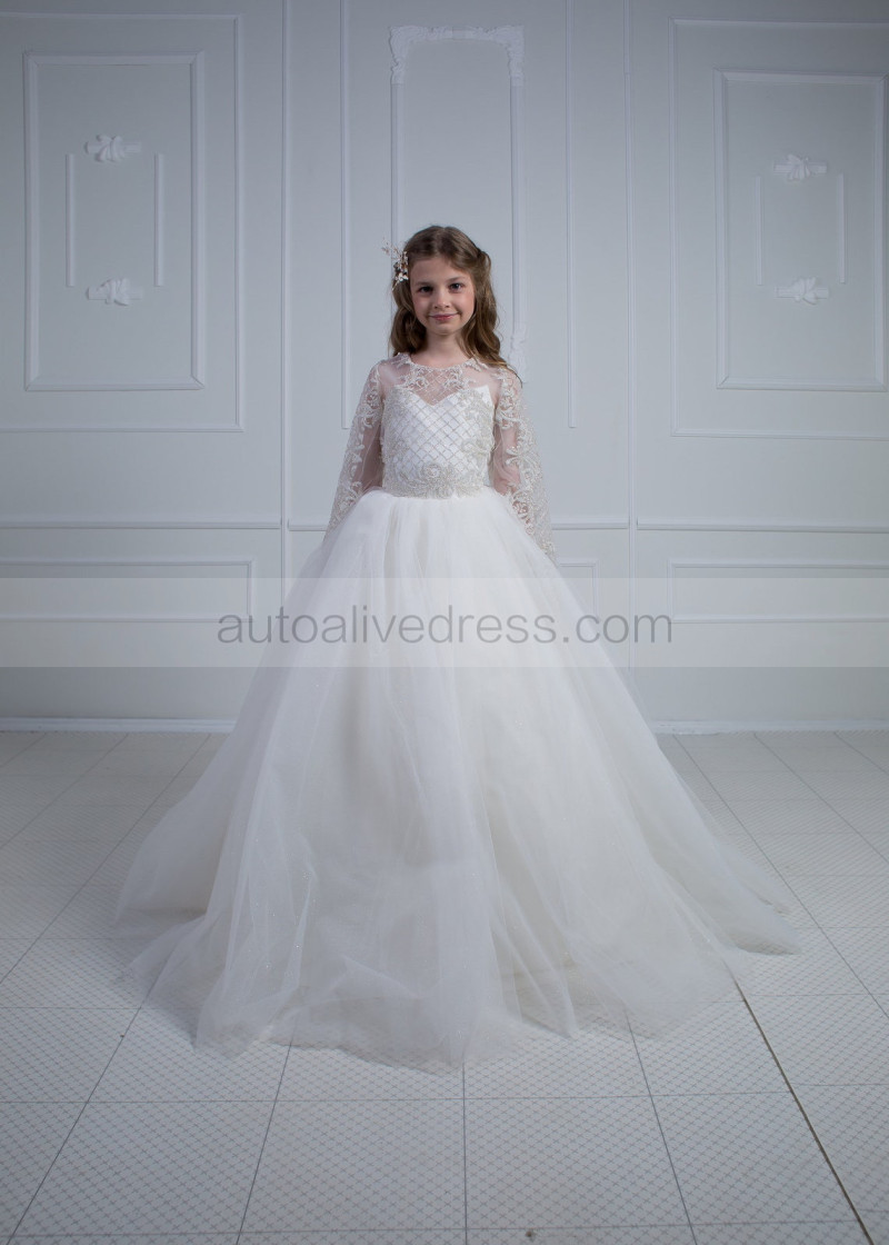 Glitter Lace Tulle Long Fairy Flower Girl Dress