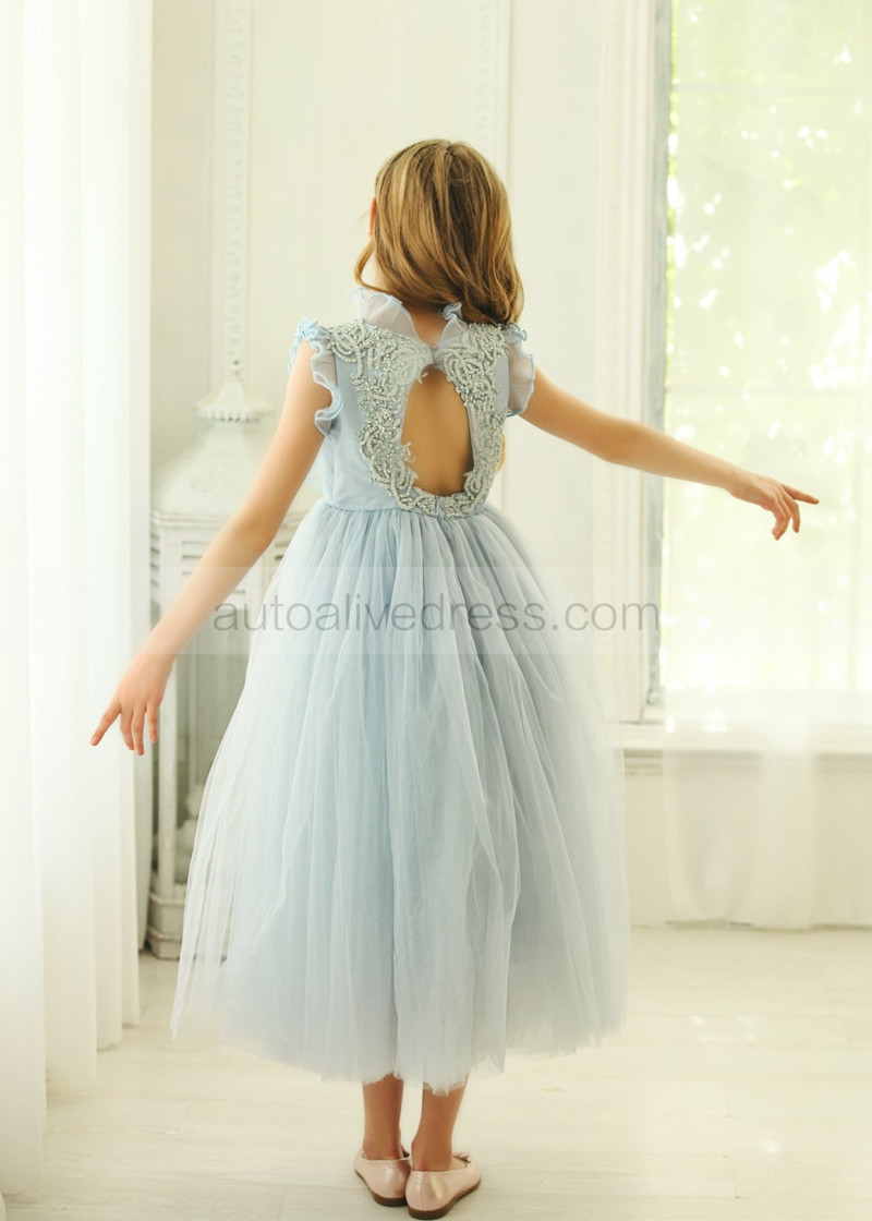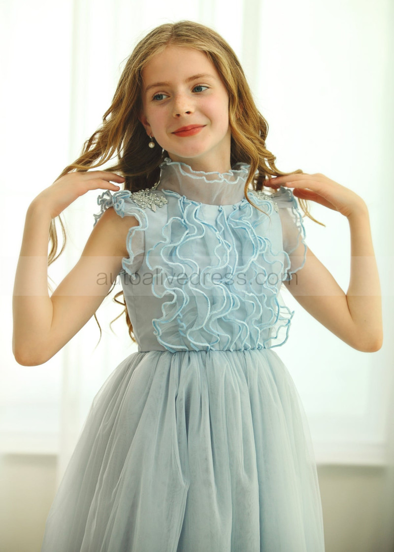 High Collar Baby Blue Ruffle Flower Girl Dress