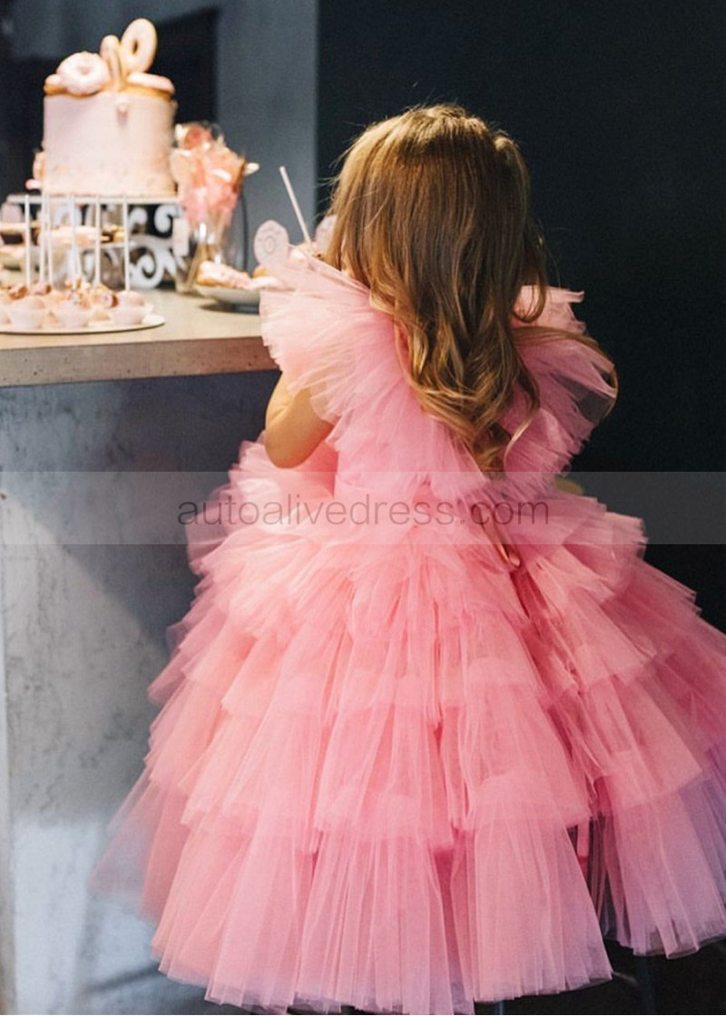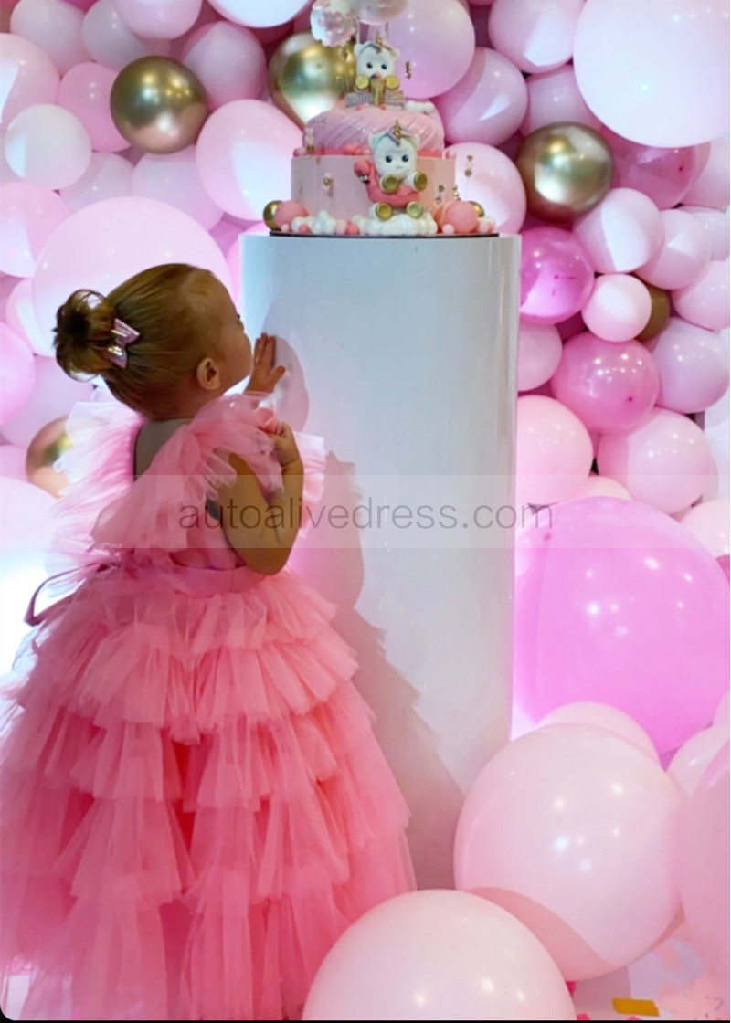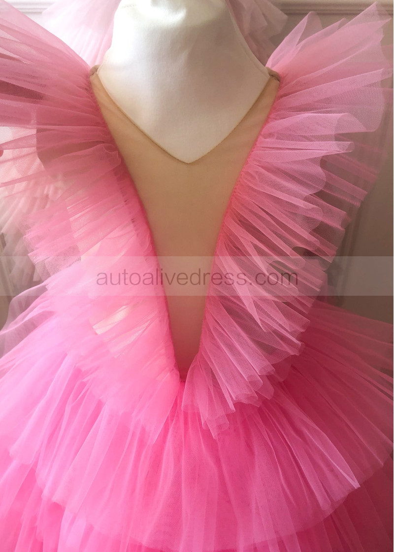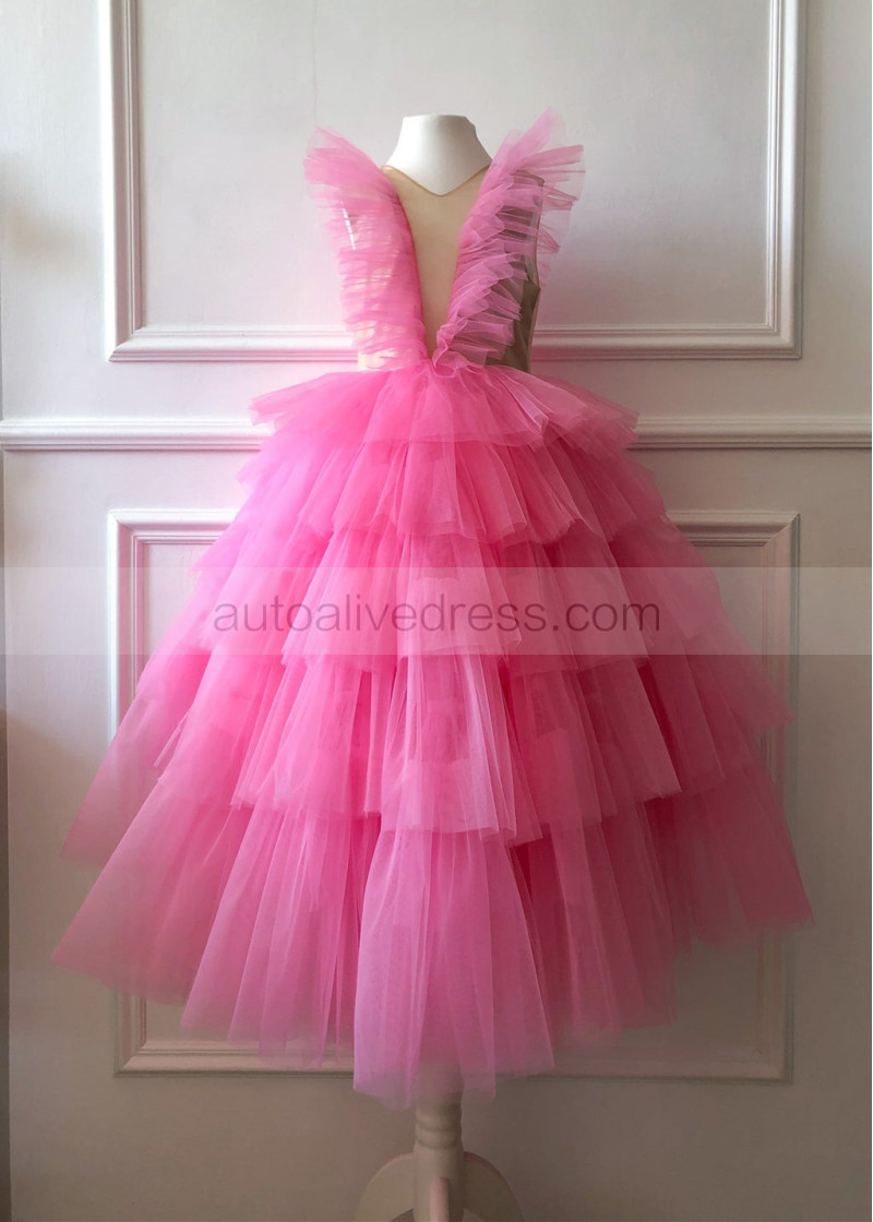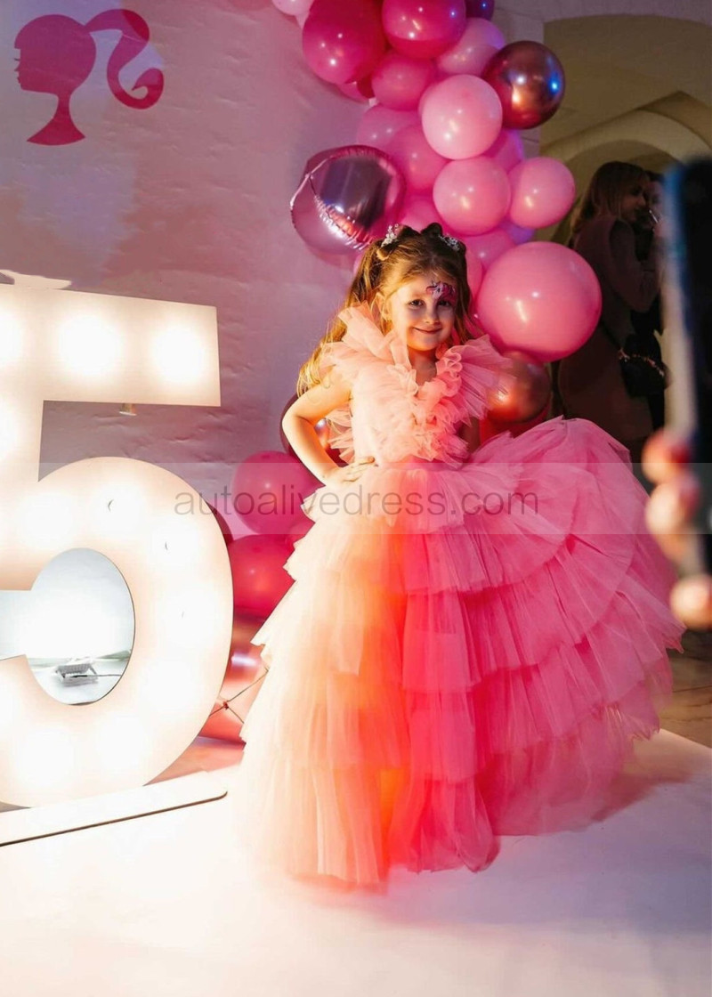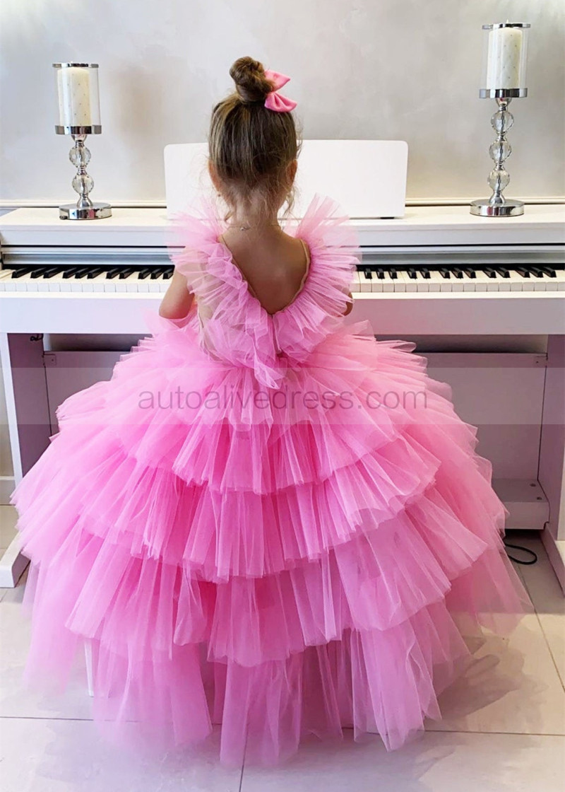 Hot Pink Tulle Tiered Flower Girl Dress
