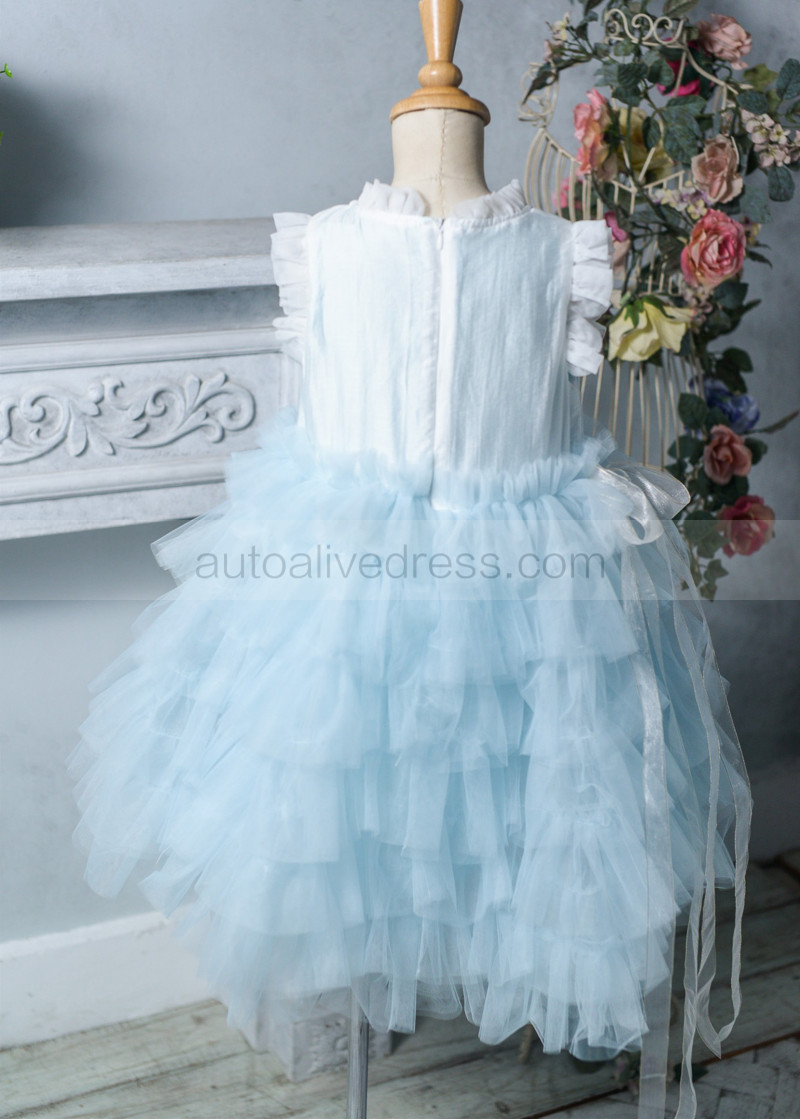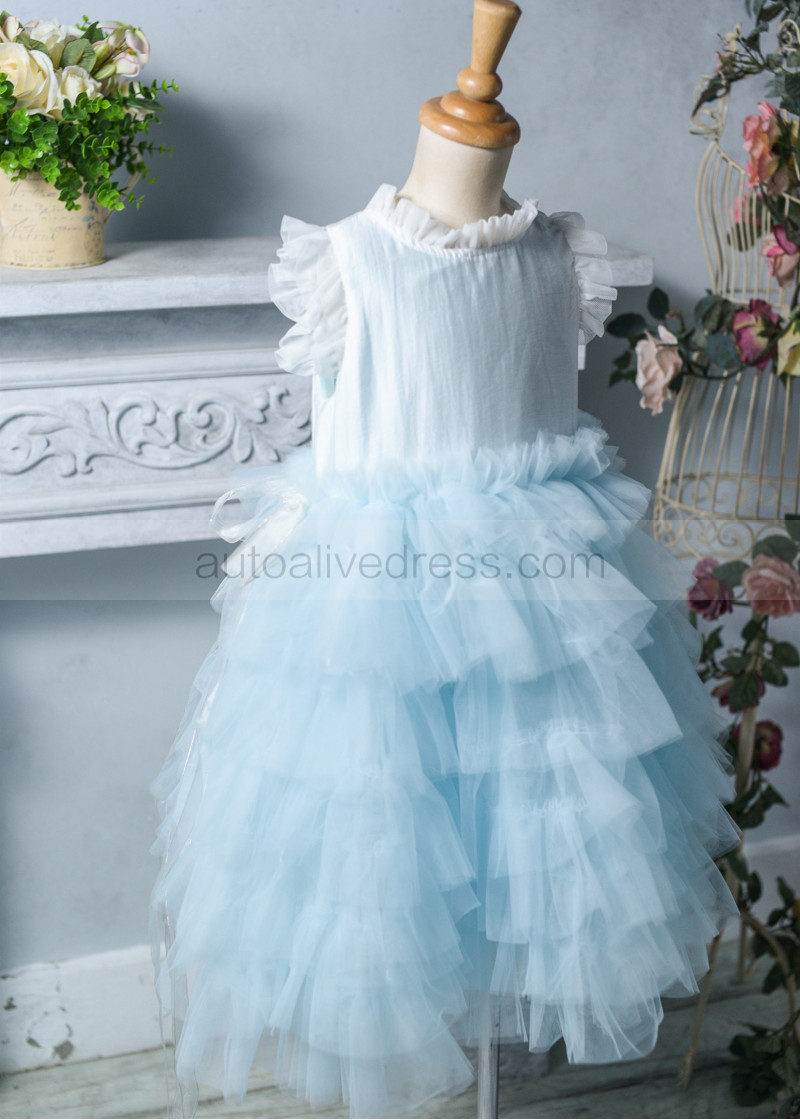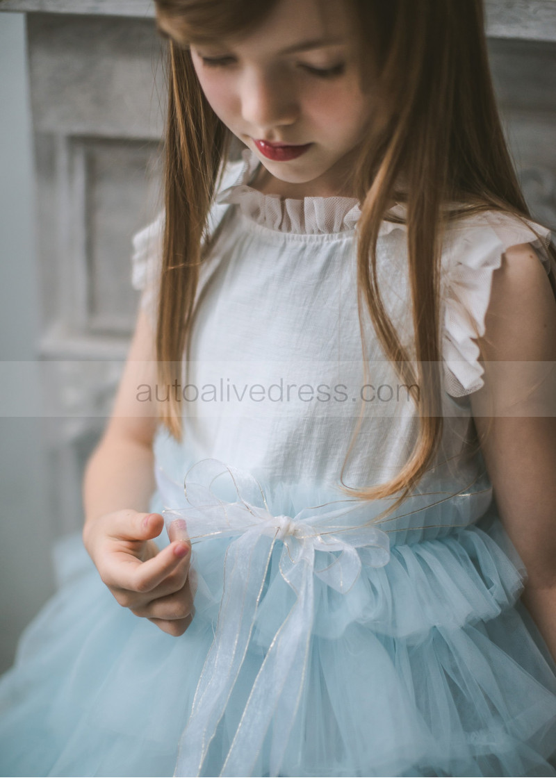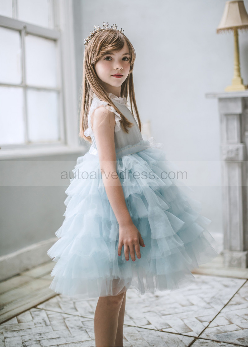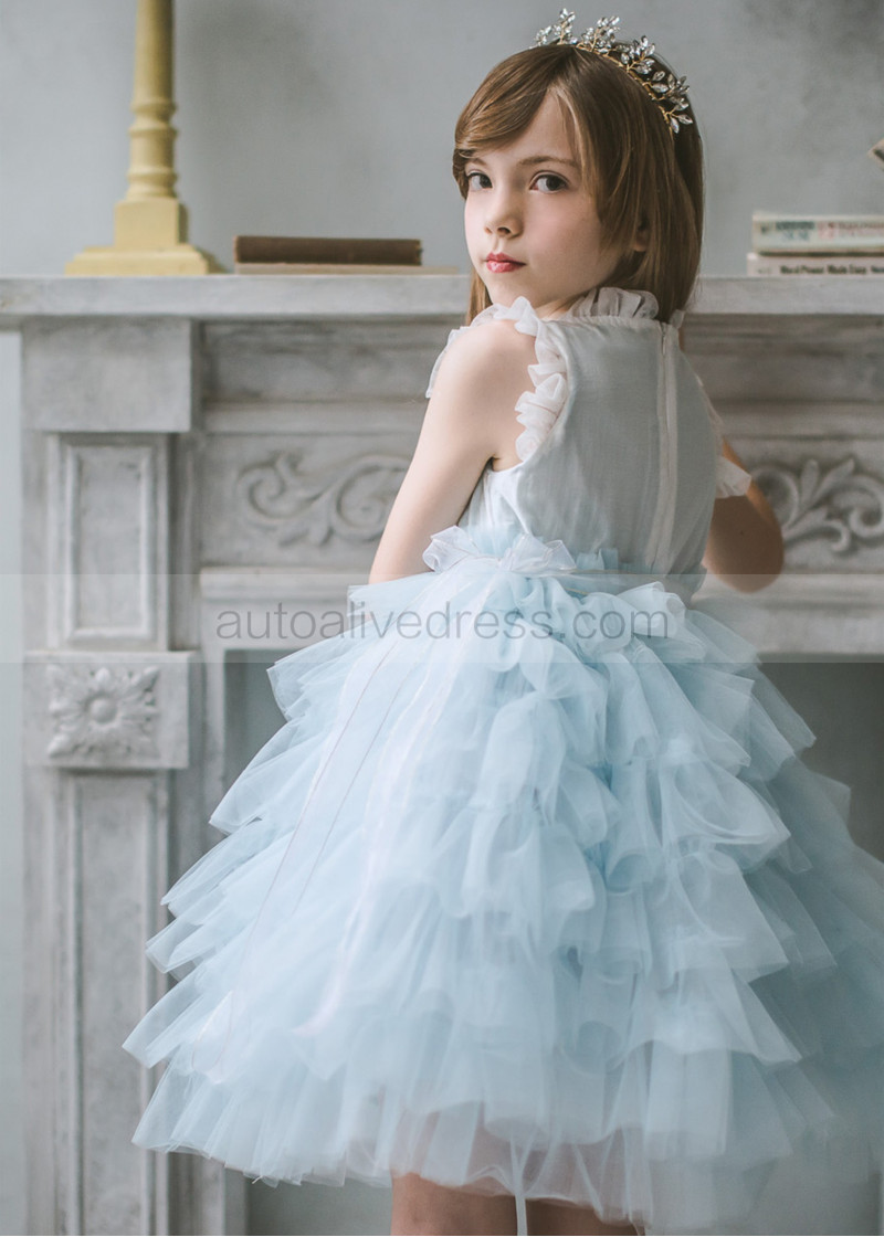 Ice Blue Ruffled Tulle Flower Girl Dress