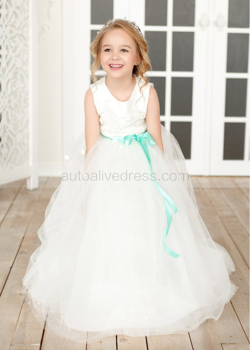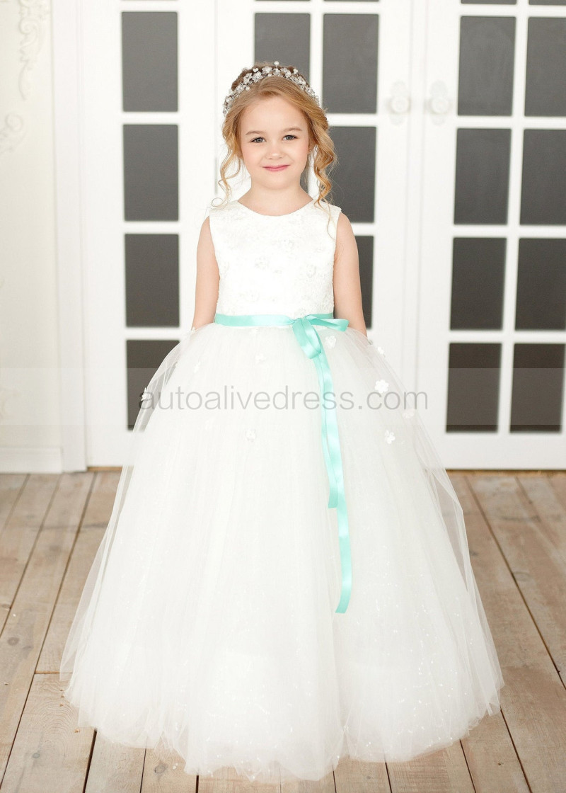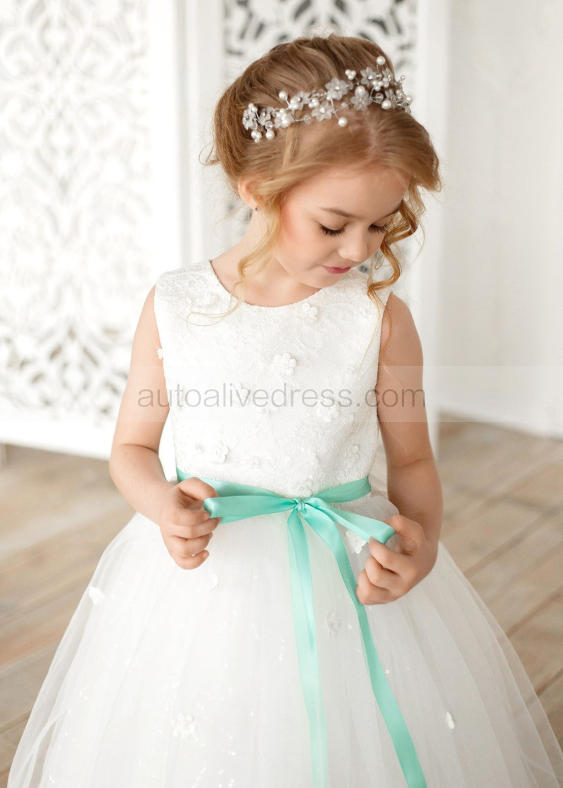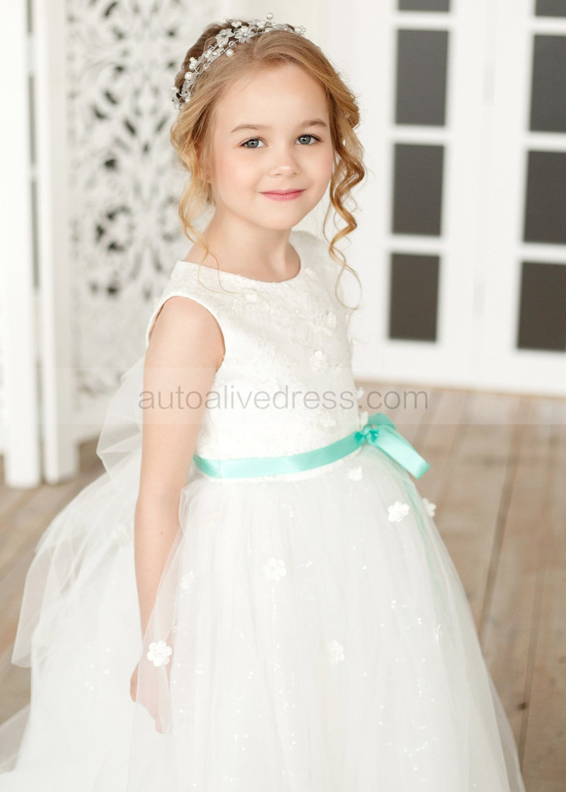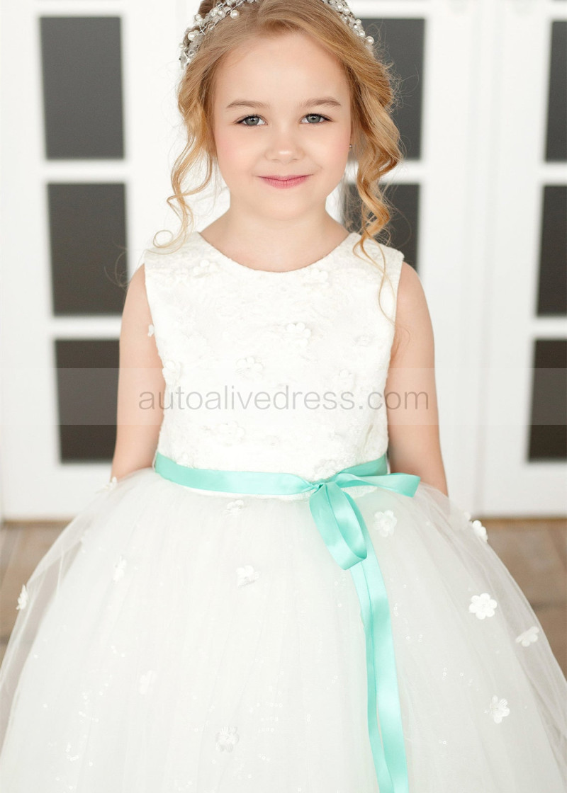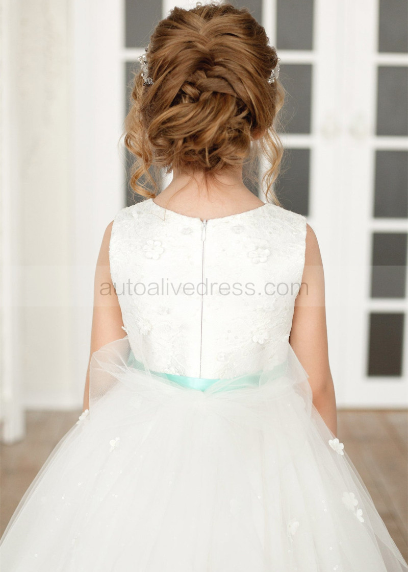 Ivory 3D Flowers Lace Tulle Flower Girl Dress