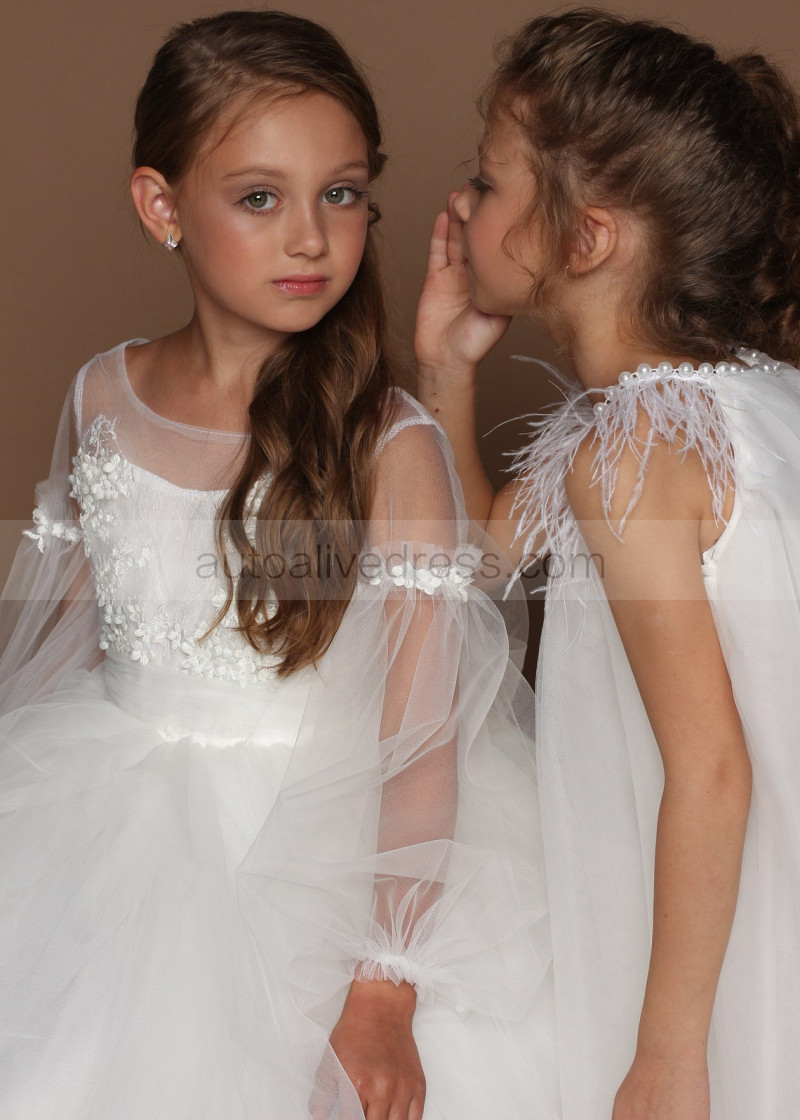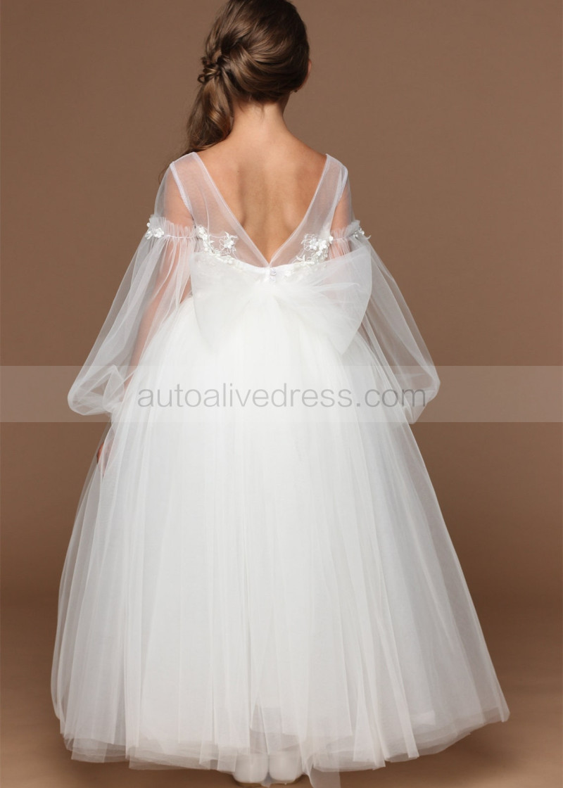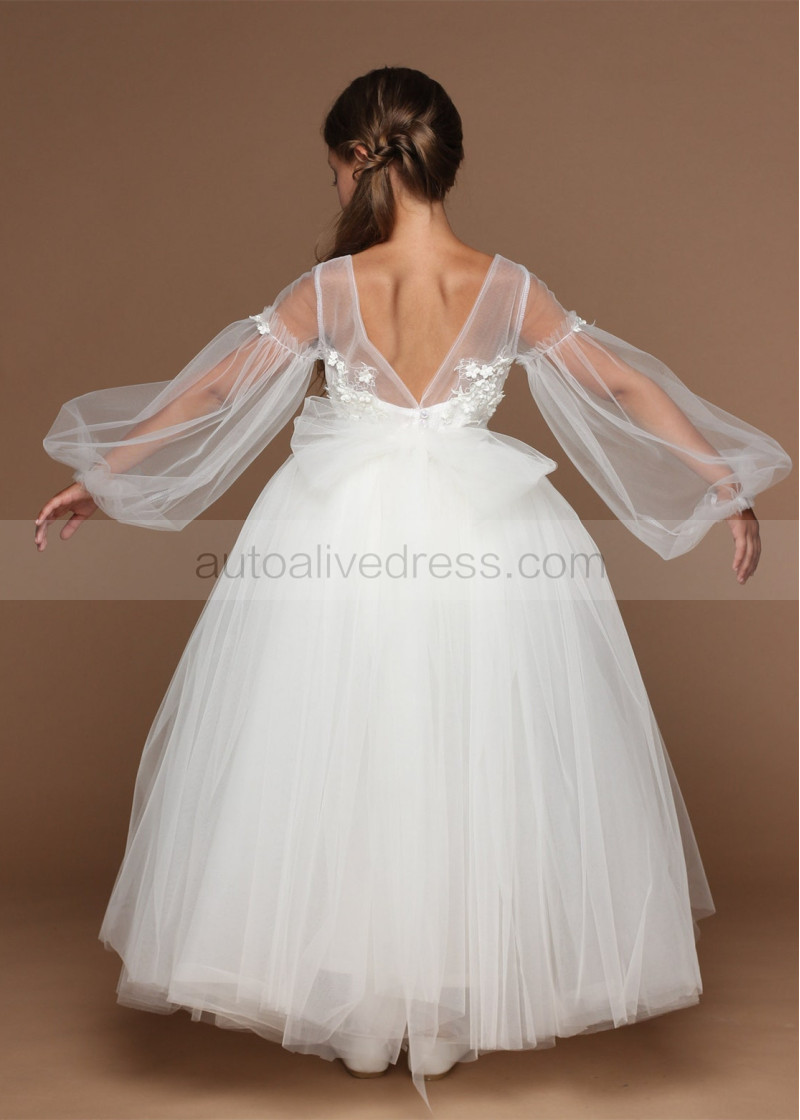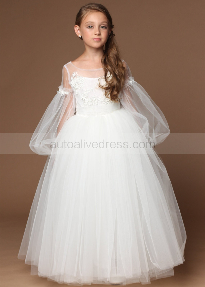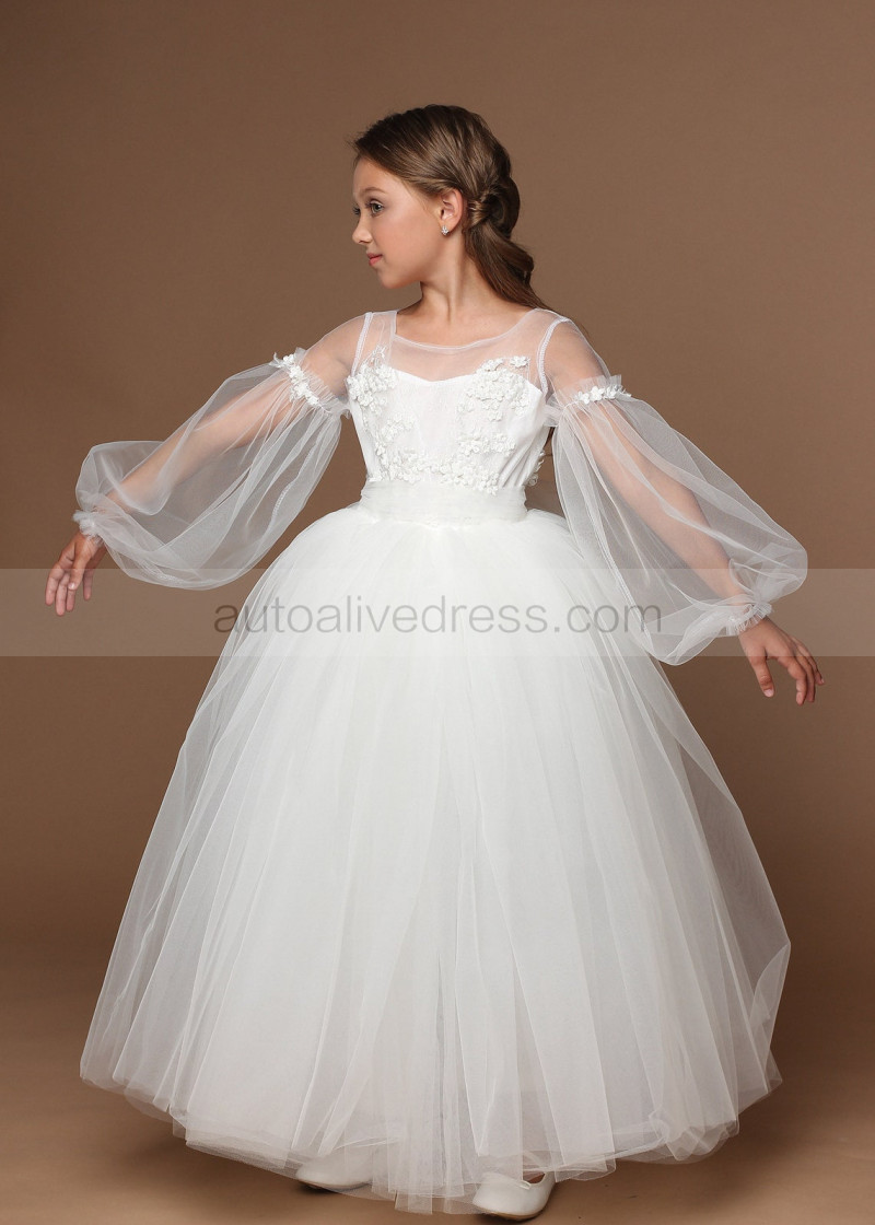 Ivory Fashion Tulle 3D Flowers Flower Girl Dress
