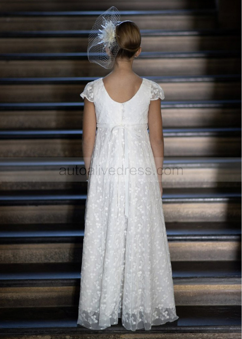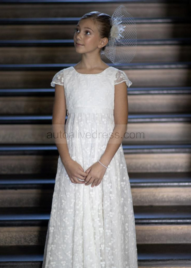 Ivory Floral Lace Floor Length Flower Girl Dress