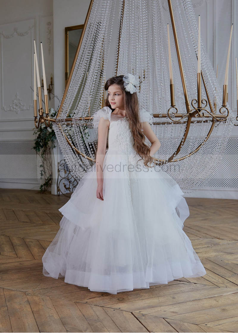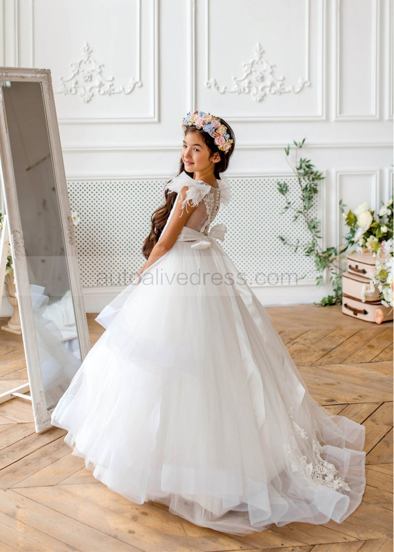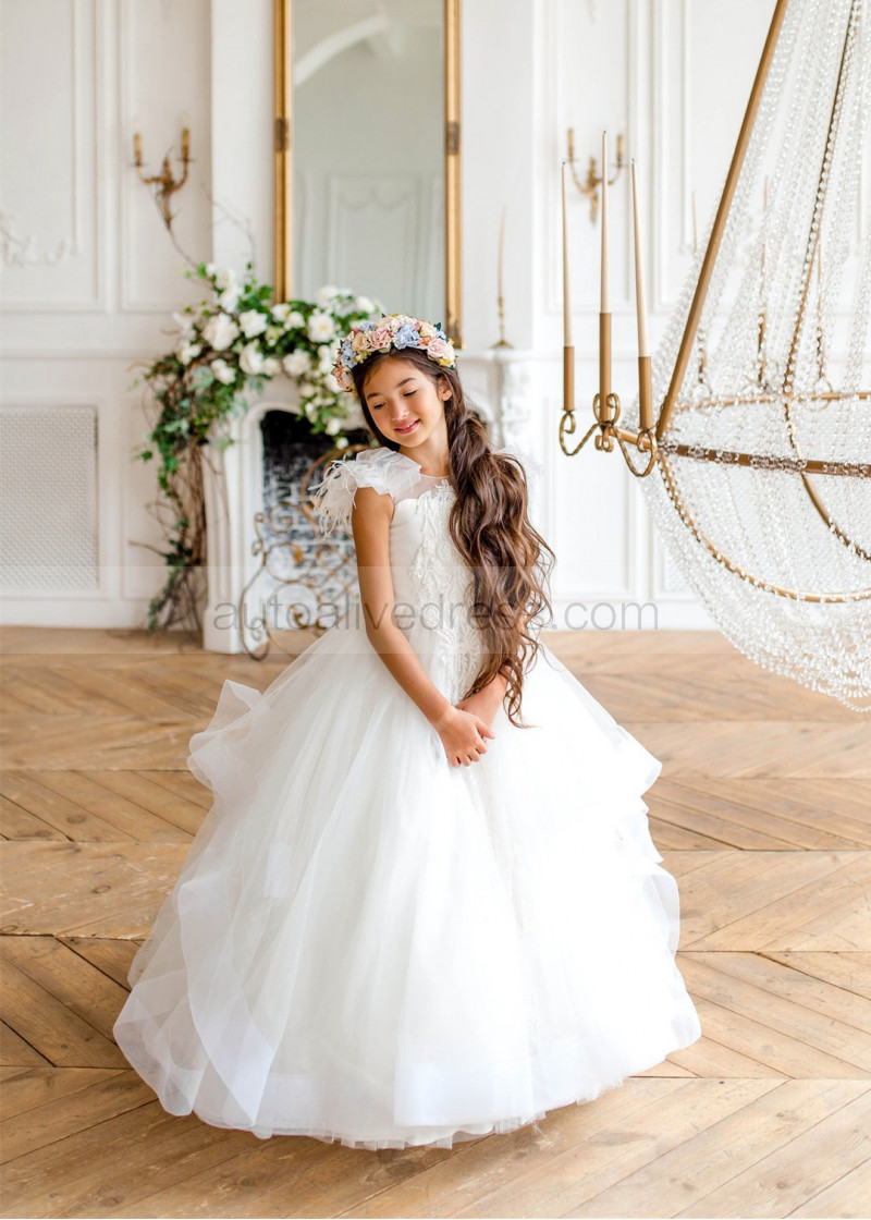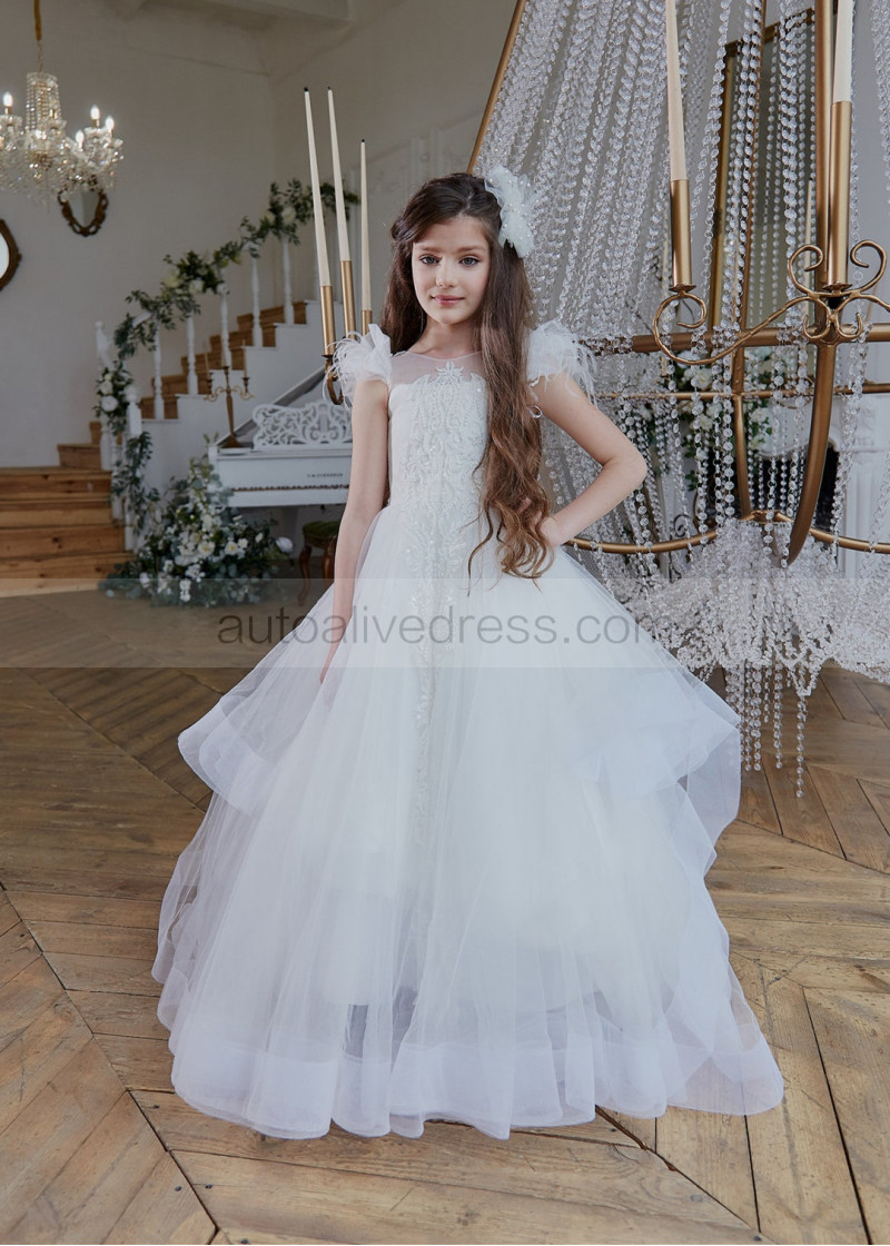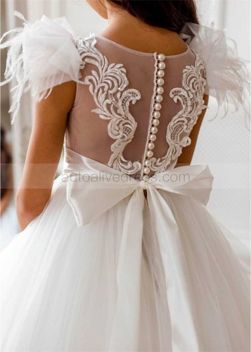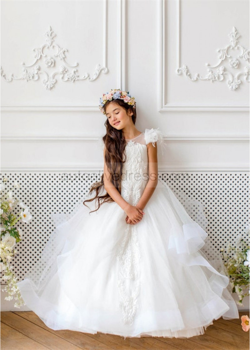 Ivory Lace Appliques Tulle Graceful Flower Girl Dress