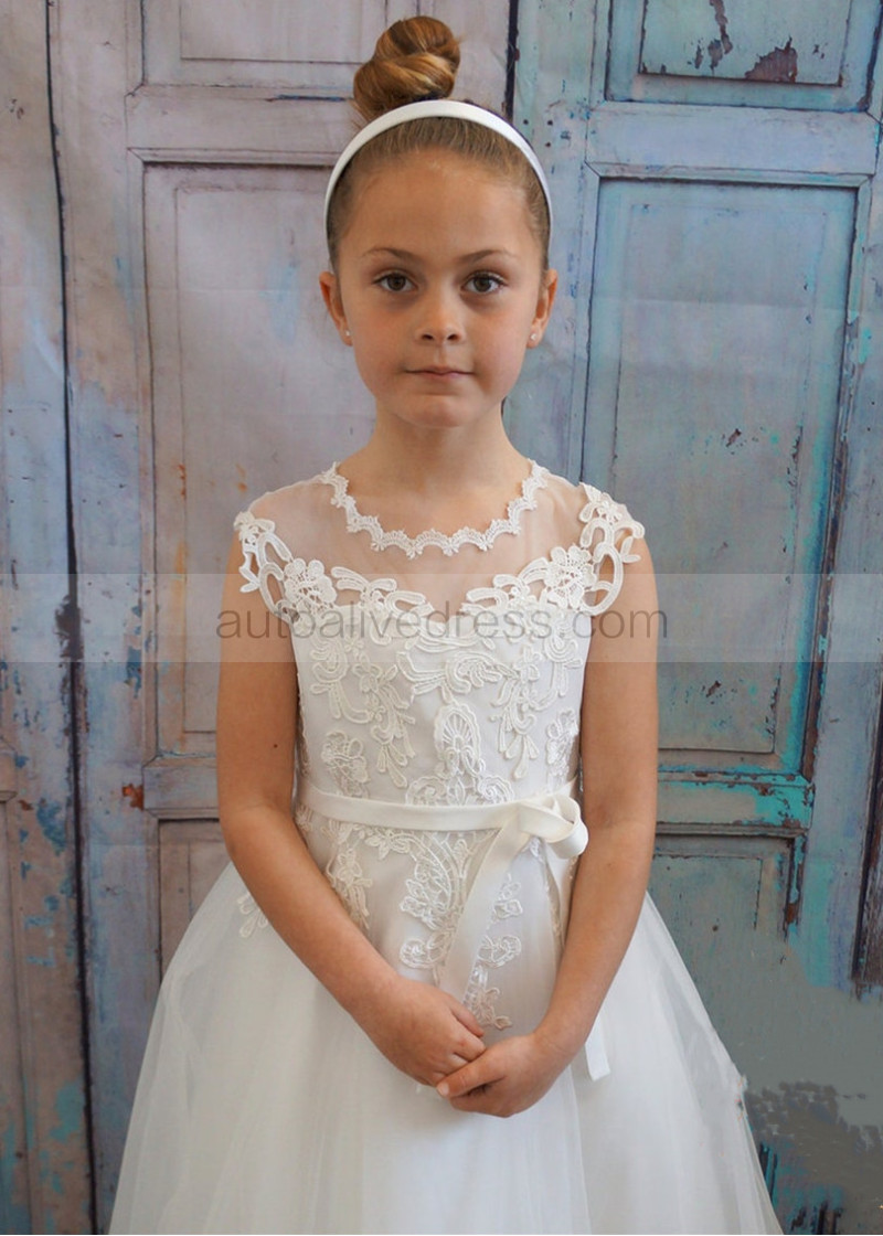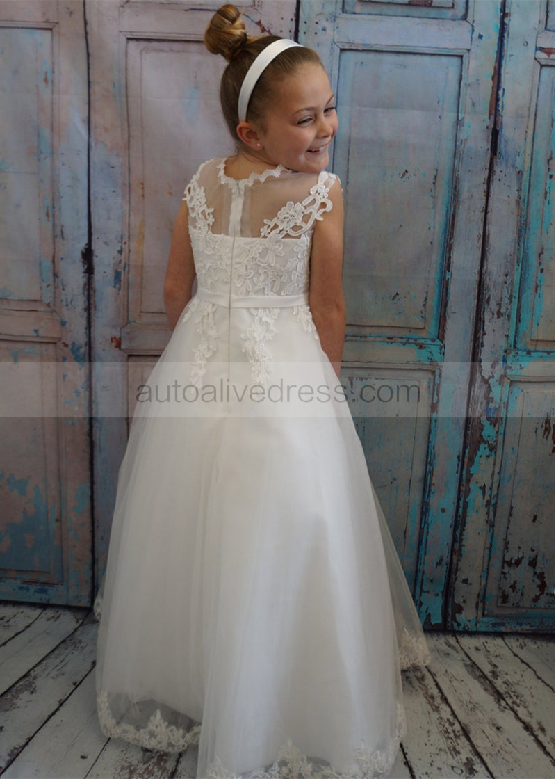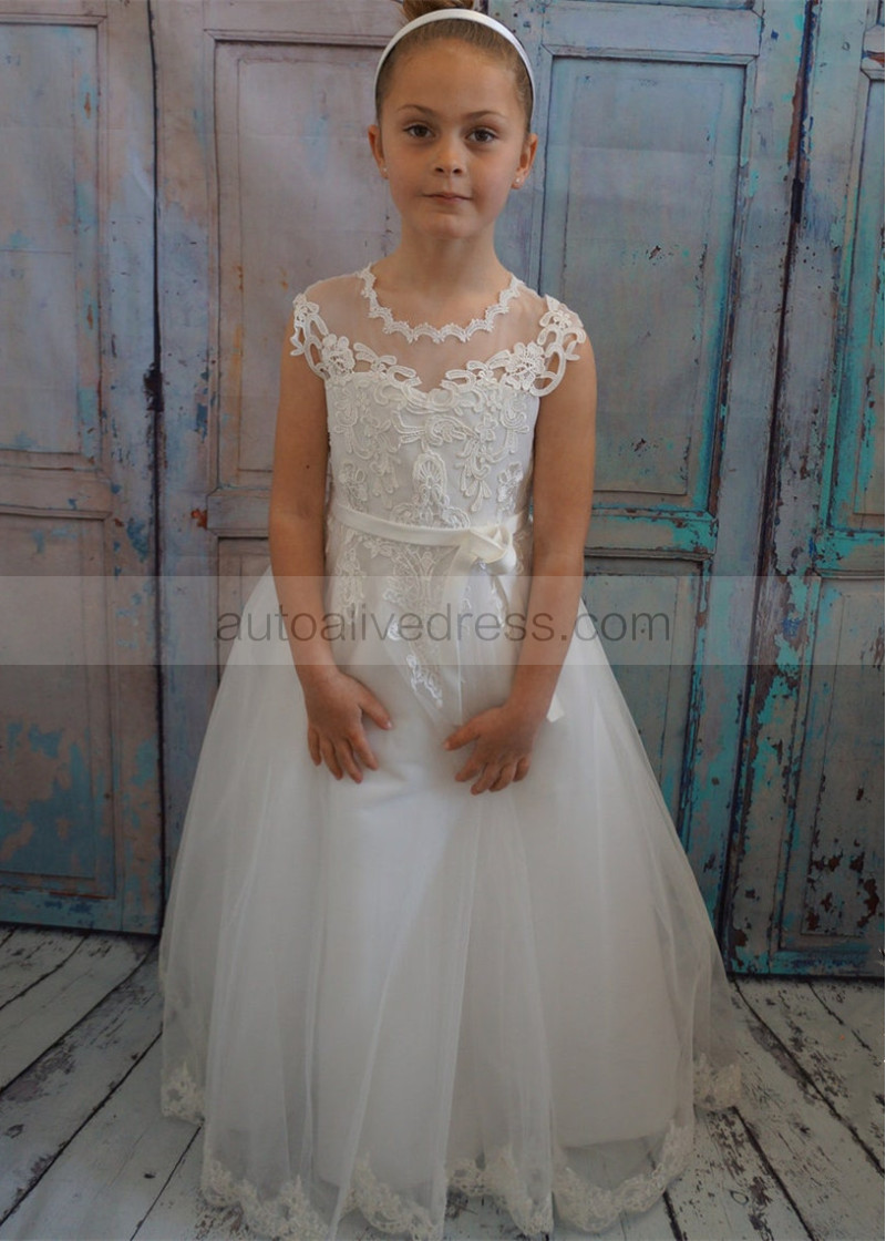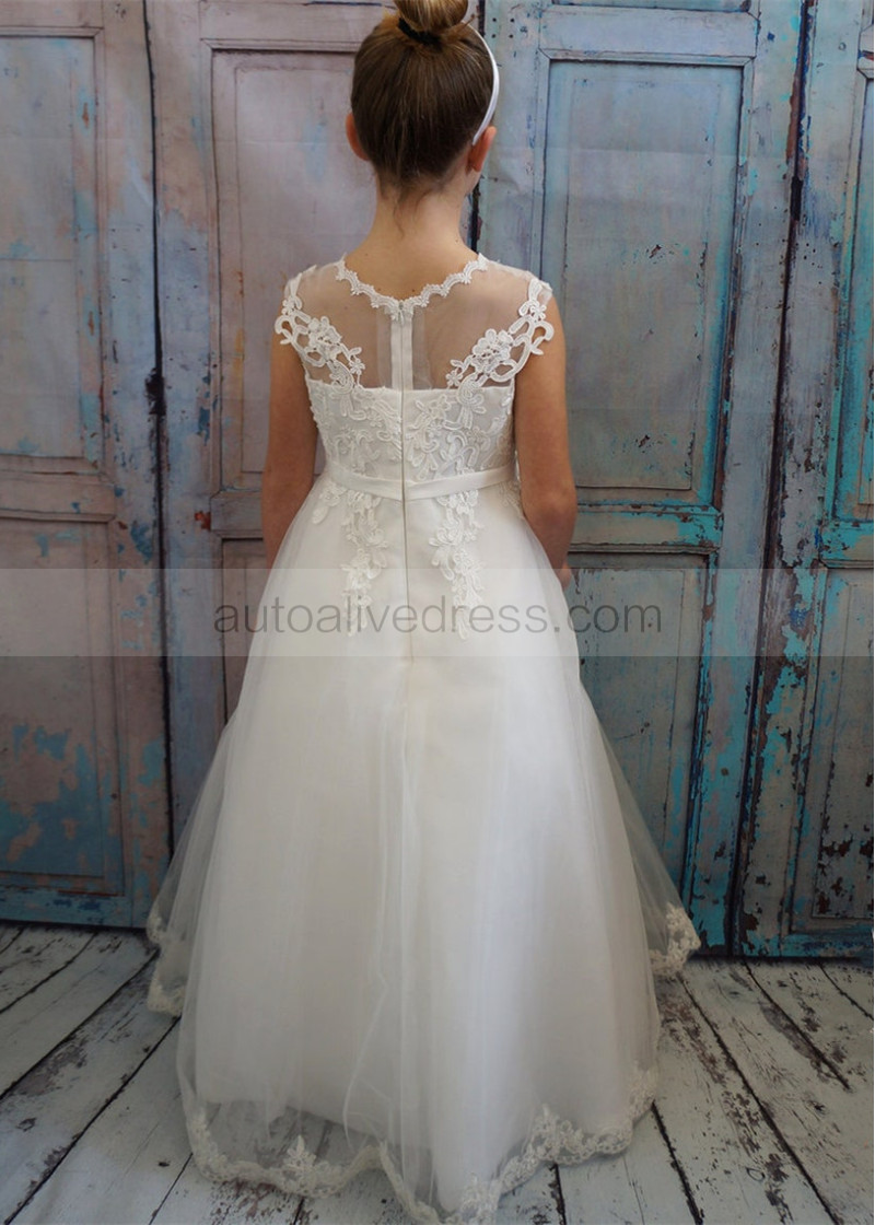 Ivory Lace Gorgeous Long Flower Girl Dress