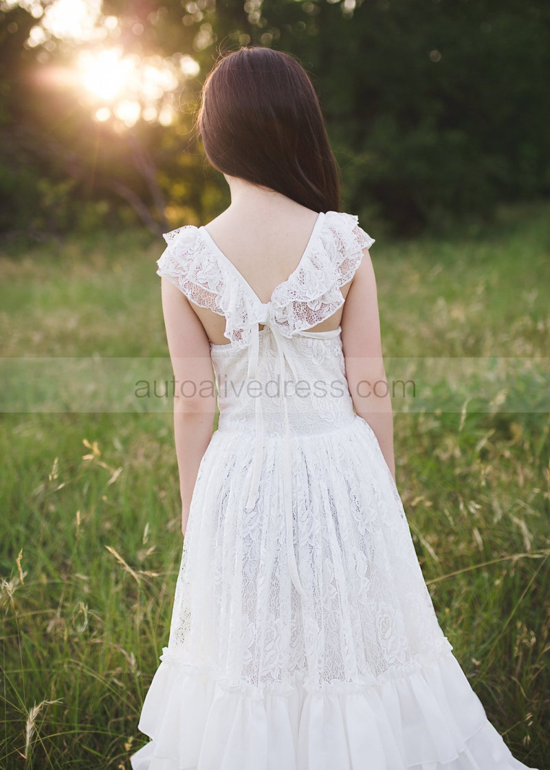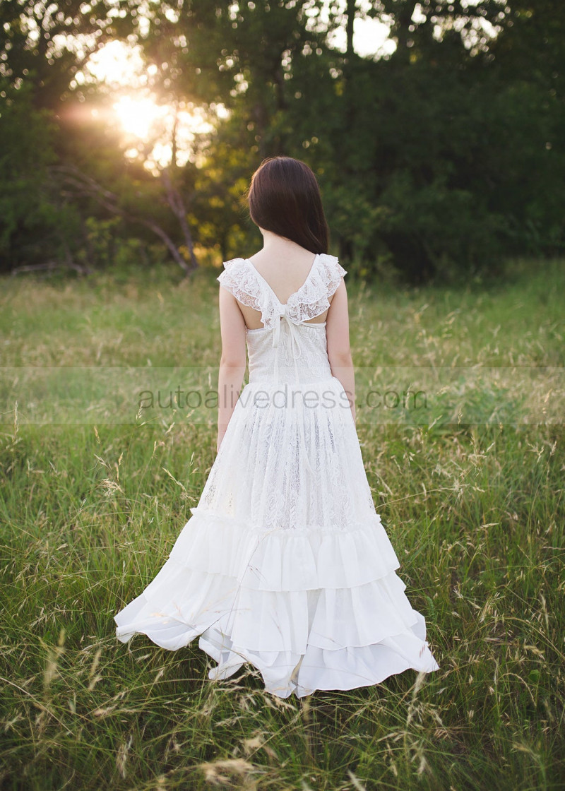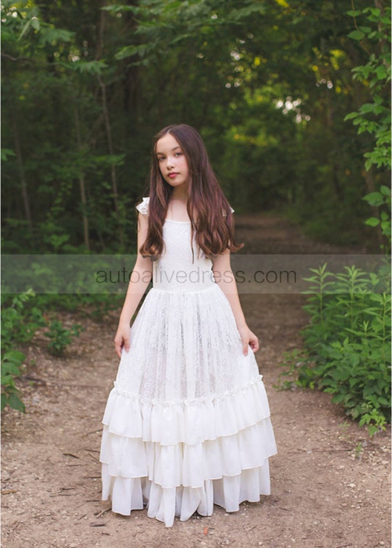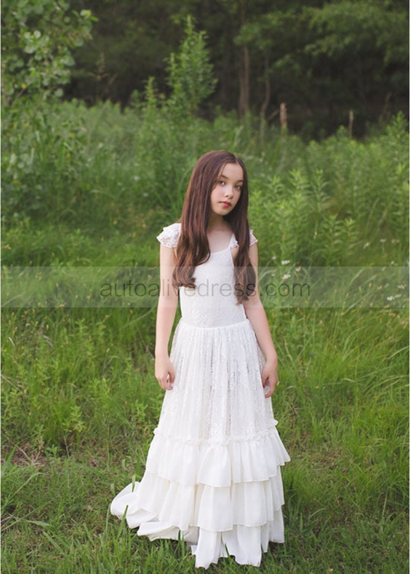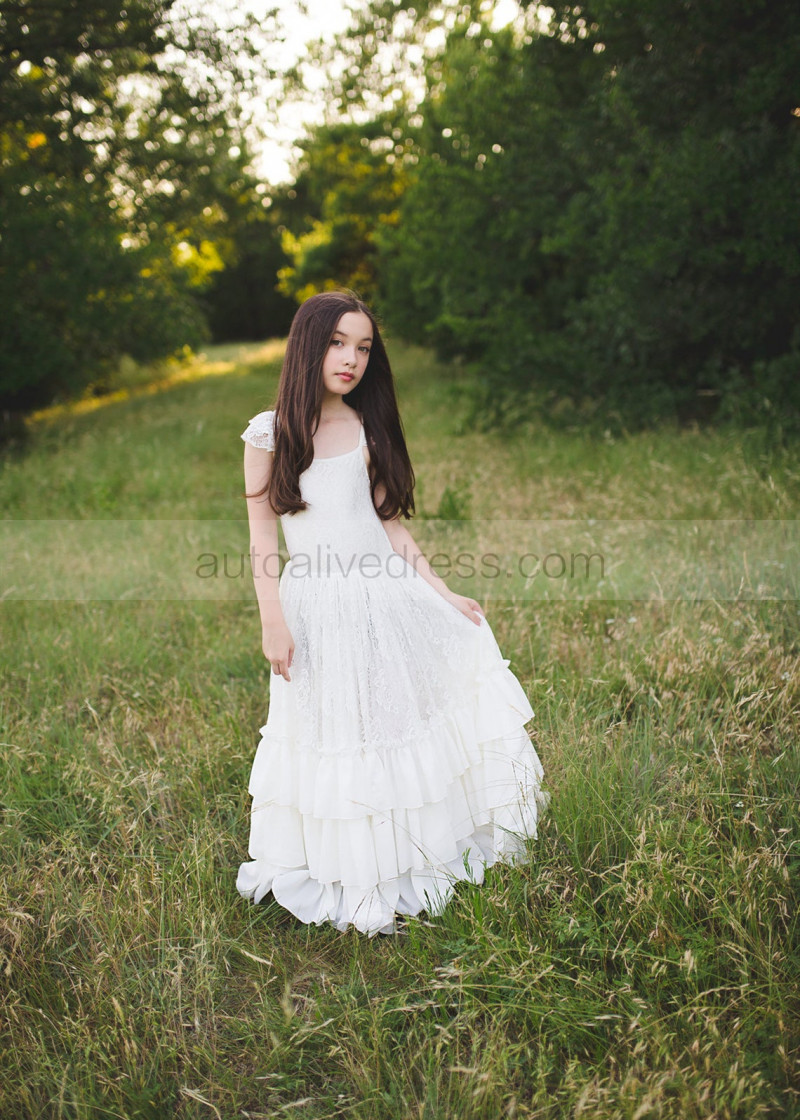 Ivory Lace Ruffle Tiered Country Flower Girl Dress