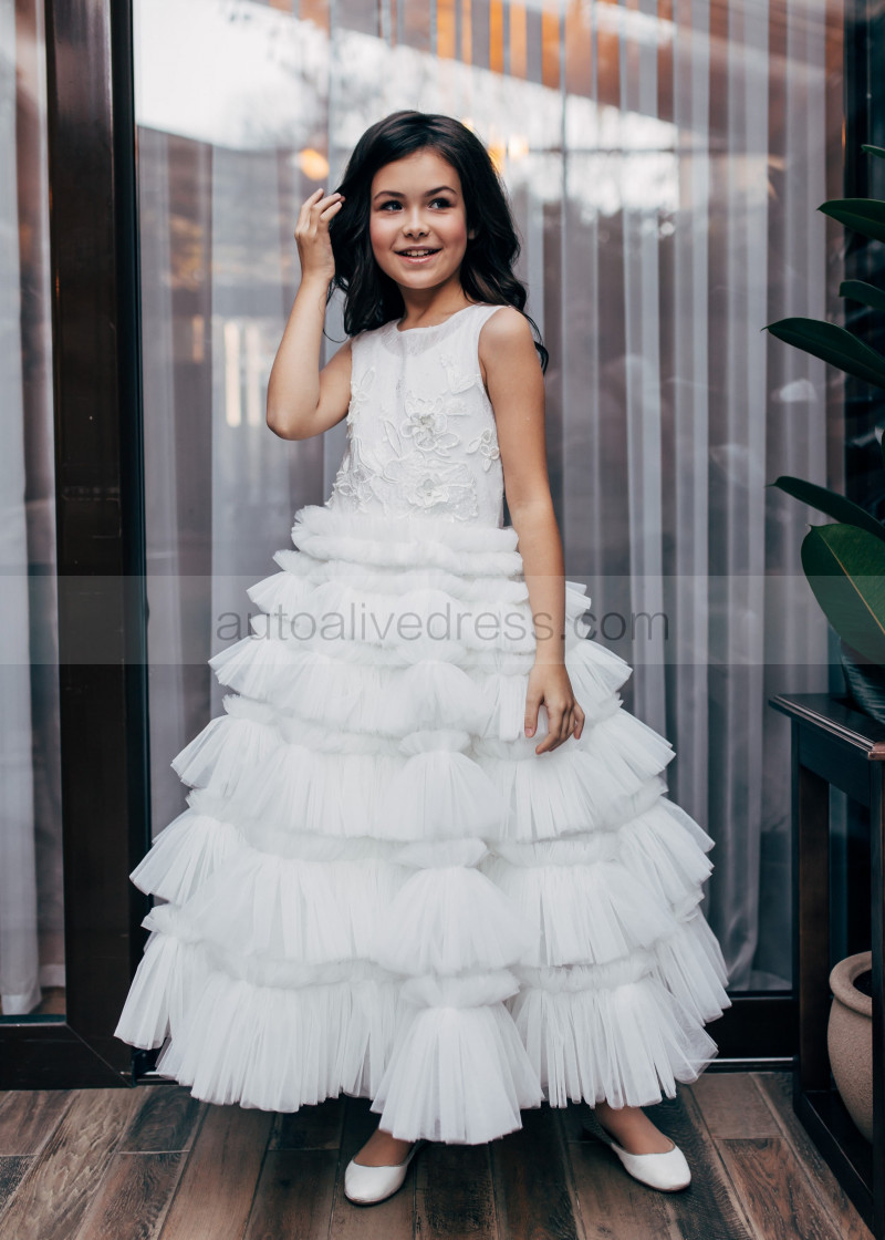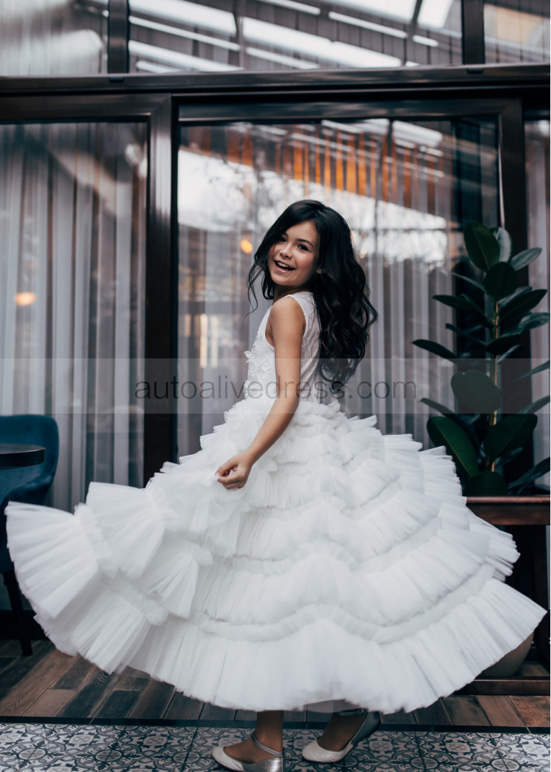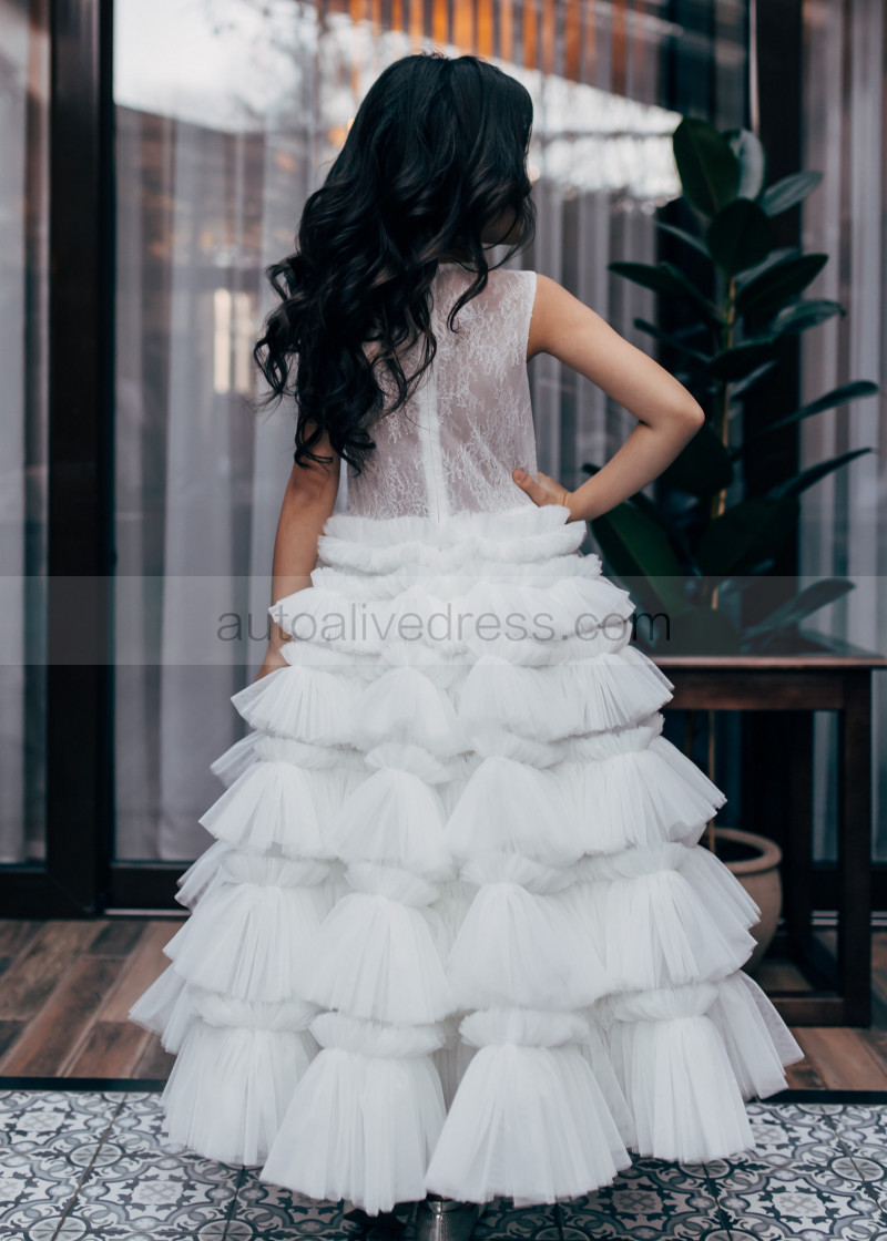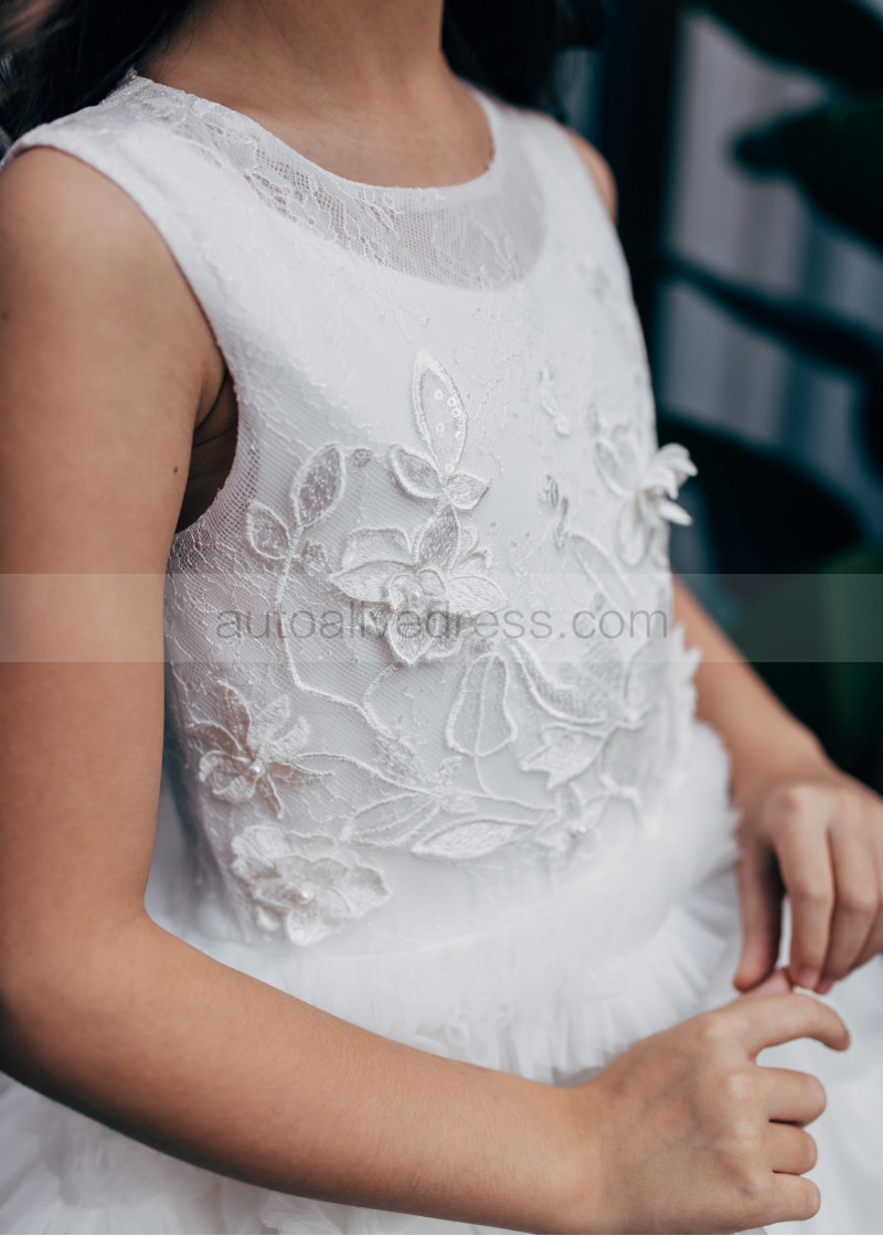 Ivory Lace Ruffled Tulle Illusion Back Flower Girl Dress