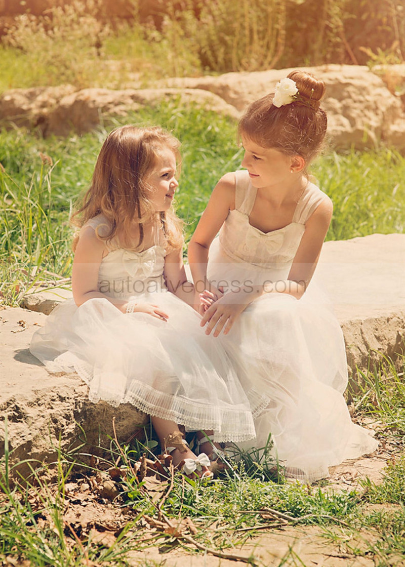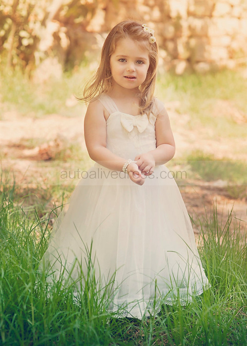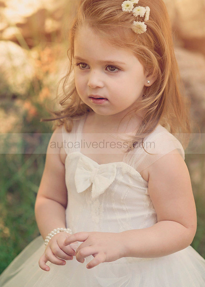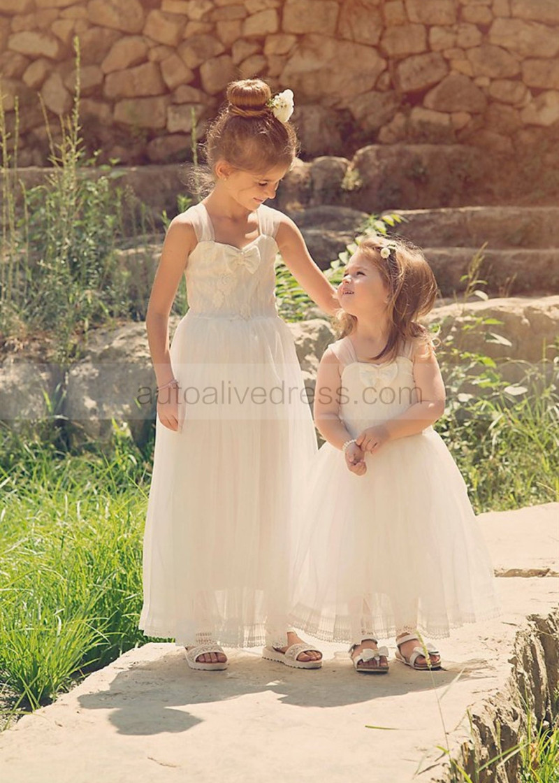 Ivory Lace Tulle Ankle Length Vintage Flower Girl Dress