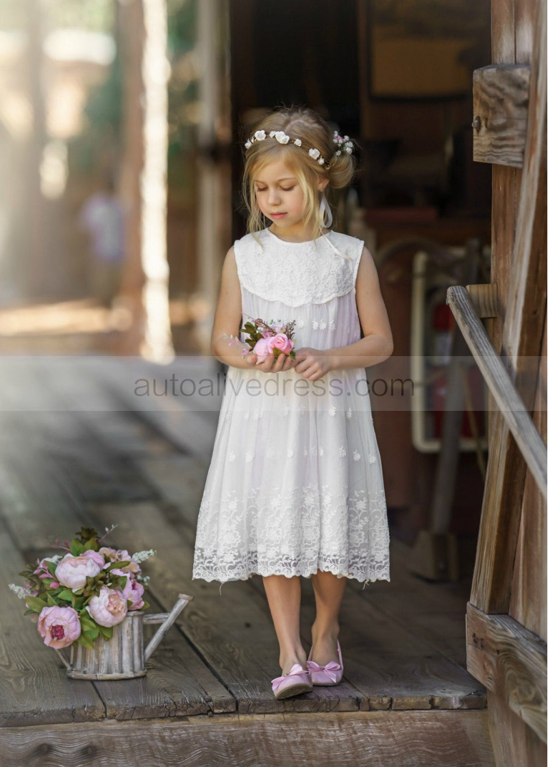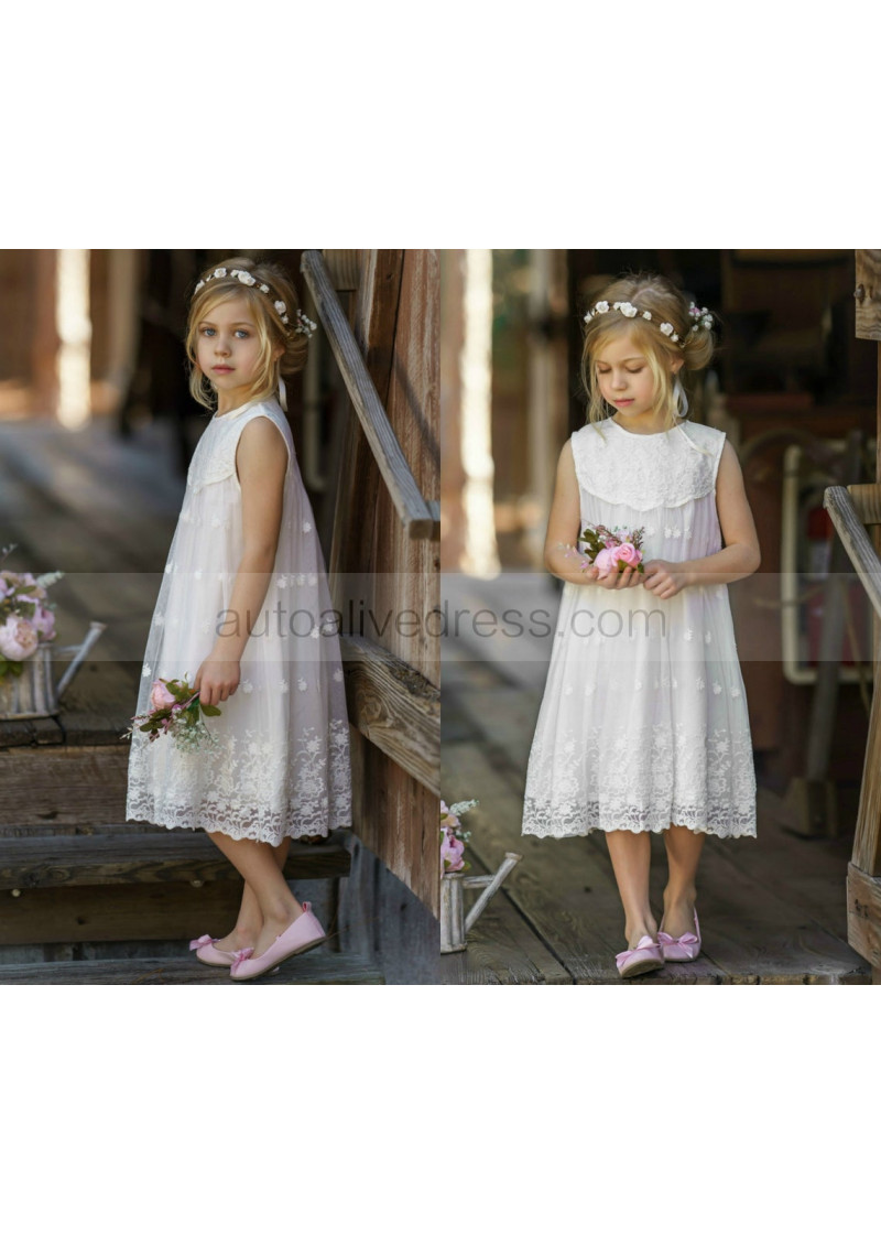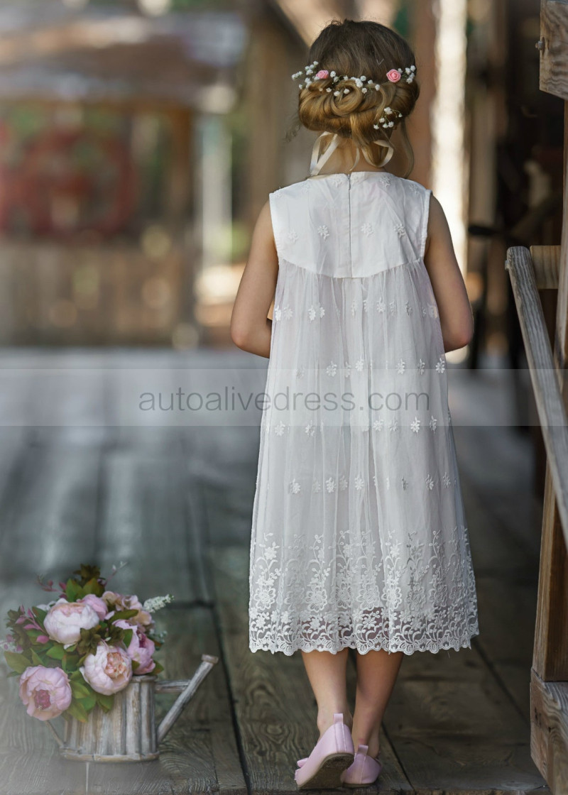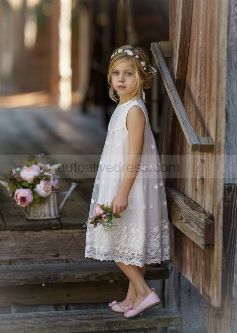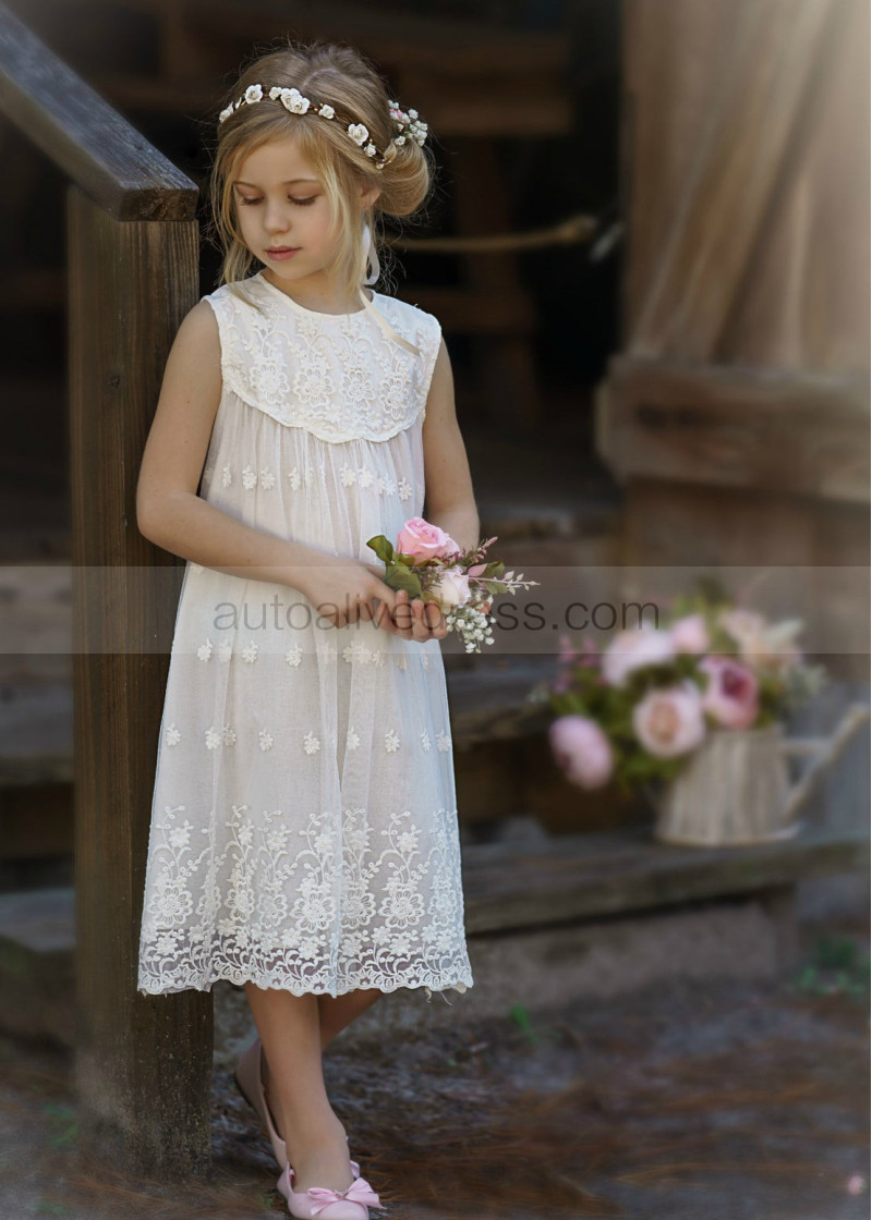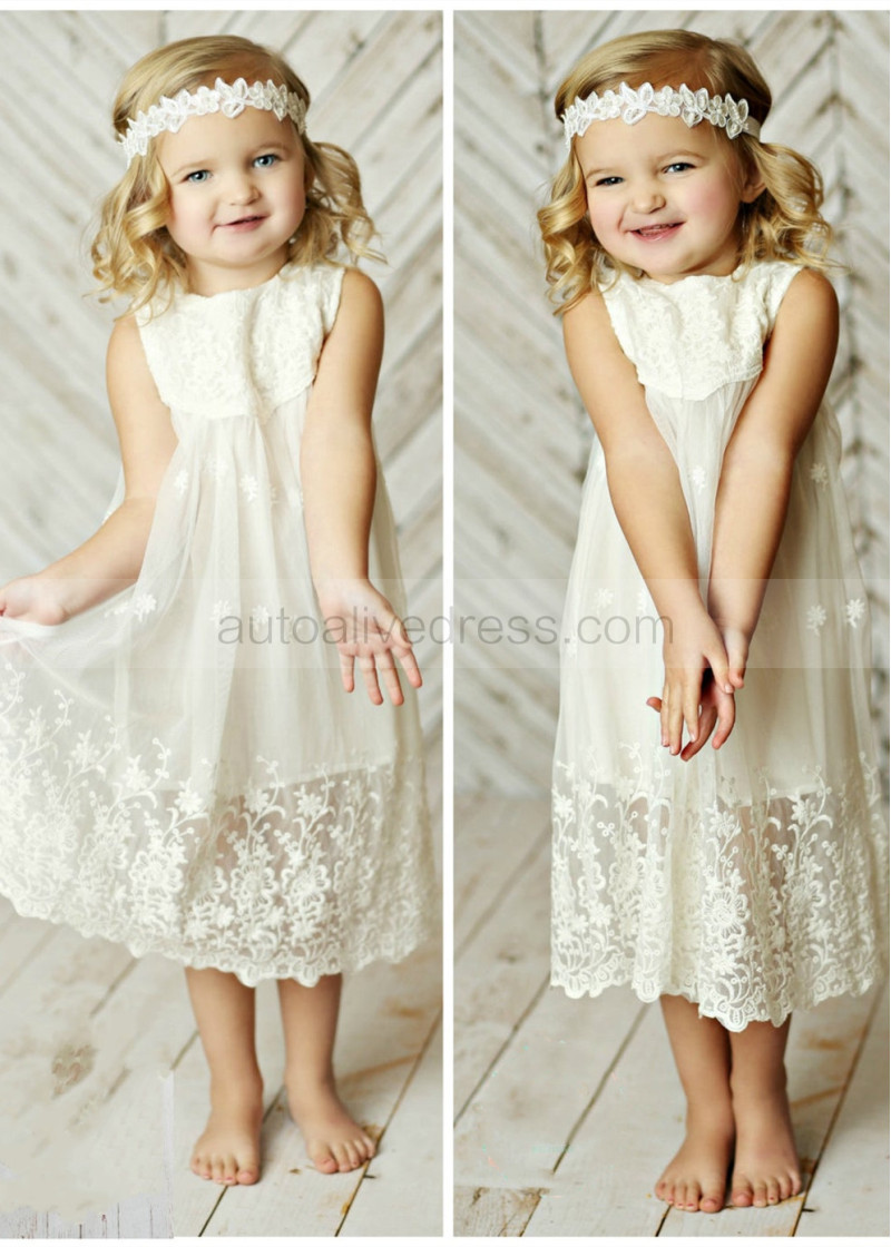 Ivory Lace Tulle Baby Boho Beach Airy Flower Girl Dress