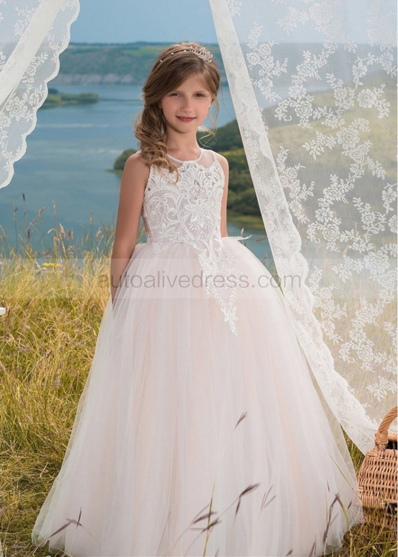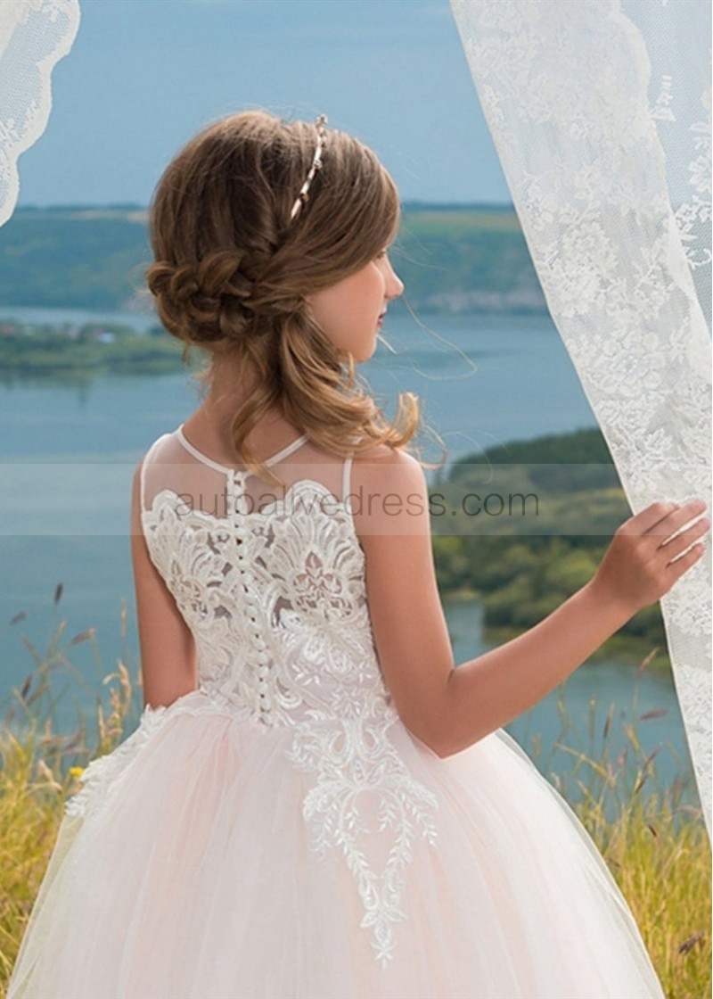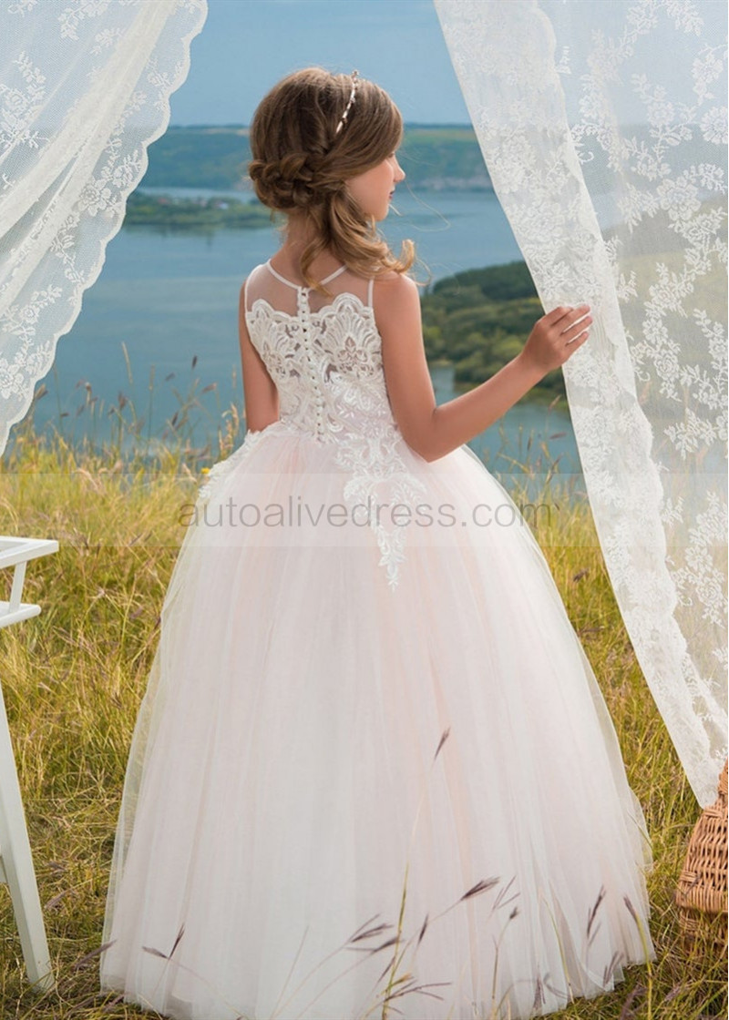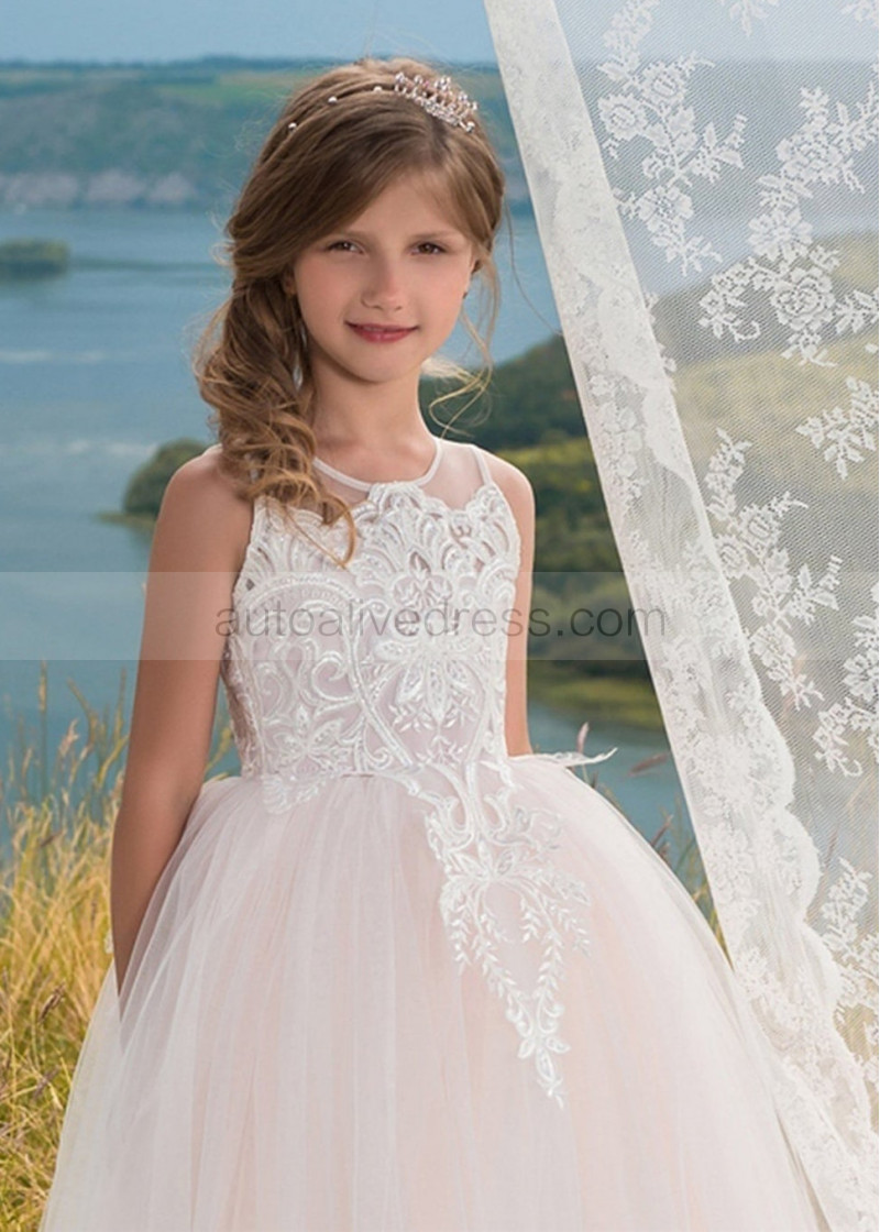 Ivory Lace Tulle Button Back Flower Girl Dress