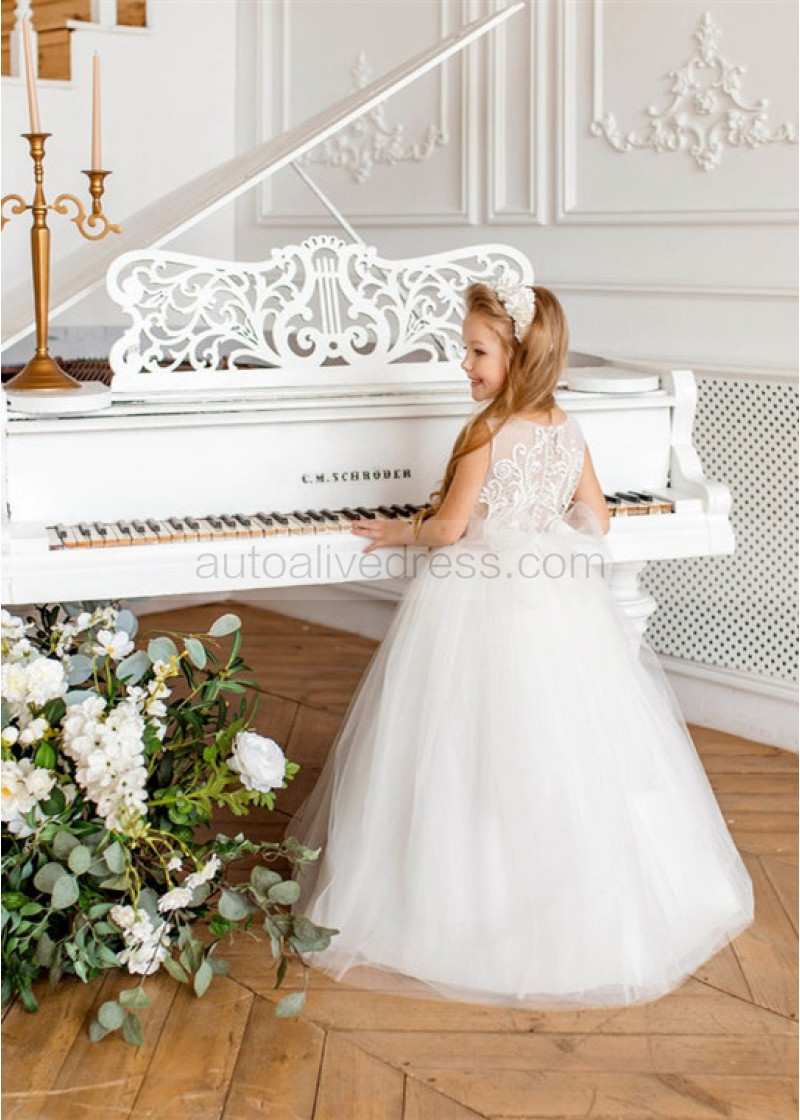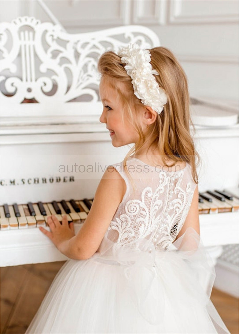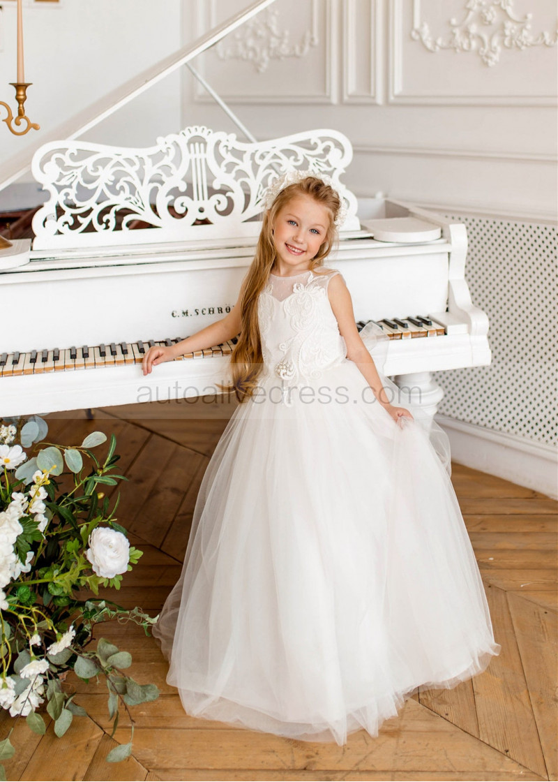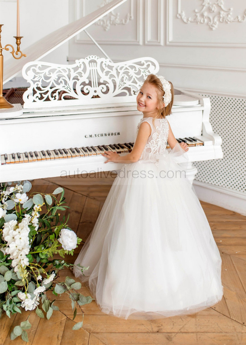 Ivory Lace Tulle Flower Girl Dress Communion Dress