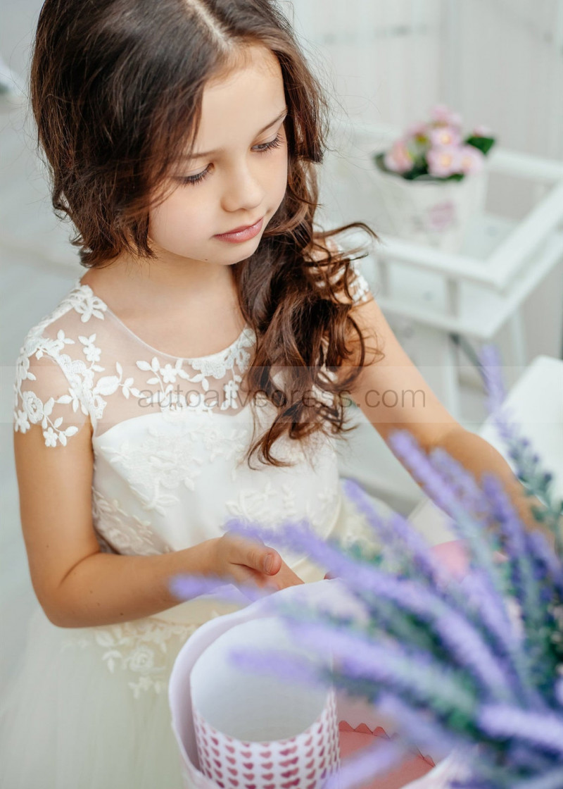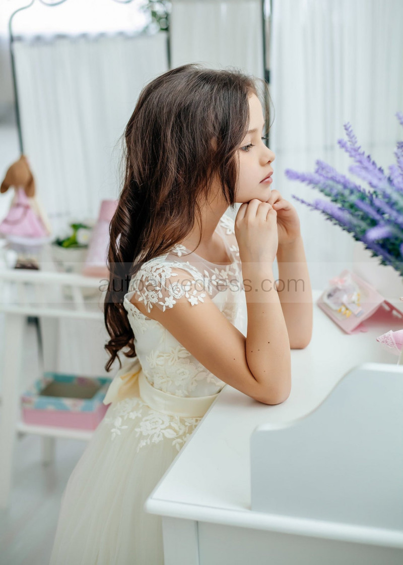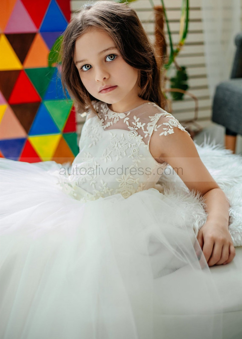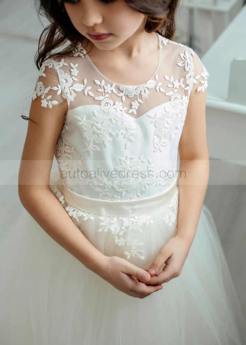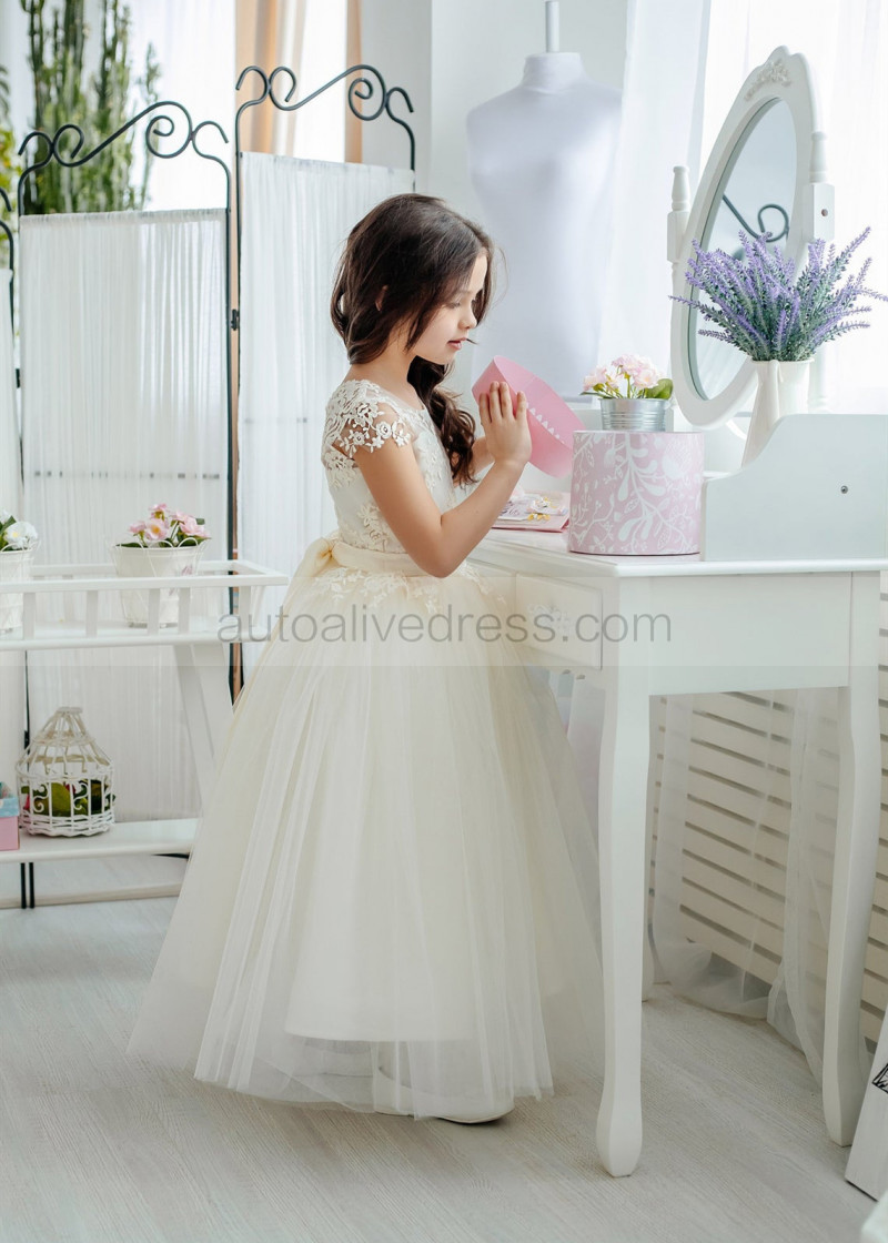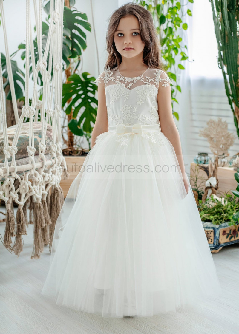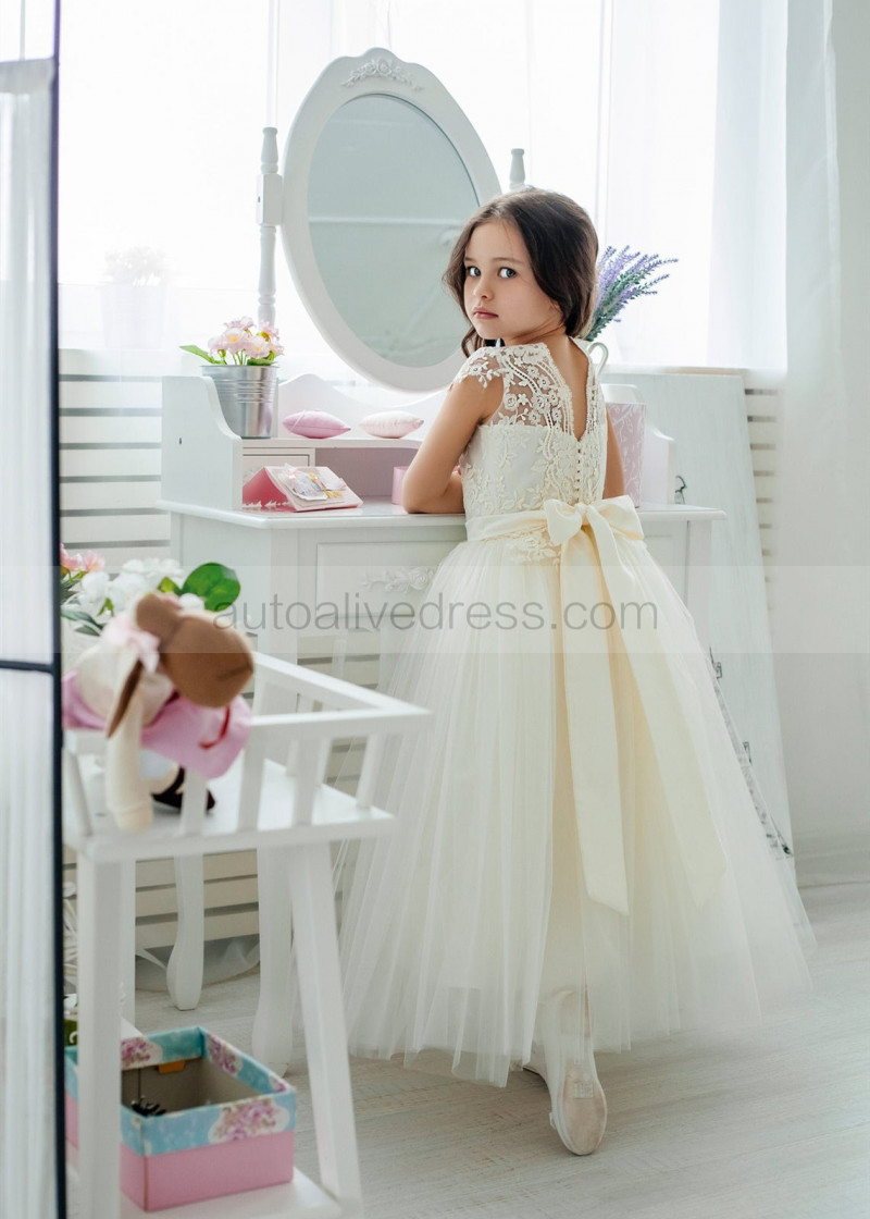 Ivory Lace Tulle Flower Girl Dress With Tiny Bow