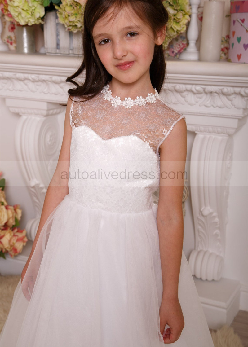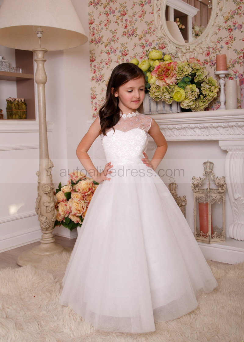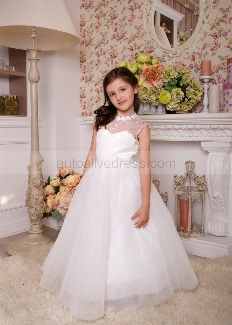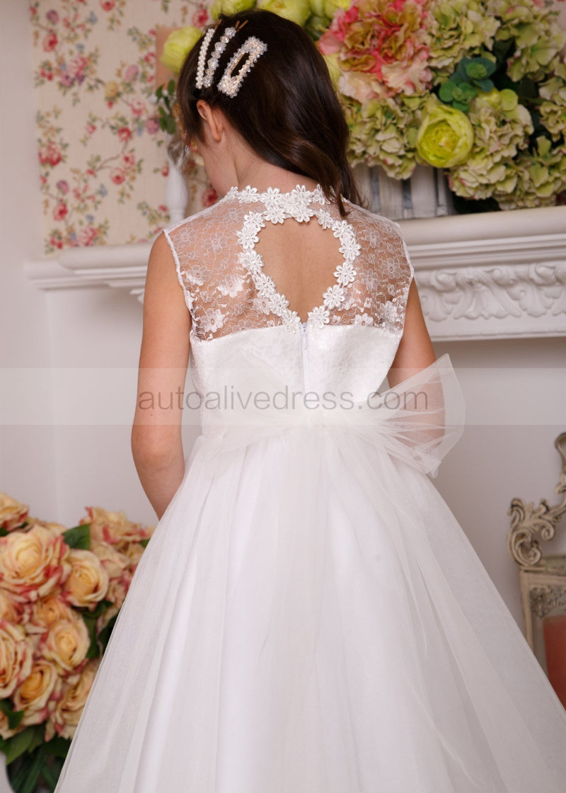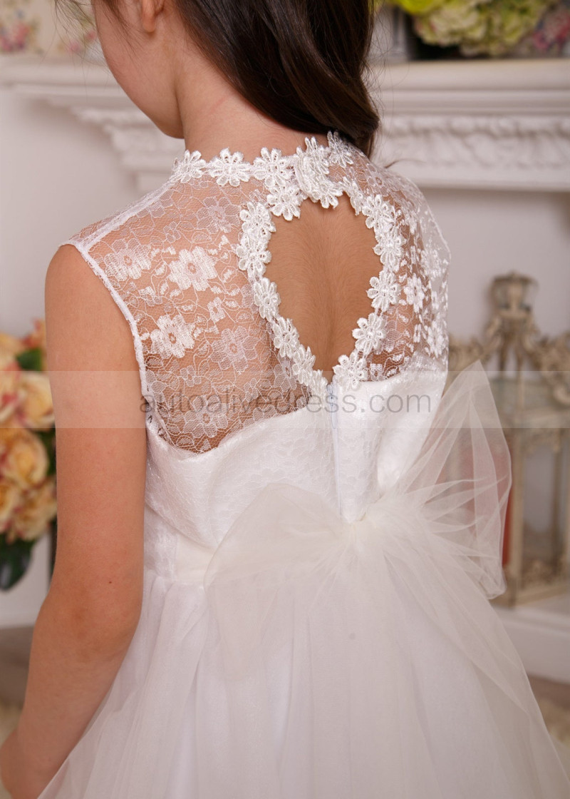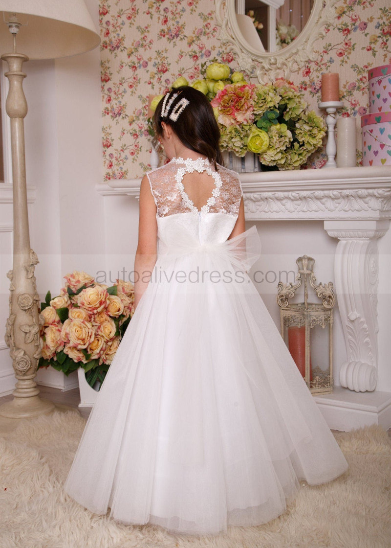 Ivory Lace Tulle Heart Shaped Back Flower Girl Dress
