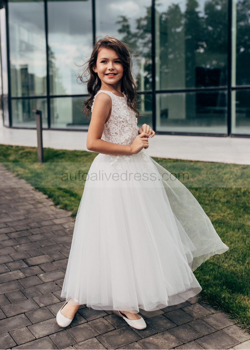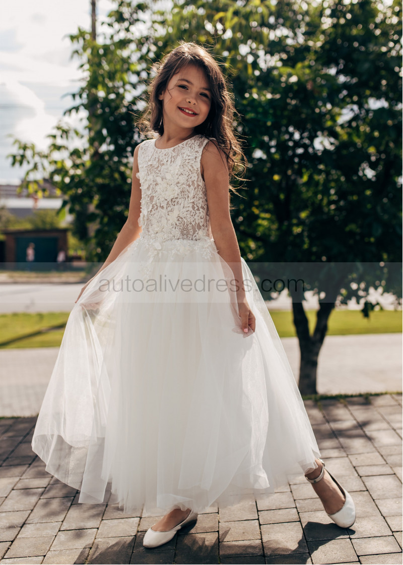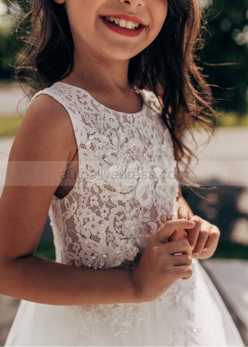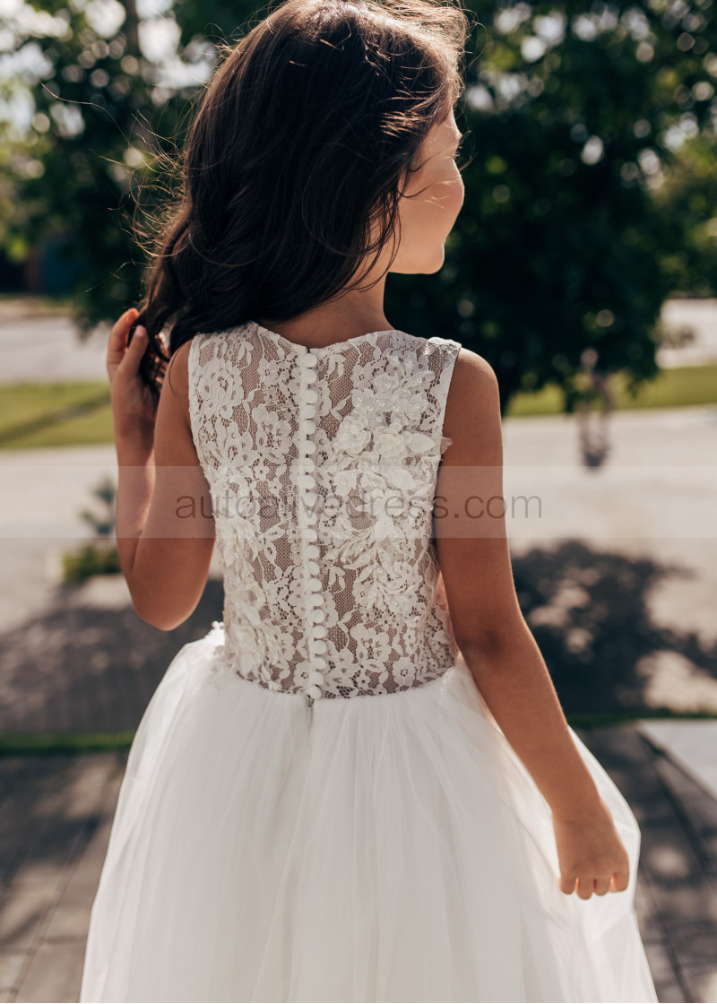 Ivory Lace Tulle Sheer Top Flower Girl Dress