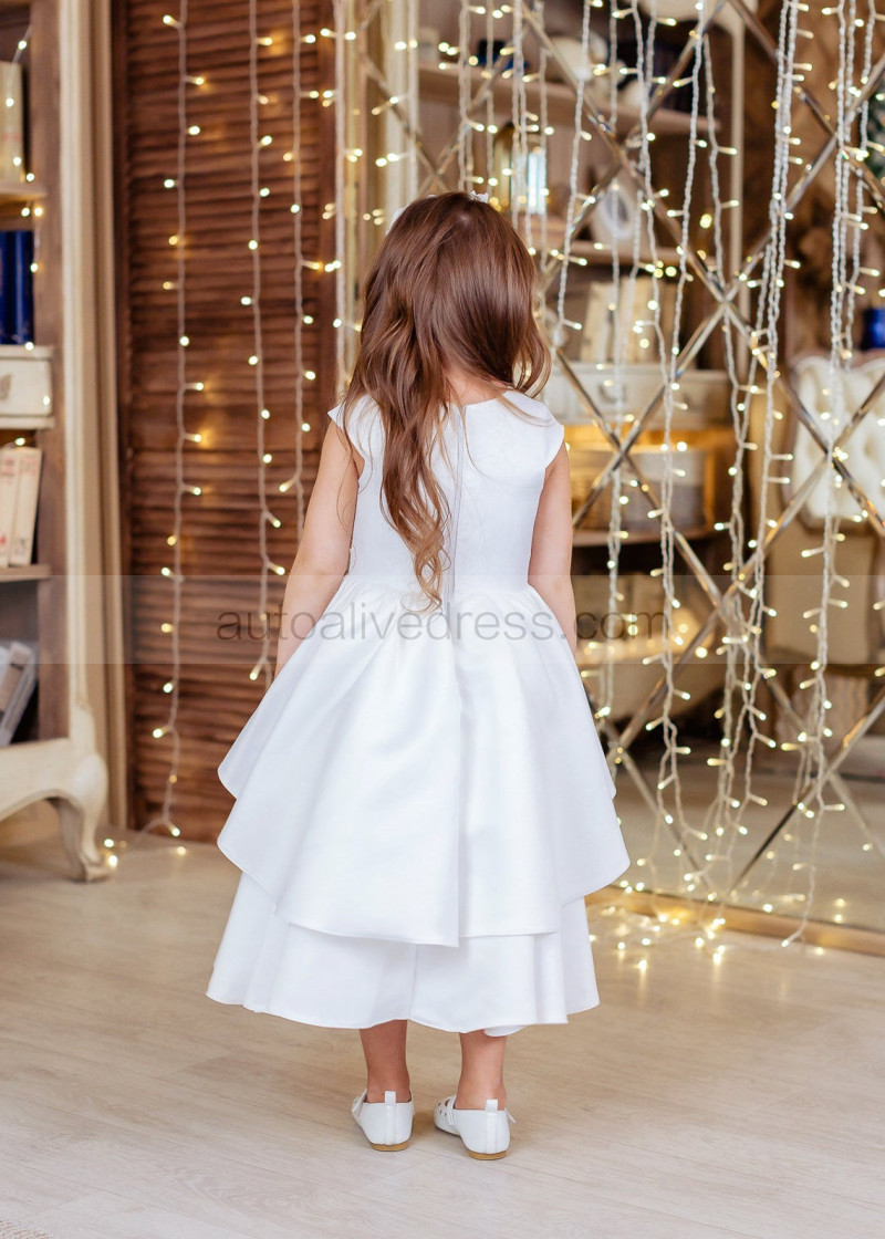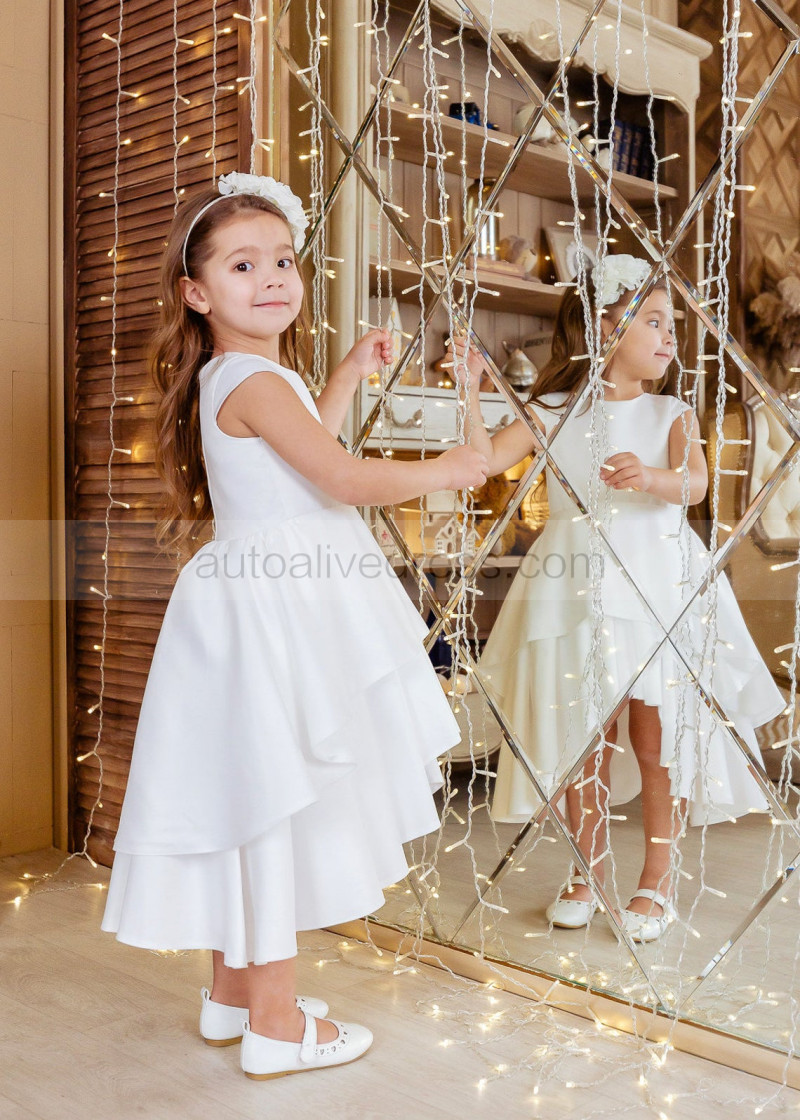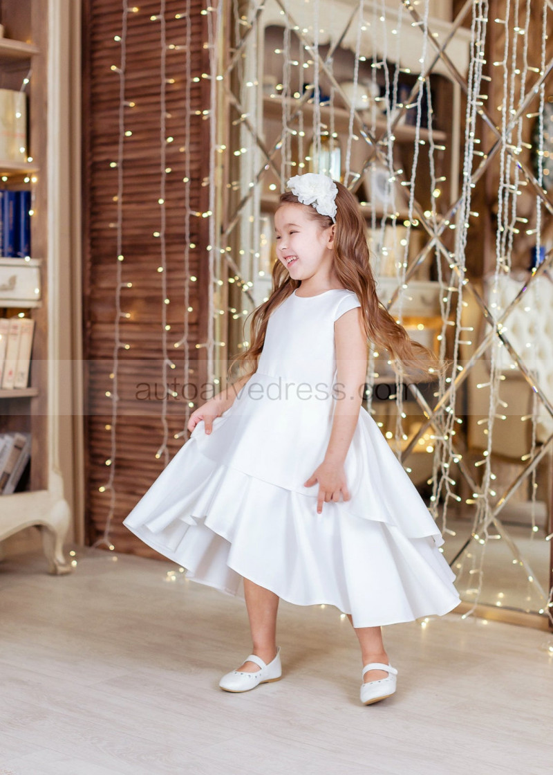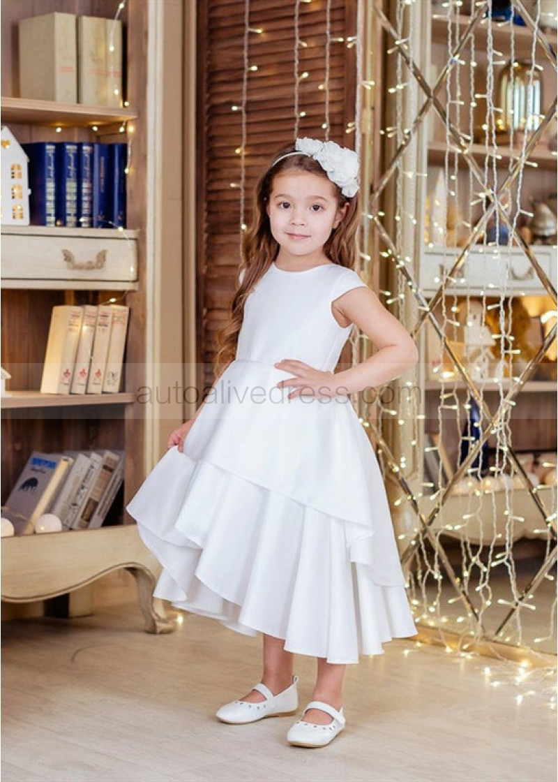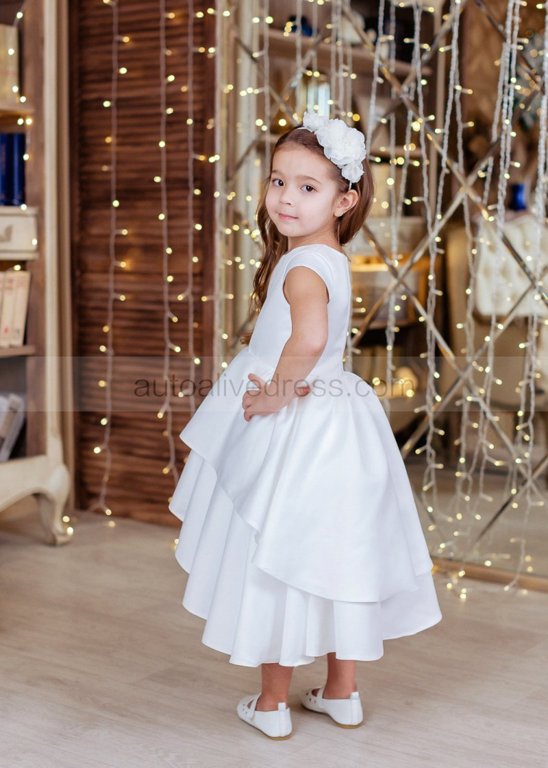 Ivory Satin Double Layer Skirt High Low Flower Girl Dress