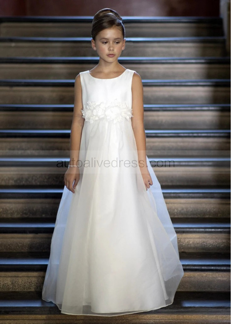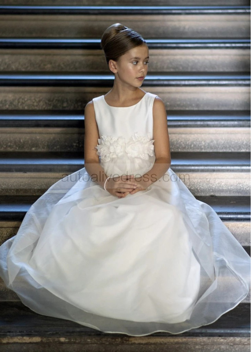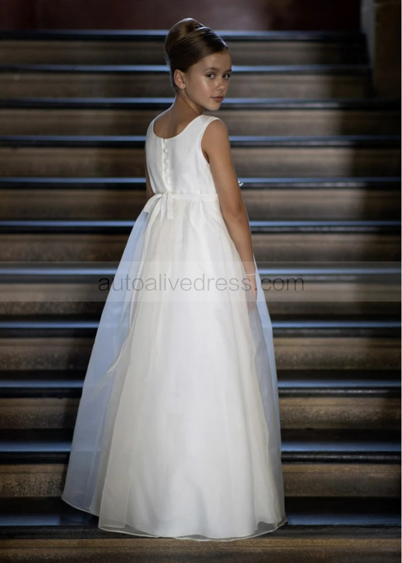 Ivory Satin Organza Flower Girl Dress With Flower Sash