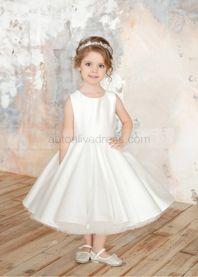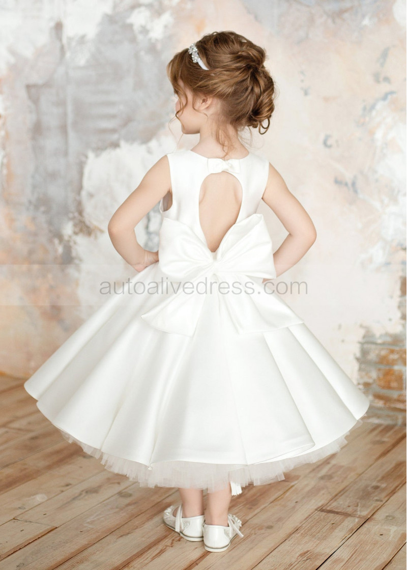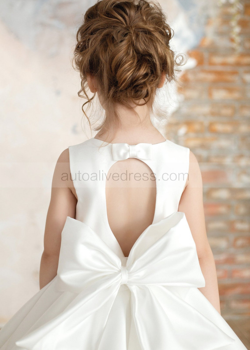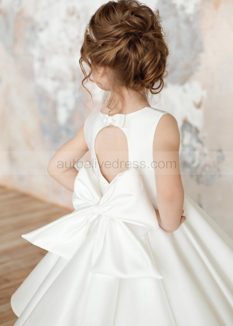 Ivory Satin Simple Keyhole Back Flower Girl Dress