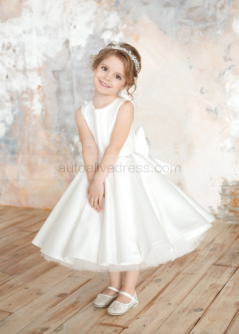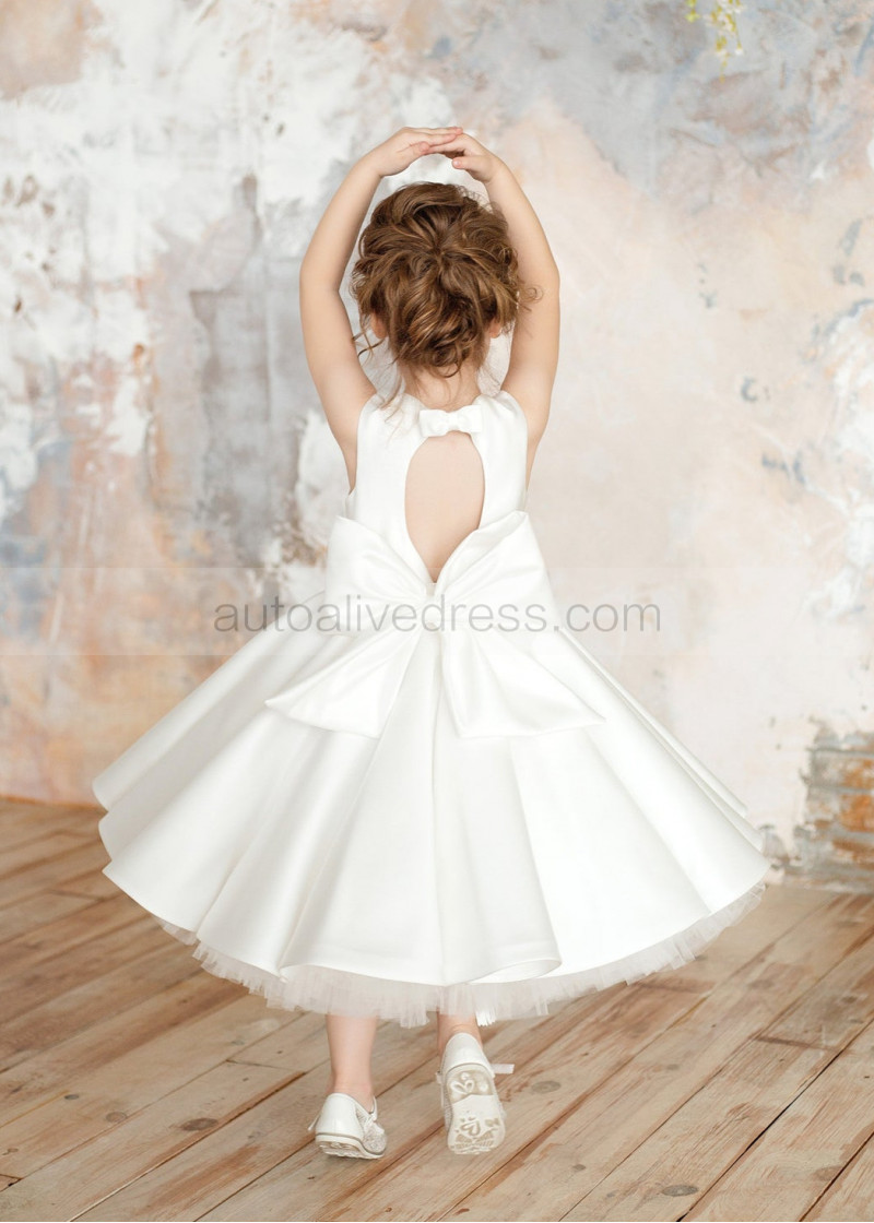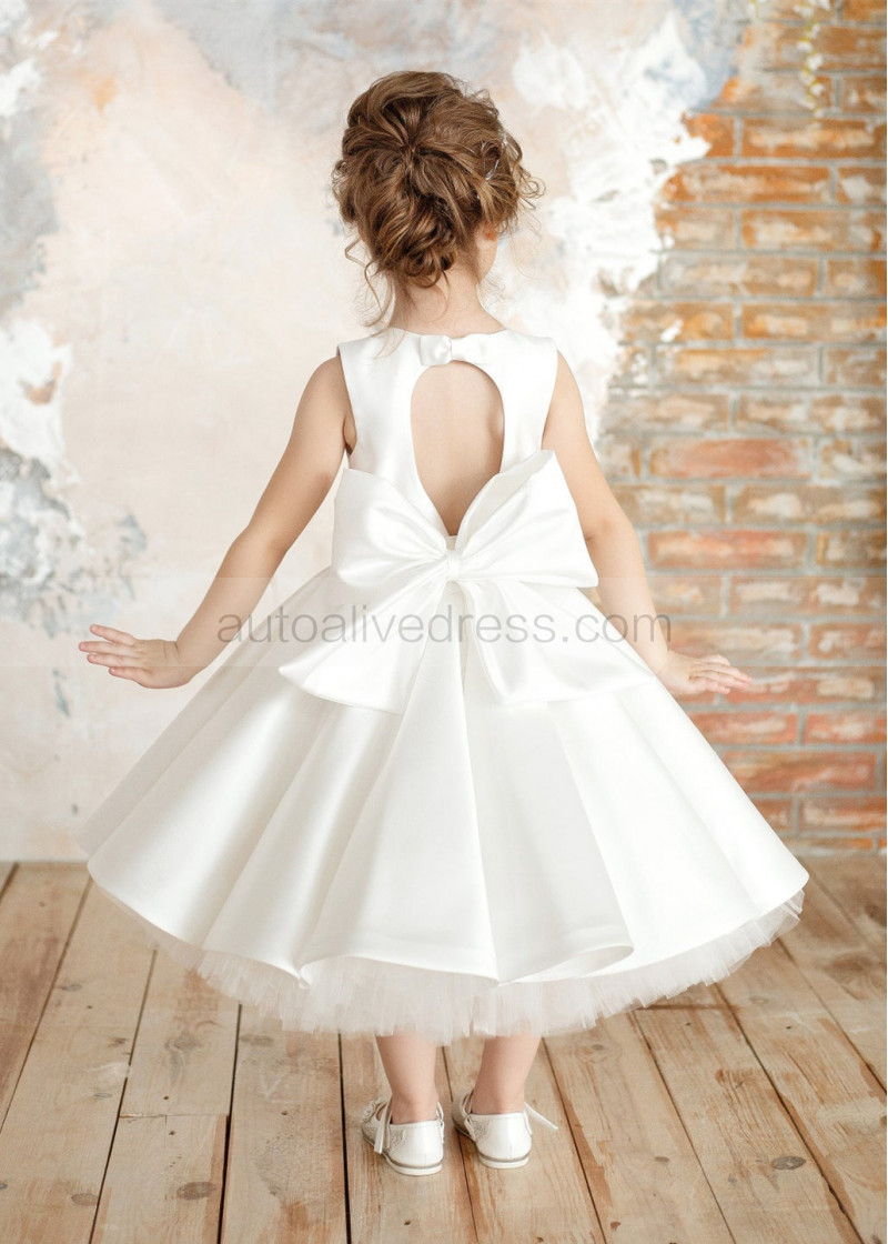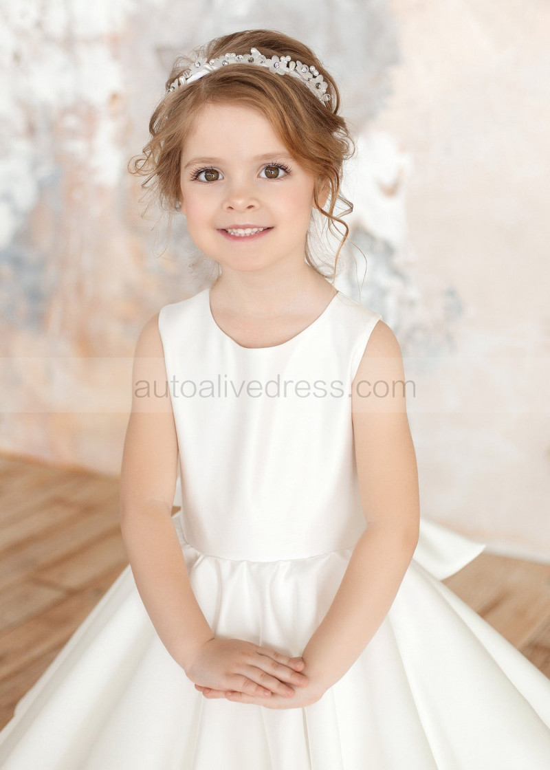 Ivory Satin Simple Keyhole Back Flower Girl Dress