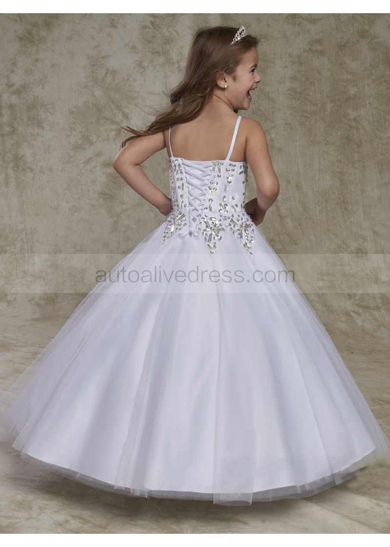 Beaded Tulle Sweetheart Neck Floor Length Flower Girl Dress With Cape
